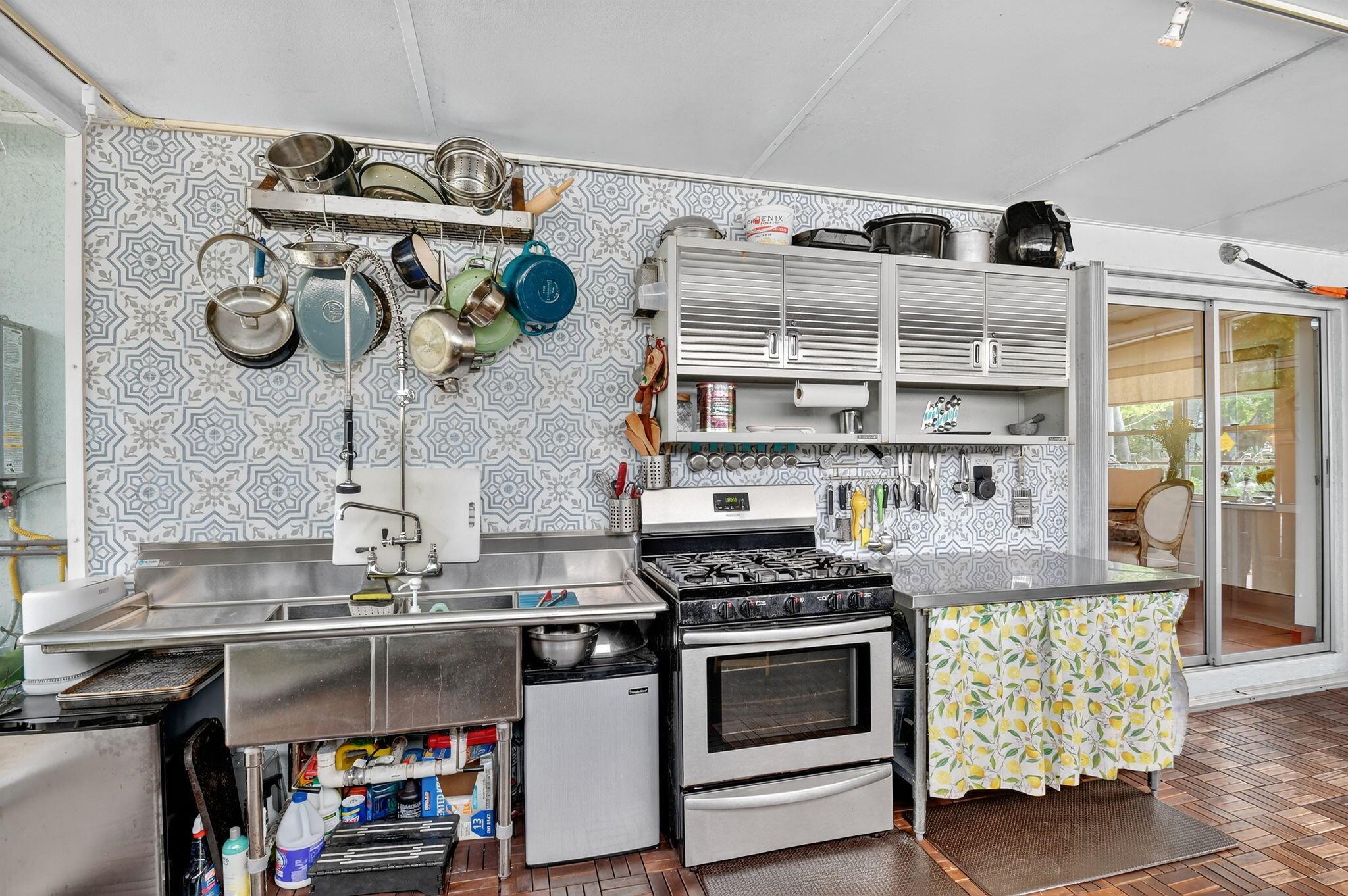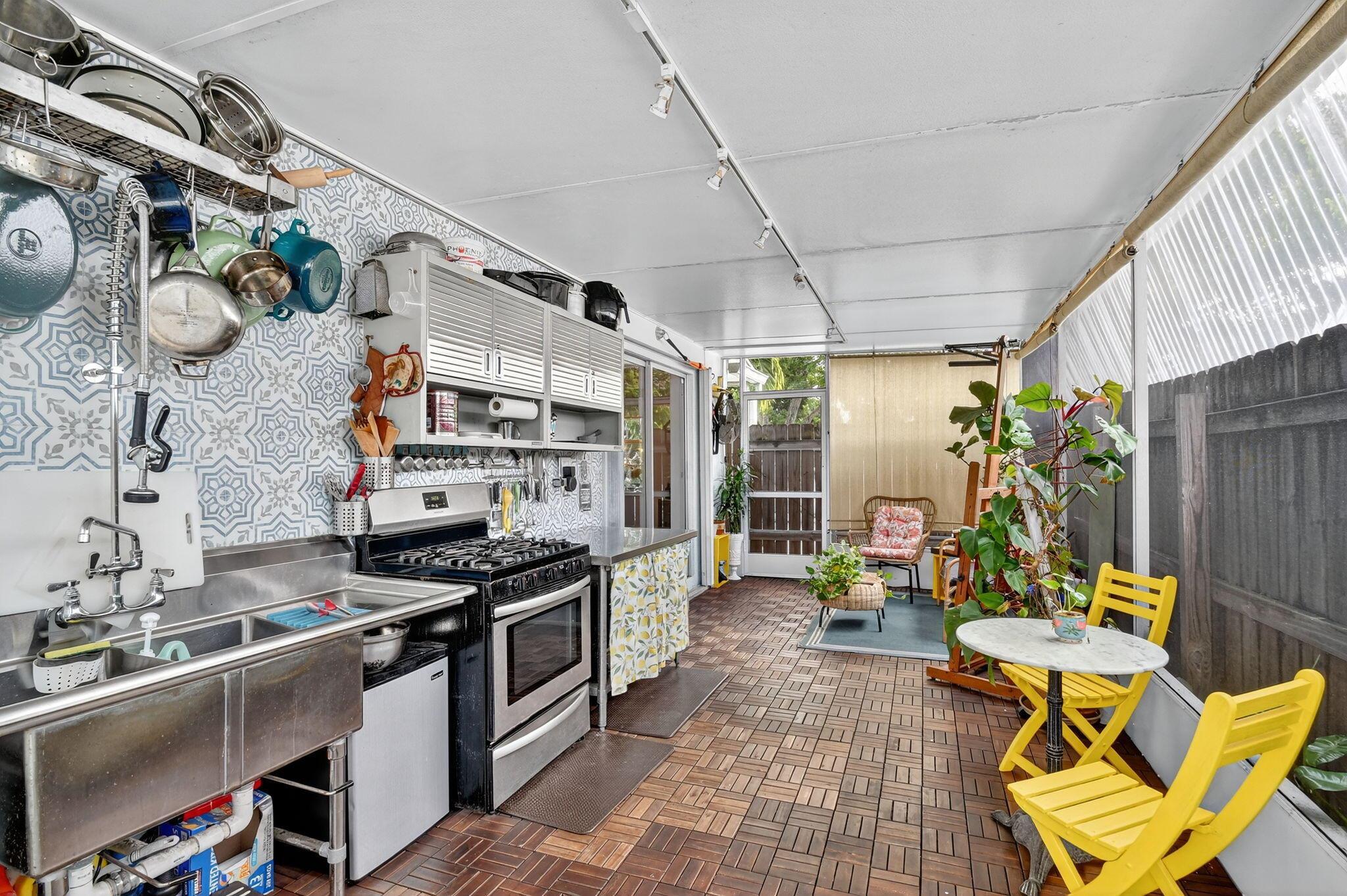 Turnkey 3-Bed, 2-Bath| No HOA| Outdoor Kitchen| Bonus room| Fenced Yard | Solar Panels| 8 vehicles Parking.Charming home where timeless elegance meets everyday comfort. Open floor plan, spacious kitchen with stainless steel appliances and a large eat-in area. The 24' x 14' bonus room off the living room offers a flexible space perfect for an office or media room. Restoration Hardware sophisticated furniture Included, if desired! CBS home powered by solar panels, average $40/month in electricity costs. Enjoy a covered outdoor kitchen, fully fenced backyard with fruit trees, space for RV or boat and a 10' x 10' utility shed. 4 min to 95, 8 min to the beach, 12 min to Downtown. Watch sunsets just a short walk away at Lake Osborne & John Prince Park.