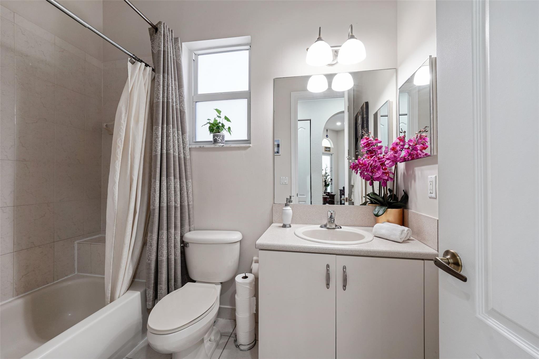 Spectacular 3BR/2BA single-family home in gated Portafolio Estates! Features 2-car garage + 3 driveway spaces, new roof (2022), new A/C (2024), impact windows and exterior doors, crown molding, recessed lighting, zebra blinds and fully remodeled open kitchen. Split layout, tile flooring throughout, freshly painted exterior, new gutters, covered patio w/pavers, sensor exterior lights, and new vinyl fence. Appliances updated (2021–2025), including new washer, dryer & fridge (2025). Quiet garage opener, fans w/remotes. Impeccably maintained and move-in ready. Prime location near highways, schools, and shopping. These items don't convey with the house & will be retained by Seller: plants and orchideas, TV locate at the patio, Drapes & curtain brackets in bedrooms, refrigerator at the garage.
