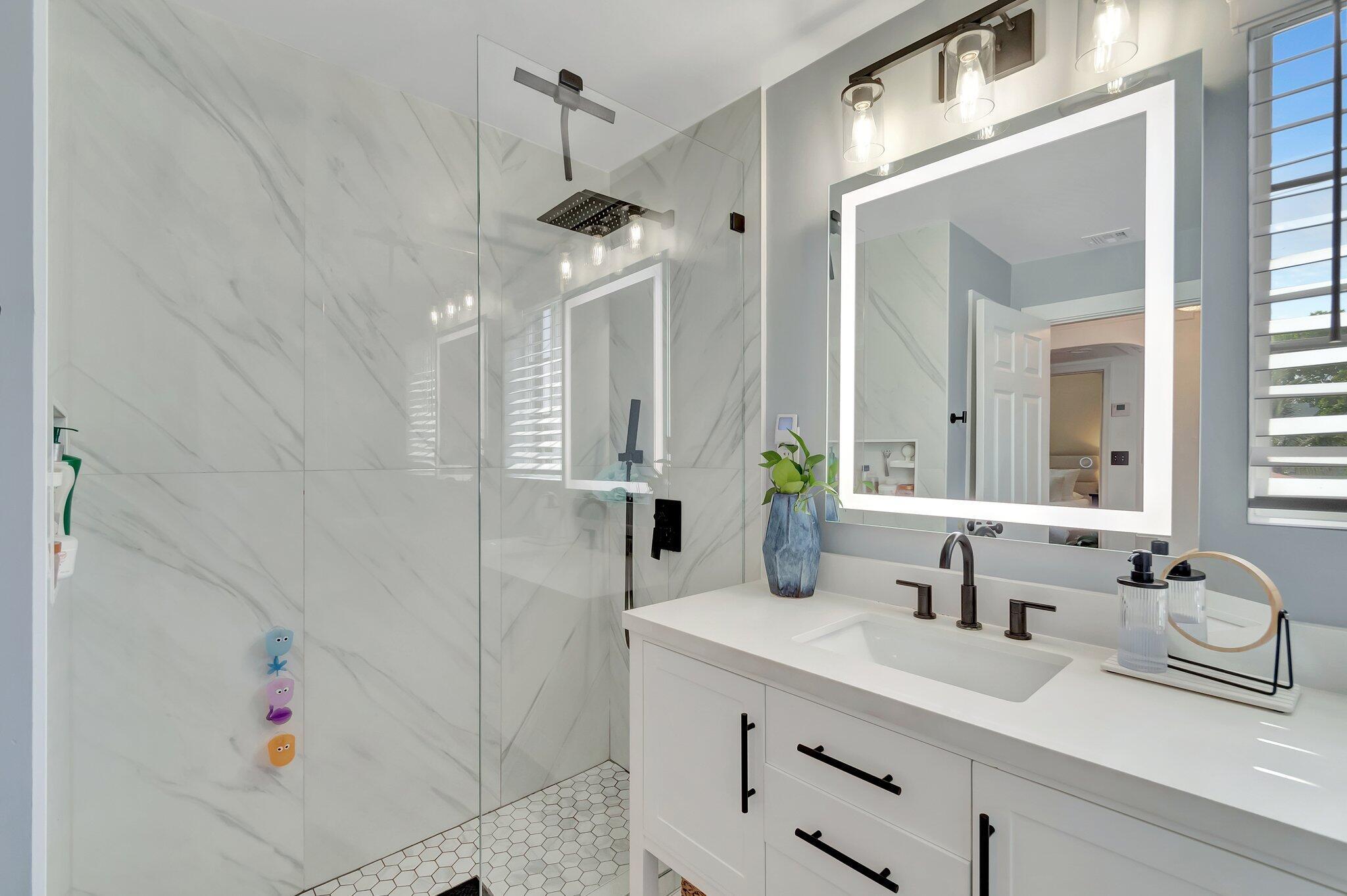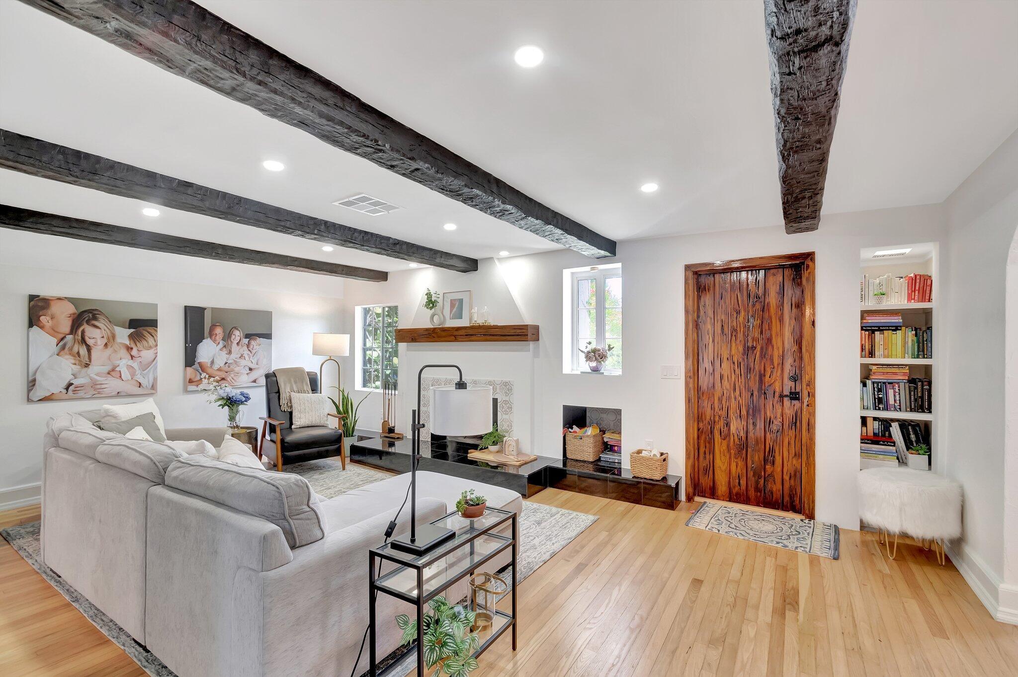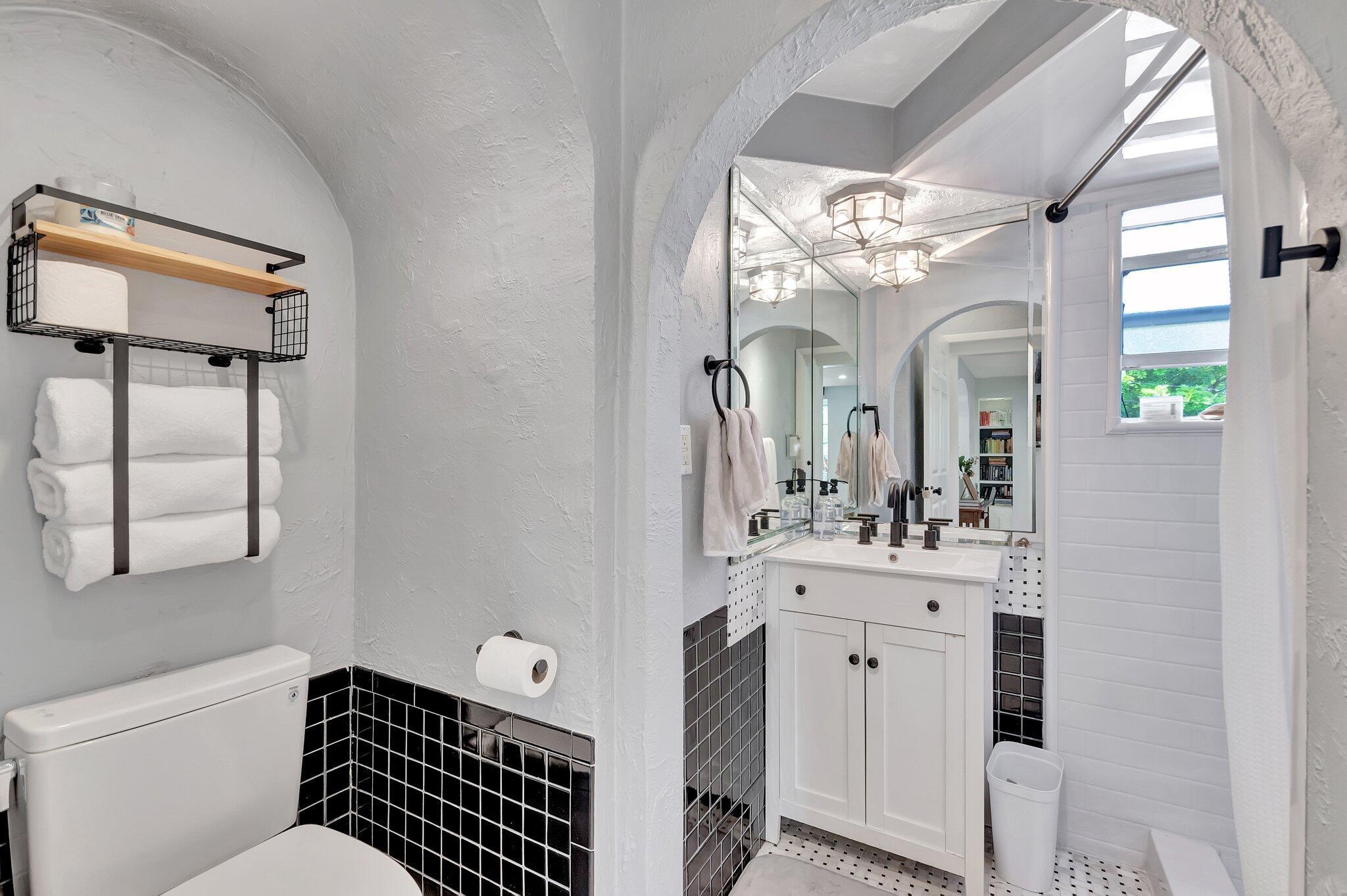 Step through the lovingly restored Pecky Cypress door of this 1923 impressive dwelling, into a modernly updated home. Located in the Historic District of College Park in Lake Worth Beach, is a blend of old charm and new comfort. This bright open living area with wooden beams has lumen lighting, working fireplace and restored hardwood flooring throughout. In the dining room with recessed wood inlaid tray ceiling, double hung windows and a window seat below. Esthetically modern eat in kitchen includes a country farm sink, gas range, stainless steel appliances and new ceramic tile floor. The cozy terracotta tiled den with french doors leading out to covered patio.Notable backyard's size and freeform pool make enjoyment and entertaining top on the list. Four bedrooms and bathroom upstairs