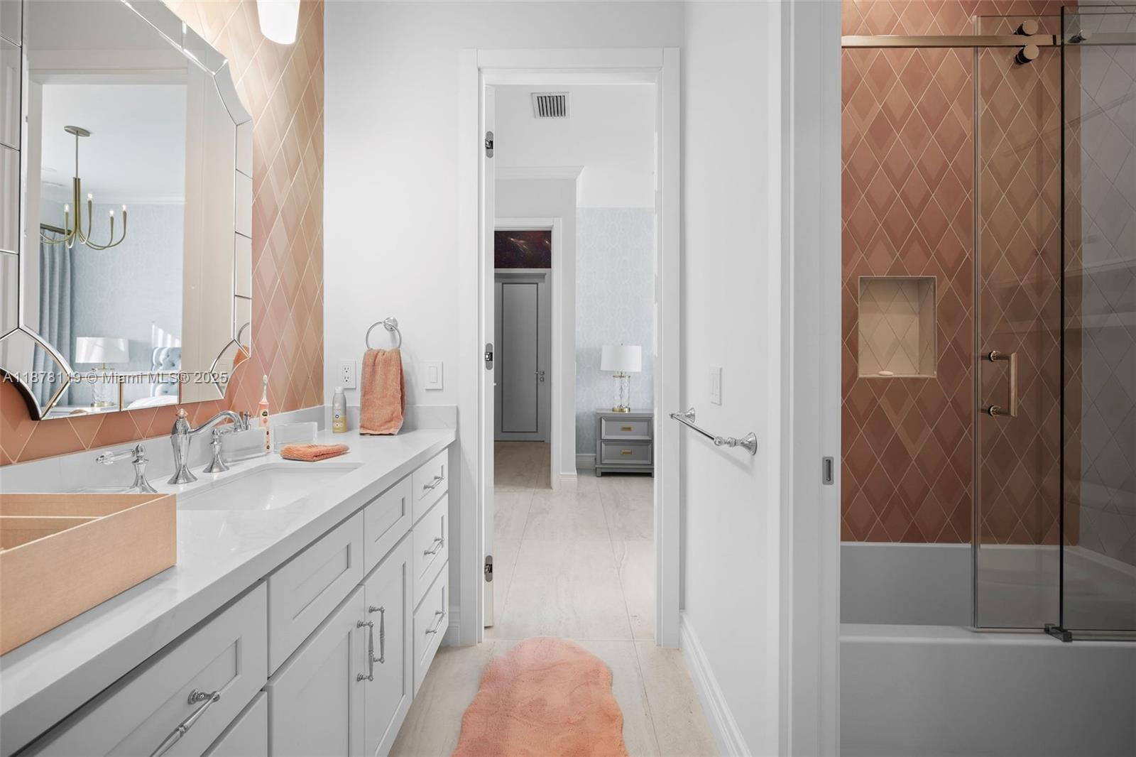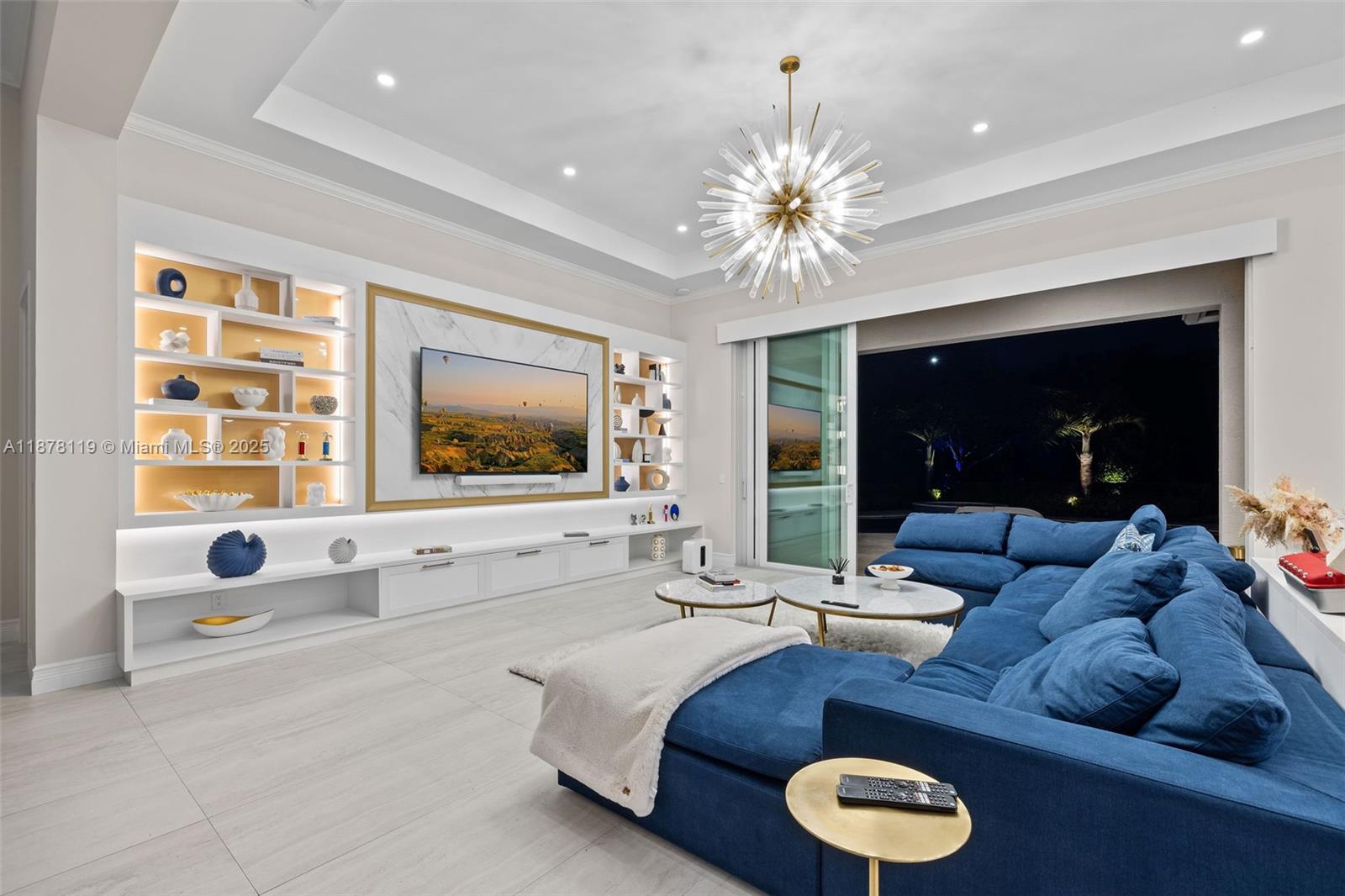 A Rarely Offered Designer Residence. One-of-a-kind 4-bedroom, 3.5-bath luxury home is a masterpiece, curated by a professional designer to embody elegance and sophistication. Nestled on an oversized lot, it offers privacy, space, and comfort. Step into your resort-style retreat, where a spectacular pool and jacuzzi glow with custom lighting, framed by illuminated landscaping. An outdoor fireplace adds warmth and ambience, perfect for evenings or entertaining. The residence is distinguished by its Ferrari-inspired 3-car garage, a rare feature blending sophistication with function. Every detail is thoughtfully designed, with bespoke finishes that elevate living. For those who demand the extraordinary, this home is a statement of luxury—offering beauty, privacy, and artistry inside and out.