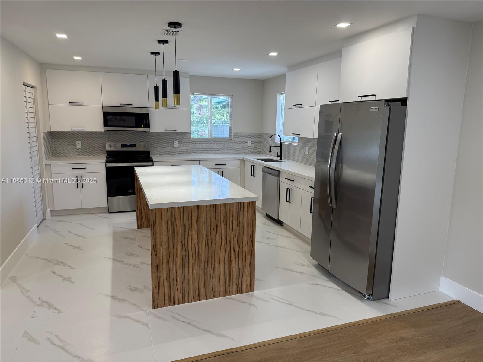 Welcome to this beautifully remodeled 4-bedroom, 2-bathroom home situated on a desirable corner lot! Step inside to find an open and airy floor plan filled with natural light, brand-new vinyl flooring, and fresh interior and exterior paint. The updated kitchen features sleek stainless steel appliances, modern cabinetry, quartz countertops, and a stylish backsplashperfect for cooking and entertaining. Both bathrooms have been completely renovated with contemporary finishes, including designer tile, new vanities, and upgraded fixtures. The generously sized bedrooms offer comfort and versatilityideal for families, guests, or a home office. New roof, new windows ! Don't miss this opportunity .Easy to show