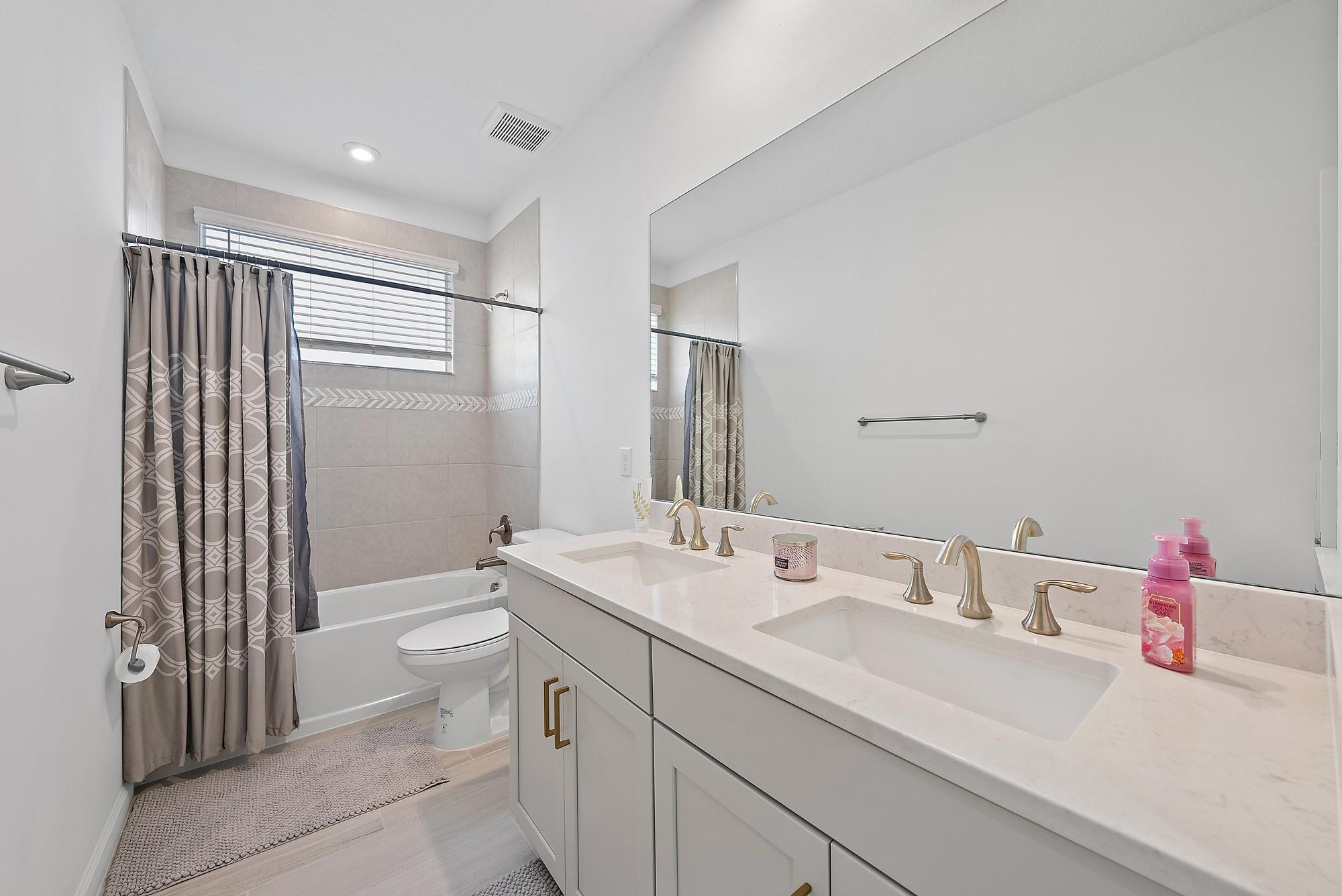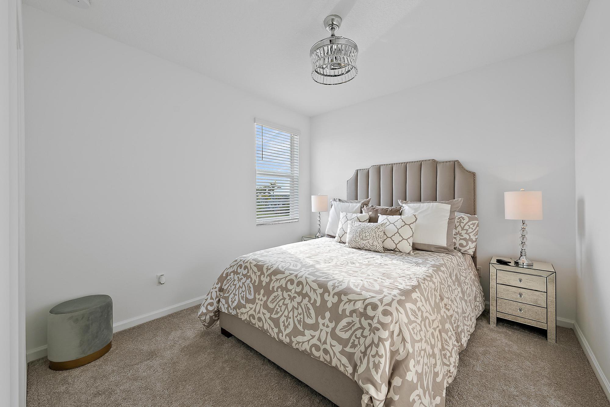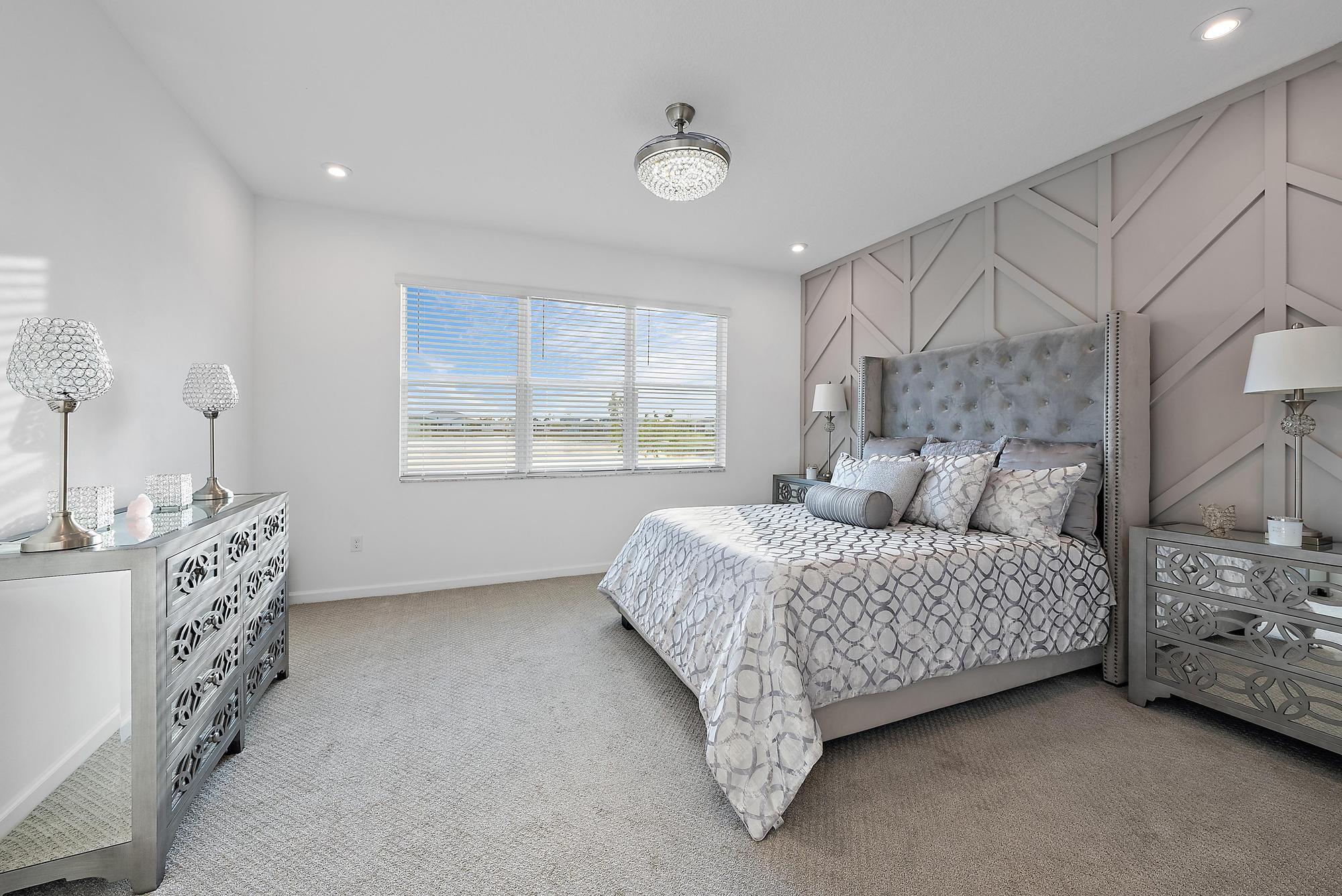 Built in 2022 and beautifully sited on a shimmering lake in Emery, this residence pairs refined finishes with everyday ease. A stone-accented contemporary elevation makes a striking first impression, while the light-filled foyer and soaring ceilings set an airy tone. The chef's kitchen features custom cabinetry, premium countertops, and high-end appliances. The ground-floor primary suite is a serene retreat with a spa-inspired bath. Upstairs, a spacious loft and guest bedrooms offer comfortable separation and privacy. With full impact windows and doors for security and efficiency, the home blends beauty and practicality. Emery residents enjoy resort-style amenities including a pool, fitness center, and walking trails.