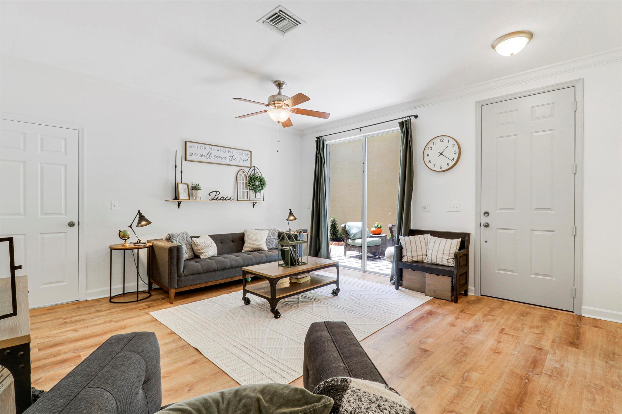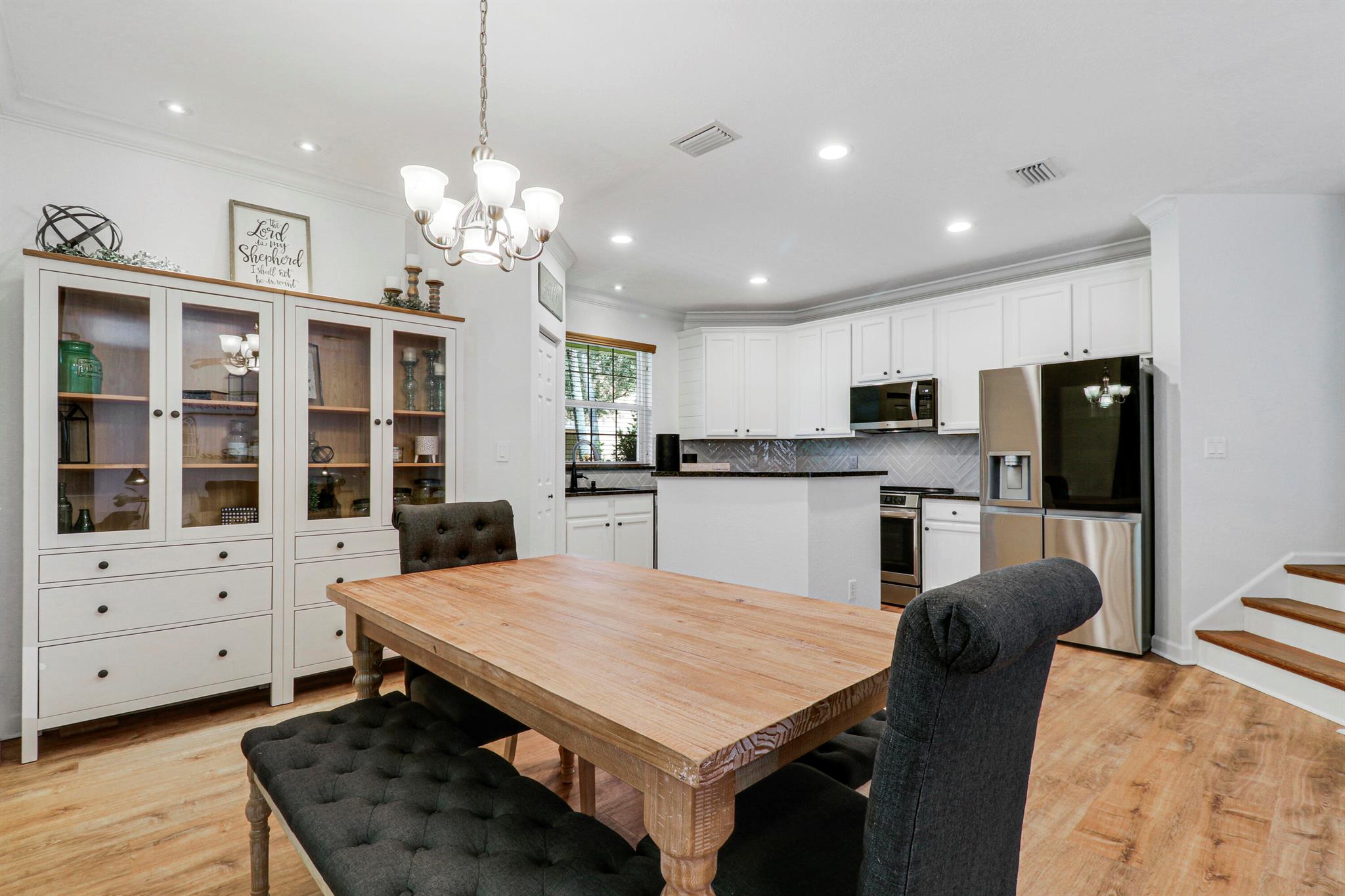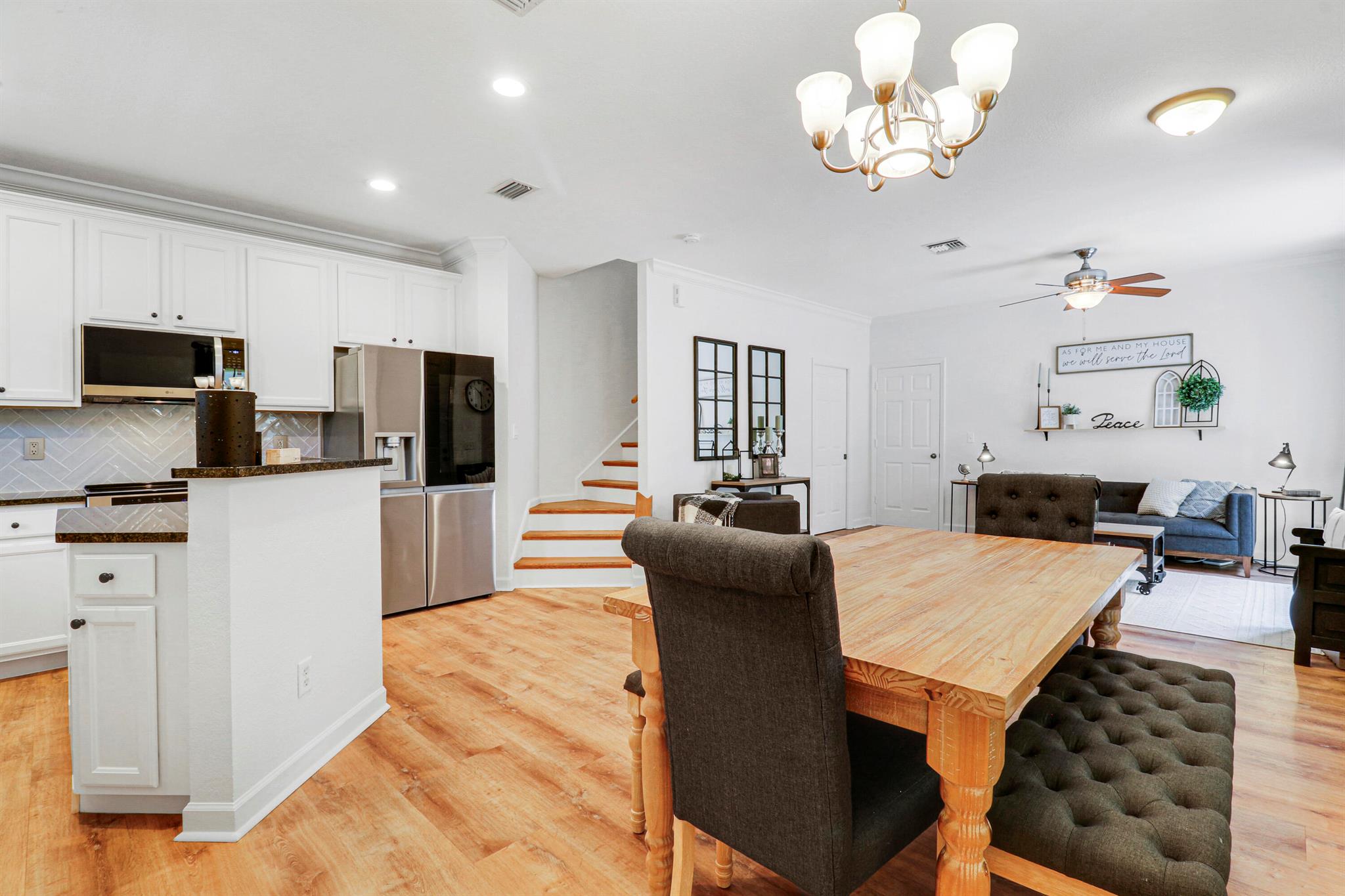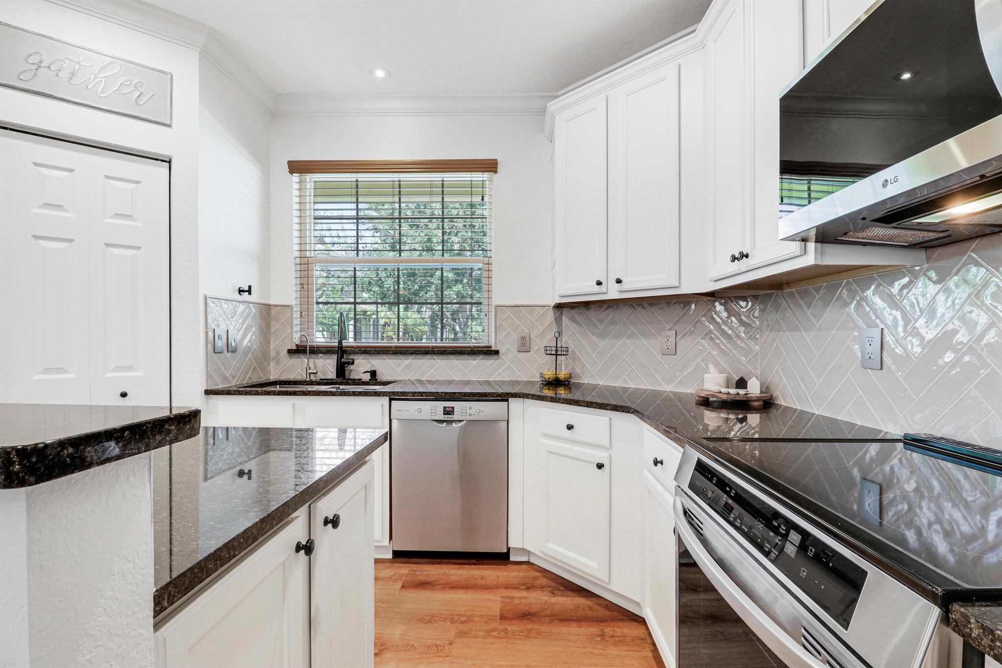 Gorgeous and shows like a model! Beautifully remodeled three bedroom 2.5 bath, two car garage, two-story single-family home on one of the nicest and most private lots in the neighborhood! Chef's kitchen with new refinished white cabinets and knobs, brand new, stainless steel appliances, center island, granite countertops, reverse osmosis water purifier, and lots of great storage. Spacious master bedroom suite with walk-in closet and spa like remodeled master bath. The backyard is a tropical oasis with custom landscaping and a charming area for entertaining and family gatherings! Upgrades include new vinyl plank ''wood like'' flooring in living areas and stairs, impact glass and doors, and tropical, custom landscaping. Low Homeowners Association fee includes complete lawn and landscape care