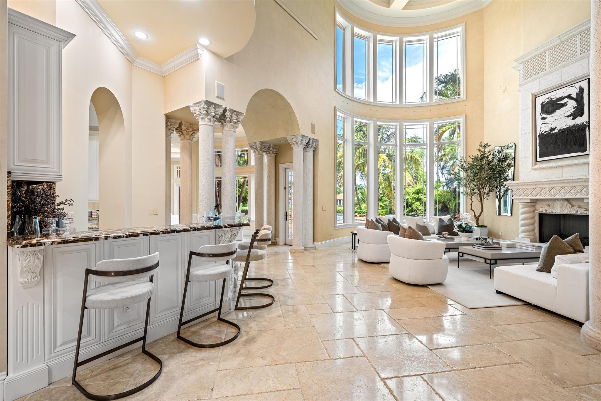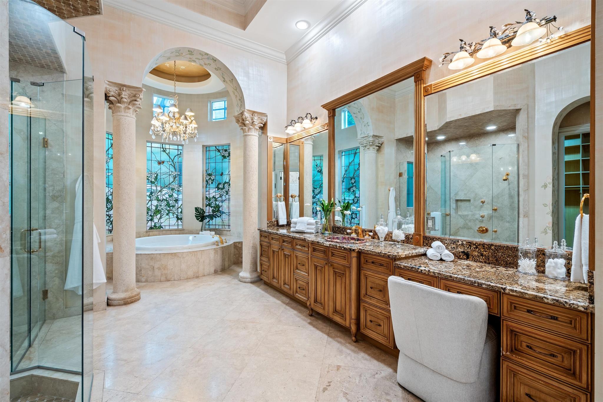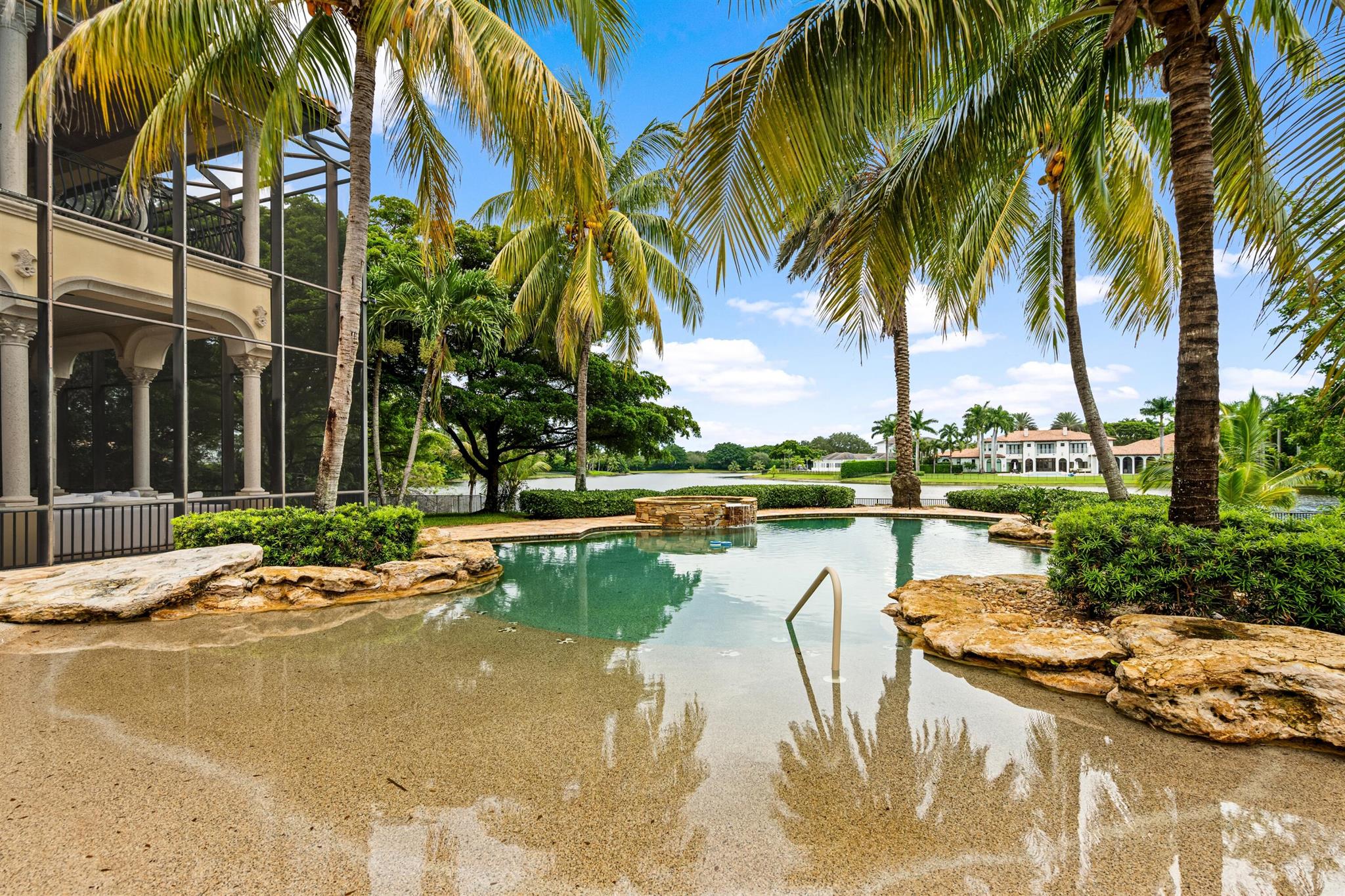 In the Eden of Boca Raton neighborhoods, Long Lake Estates hides in plain sight off of Clint Moore Road, with convenient access to the Turnpike. Discover Boca's premier amenities within a 10-mile+/- radius, including upscale boutiques and fine dining at Town Center Mall and Mizner Plaza, beautiful beaches, sought-after country clubs, respected schools, and well-maintained sports and recreational facilities. But the bustle quickly subsides when you pass through the gates of this neighborhood exuding a graceful regality. Its quiet, canopied roads transport you to a serene Old Florida. Set back on lush, one acre-plus lots, the distinct homes in this community enjoy the utmost privacy. The 10,327+/- sq. ft. Mediterranean estate sits on a paved horseshoe driveway behind an elegant porte-cocher