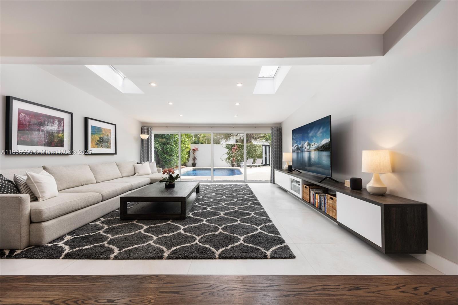 Behind a walled & gated entrance on a quiet North Grove cul-de-sac, this stunningly redesigned single-level residence combines privacy, modern luxury & an unbeatable location. Floor-to ceiling glass floods the interiors w/natural light and open to a newly renovated pool & patio. The sleek Italian kitchen is a chef’s dream w/high-end Wolf & Subzero appliances, a 180-bottle wine cooler+ custom built-ins. Vaulted ceilings, designer lighting, white iceberg marble + hardwood flooring & refined finishes throughout - enhance the sophisticated atmosphere throughout the home. The flexible floor plan has a seamless flow & includes a 3BR/3.5BA main house + a detached 1BR/1BA guest casita. Just steps away from top schools, local cafés & Biscayne Bay- this home offers the best of Coconut Grove living.