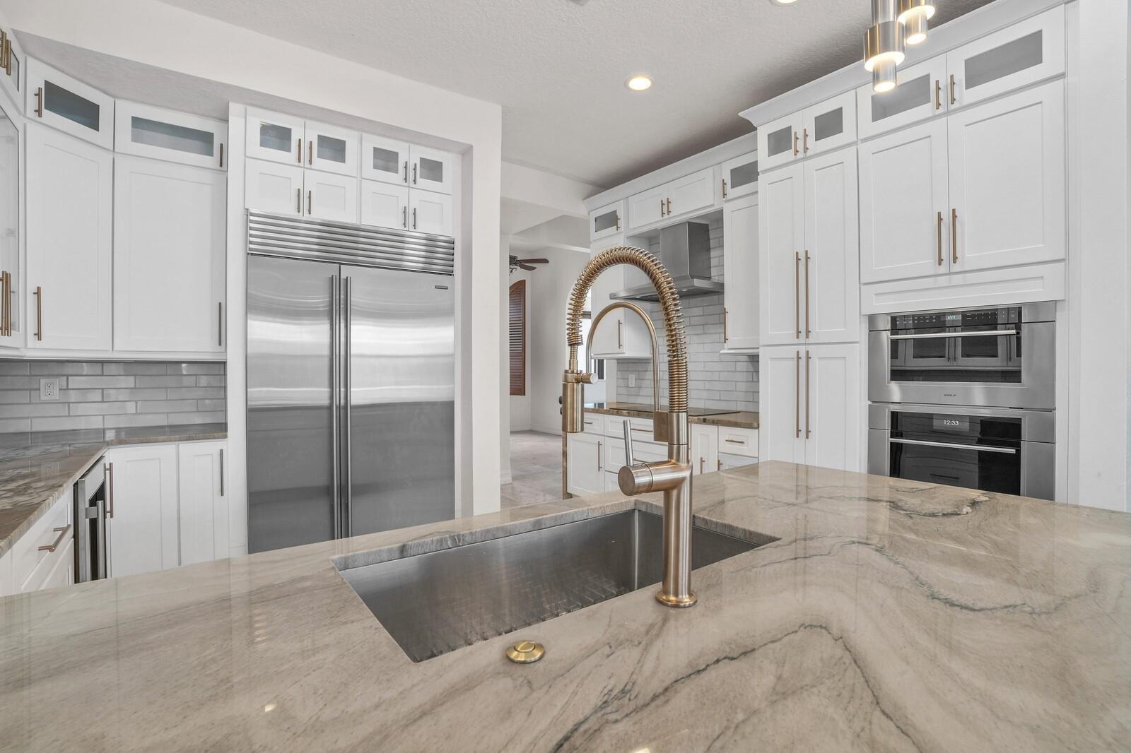 This beautifully upgraded home offers 4 beds, 3.5 baths, an office, upstairs loft, and a NEW 2023 ROOF! The gourmet kitchen was completely renovated in 2024 with a new Sub-Zero refrigerator, Wolf appliances, quartzite countertops, and high-end white shaker cabinets. Additional upgrades include a new hurricane-rated double front door, an insulated hurricane-rated garage door, a 2024 AC unit, updated light fixtures, a 2025 saltwater system for the pool, a 2024 sprinkler motor, and a whole-home generator hook-up. The home also offers spacious walk-in closets throughout. The primary suite and one guest bedroom are located on the 1st floor. The large screened saltwater pool overlooks beautiful lake views. This gated community offers resort-style amenities and zoned for all A-rated schools.