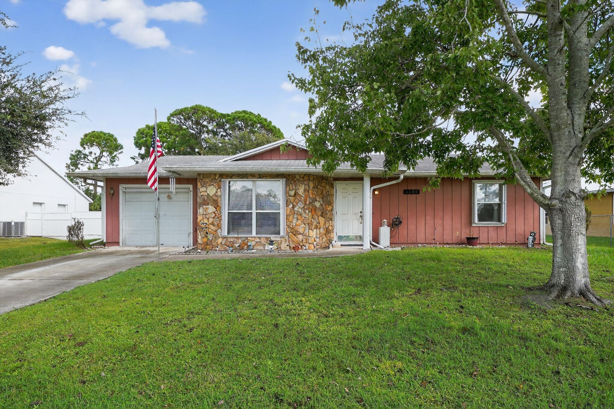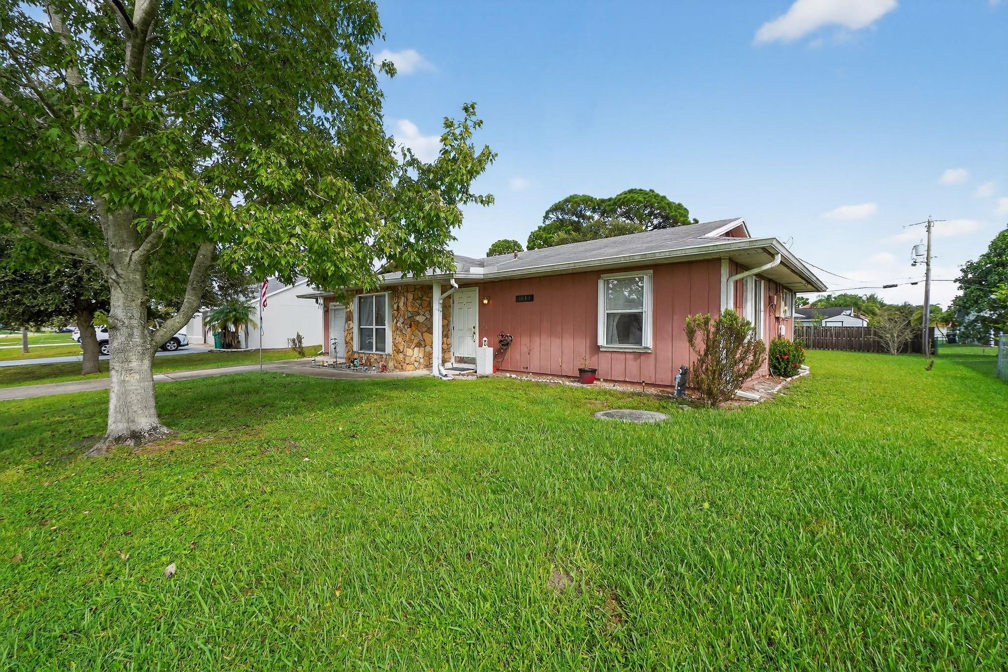 Welcome to this charming 2-bedroom, 2-bath home located in the heart of Port St. Lucie! Featuring a spacious layout with plenty of natural light, this property offers both comfort and potential. The home includes a one-car garage, large front yard shaded by mature trees, and a private backyard perfect for relaxing or entertaining. Conveniently situated near shopping, dining, schools, and major roadways, this home is an excellent choice for first-time buyers, downsizers, or investors. With a little TLC, it can be transformed into your dream home! Seller will install new roof before cloisng.
