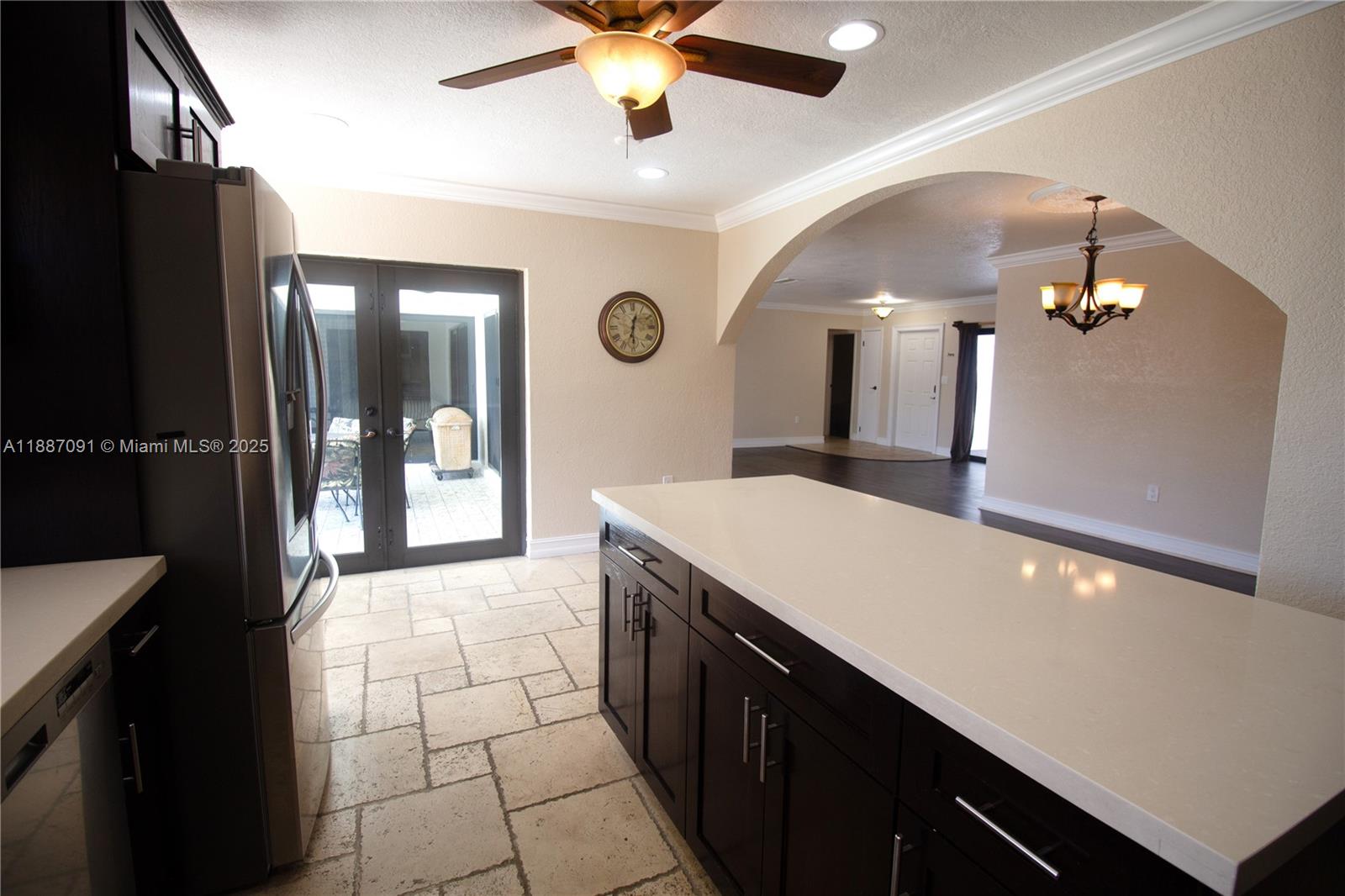 This spacious 3-bedroom, 2-bath residence combines sleek modern style with thoughtful upgrades throughout. The heart of the home is the chef-inspired kitchen with a gas stove, perfect for cooking and entertaining. A large living area offers plenty of room to relax or gather, while the beautiful entry with an ornate gate sets the tone for the property’s unique character. Step outside and enjoy your own private pool, complemented by peace of mind with impact windows and doors, a newer A/C, an updated electrical panel, updated plumbing system. Freshly painted inside and out, the home also features a circular driveway for convenience and curb appeal. Located in a sought-after Miramar neighborhood, close to schools, shopping, and major highways, this home is ready to impress.