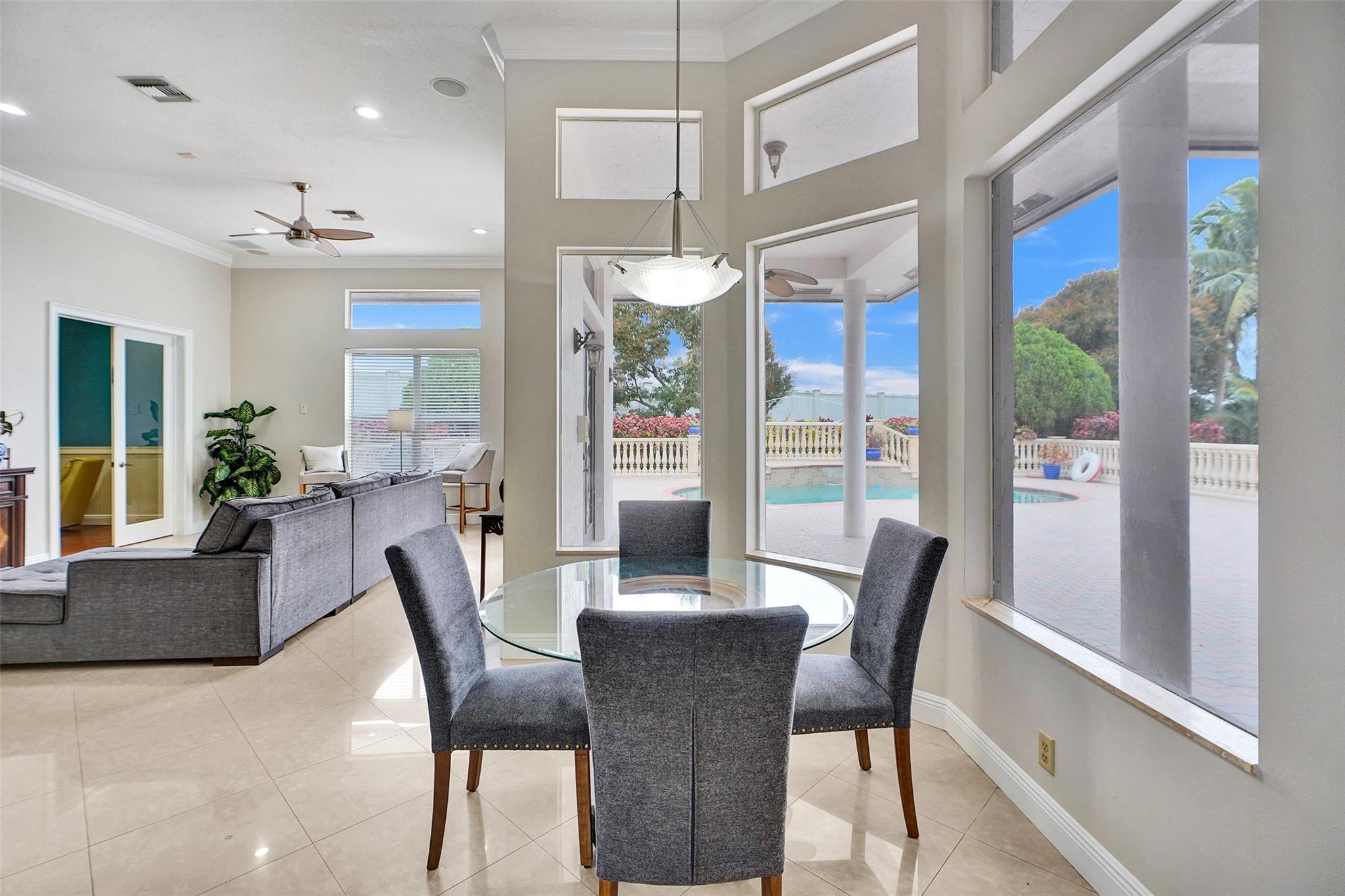 Experience unparalleled grandeur in this estate on over an acre in the prestigious Delray Lake Estates. Boasting 5 bedrooms, 4.5 baths, and an open-concept split floor plan, this home features soaring 12-foot ceilings, crown molding, and elegant tray ceilings. The master suite offers patio access, a Jacuzzi tub, walk-in shower, and bidet, while all bedrooms include custom closets, with two showcasing bay windows. The chef’s kitchen shines with a large island, new appliances, and a breakfast nook overlooking the pool and patio. Additional luxuries include a media room, home theater, library, and custom office/study. Outside, enjoy a tropical oasis with exotic fruit trees. Located near the turnpike for convenience, this estate is a rare blend of luxury and privacy. Same Day showings!