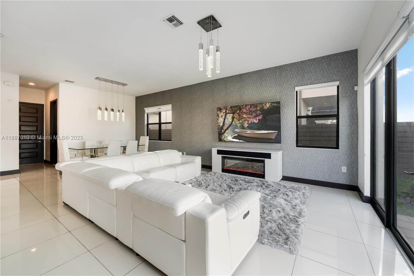 Welcome to Nirvana!!! This property is in the highly sought after community in West Kendall called Serenity. The property features 2,597 sqft. with 4 bedrooms and 3 full baths. The property is designed in a Luxury Zen Inspired Contemporary Style with Porcelain floors, Gorgeous walnut laminate kitchen cabinets with quartz countertops, Stainless steal appliances. The Chandelier in the Foyer is by lighting design brand Kuzco and is a retired piece. The Primary en-suite bathroom features dual sinks with modern floating cabinets & a rainfall shower with pebble flooring. Come experience the Feeling of tranquility in this homes cozy backyard with the soothing zen water feature and garden.