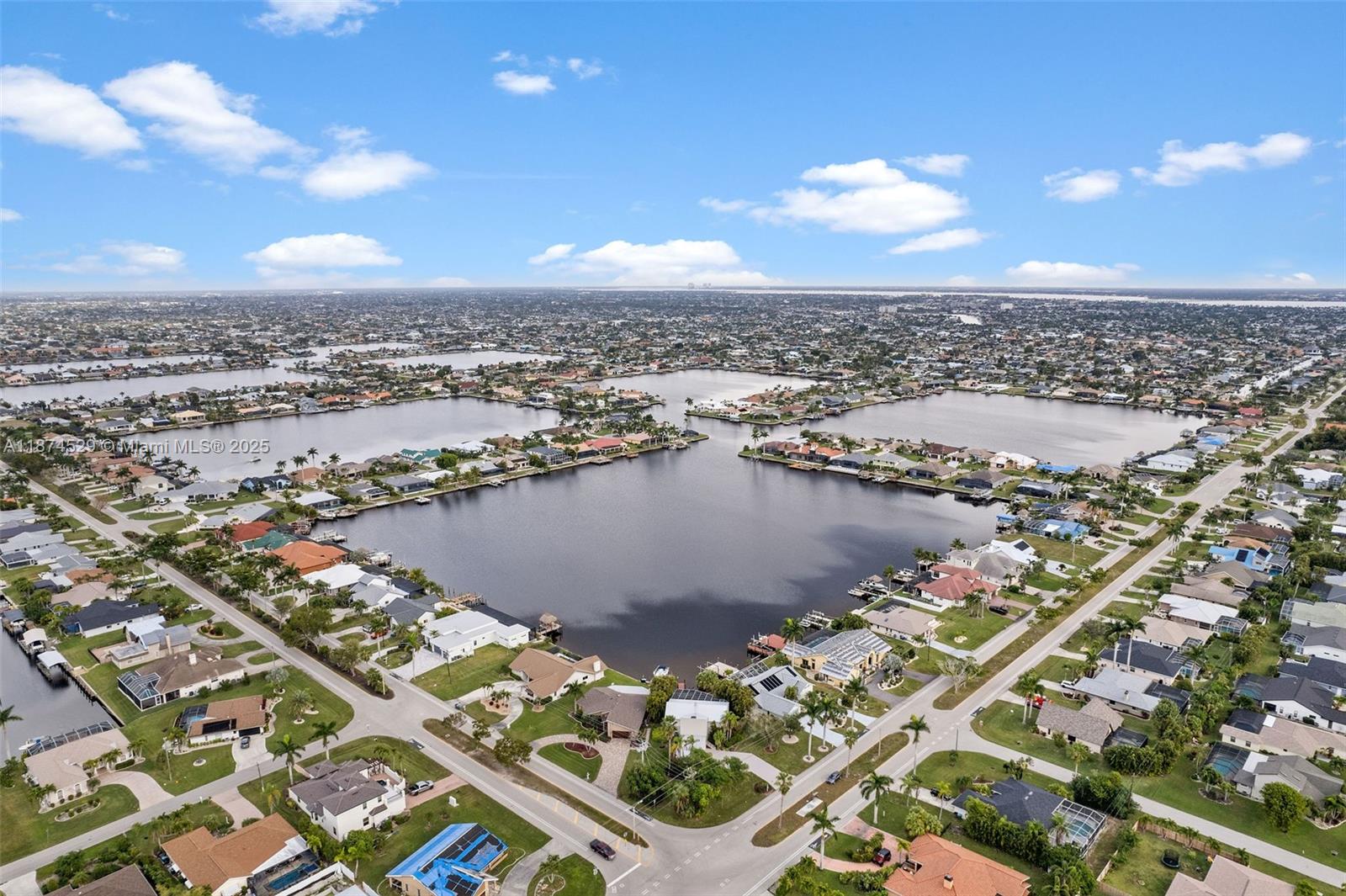 MULTI MILLION $ VIEWS ACROSS THE GULF ACCESS LAKE! Waterfront retreat on Britannia Lake, part of Cape Coral’s 8 Lakes. This 2-story home offers 3 bedrooms + den, 2 baths, 2,746 sq ft. The great room features vaulted ceilings & fireplace. The kitchen features a breakfast bar. The main-floor primary suite opens to the screened lanai w pool and spa. Upstairs you’ll find 2 guest rooms, each with a private balcony, plus a versatile loft. Outdoor living shines with a heated heart-shaped pool, spa, and sweeping lake views. A dock provides Gulf access for boating to beaches and waterfront dining. Updates include a 2022 metal roof and 2023 AC. Prime location near Tarpon Point and Rotary Park, plus a successful rental history. THIS HOME HAS NOT FLOODED IN RECENT HURRICANES.