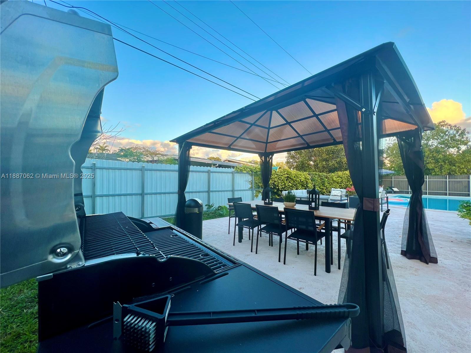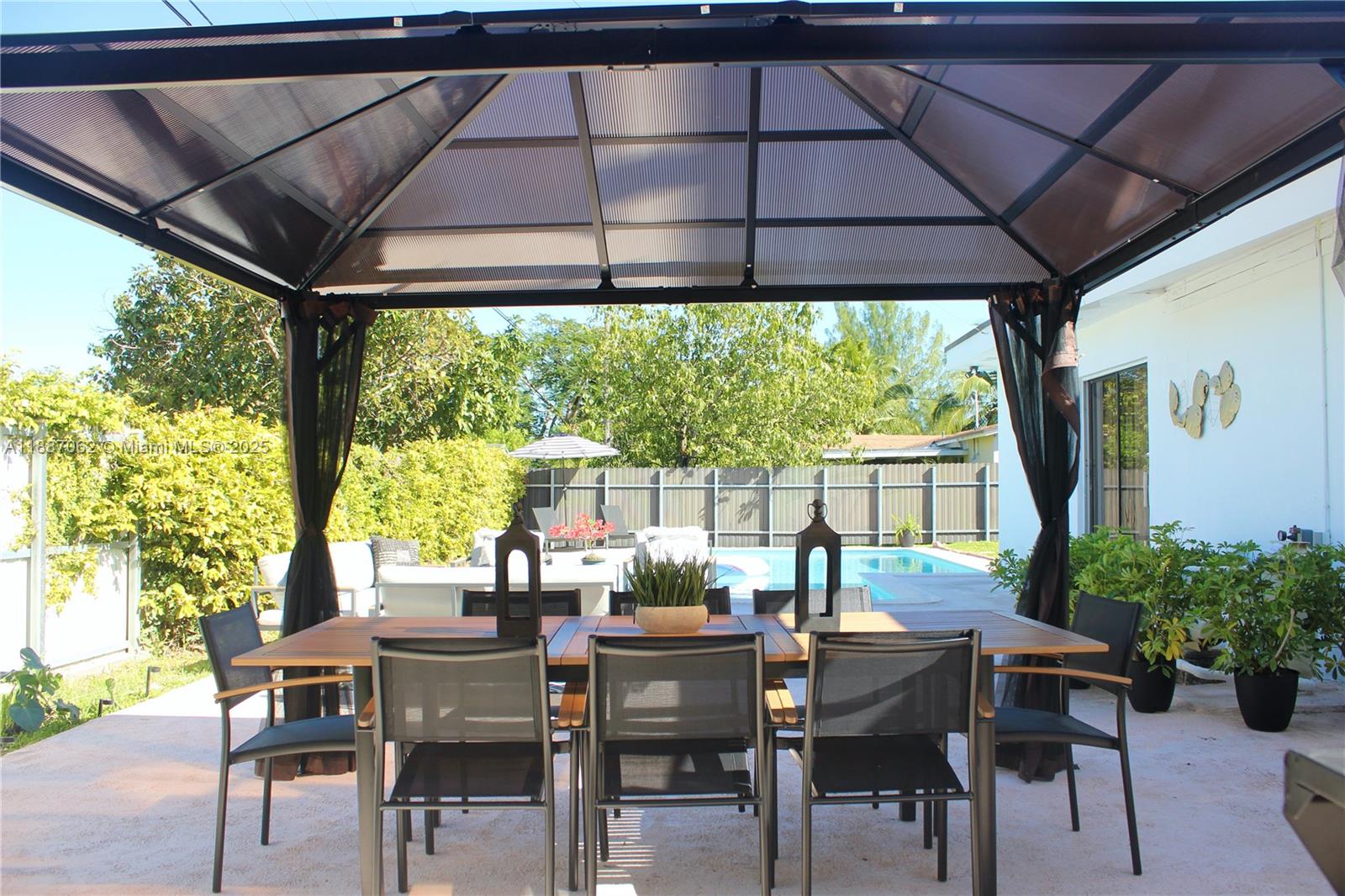 LOCATION LOCATION!!! BEAUTIFUL SINGLE FAMILY HOME 3 BEDROOMS, 2 BATHROOMS,TWO CAR GARAGE WITH AMAZING BIG POOL. ONE-STORY HOME, WITH 5 YEAR NEW METAL ROOF, PATIO CONCRETE, HURRICANE IMPACT WINDWS AND DOORS, SIX-CAMARAS CCTV SECURITY SYSTEM, SMART THERMOSTAT AND BIG SPACE TO PARK ONE BOTE.OPEN FLOOR PLAN WITH LIVING, KITCHEN AND EXTENDED DINING / FAMILY ROOM. TILED FLOORS. NO OWNERS ASSOCIATION, EASY TO SHOW.