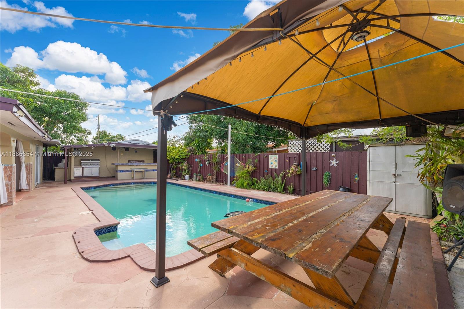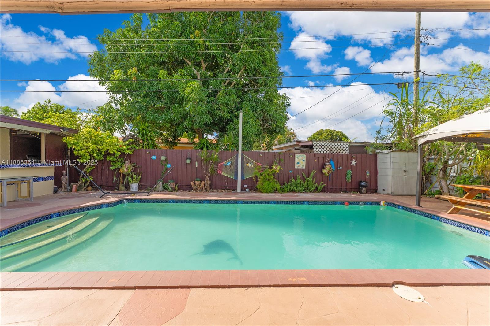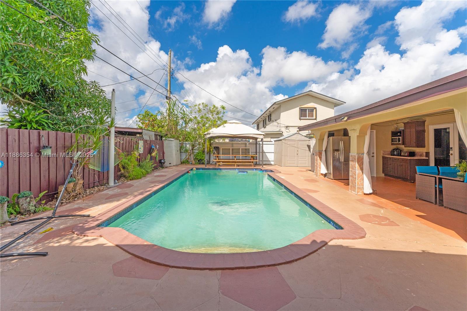 Terrific opportunity in the desirable WESTWOOD LAKE neighborhood, offering both comfortable living and great income potential. This home features 3 bedrooms, 2 bathrooms, a utility room, plus an additional room ideal as an office, guest space, or storage. Equipped with central A/C and 5 additional in-wall units, one water heater, and two tankless w/h. Municipal sewer and well. Two private-entrance efficiencies with excellent tenants provide steady rental income. Roof replaced in 2020. Enjoy an ample driveway, fully fenced backyard on a 7,500 sq ft lot with pool, outdoor kitchen, and gazebo. Prime location in a quiet area with NO Association.
