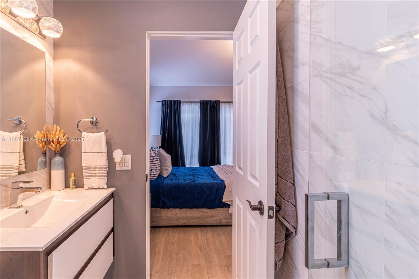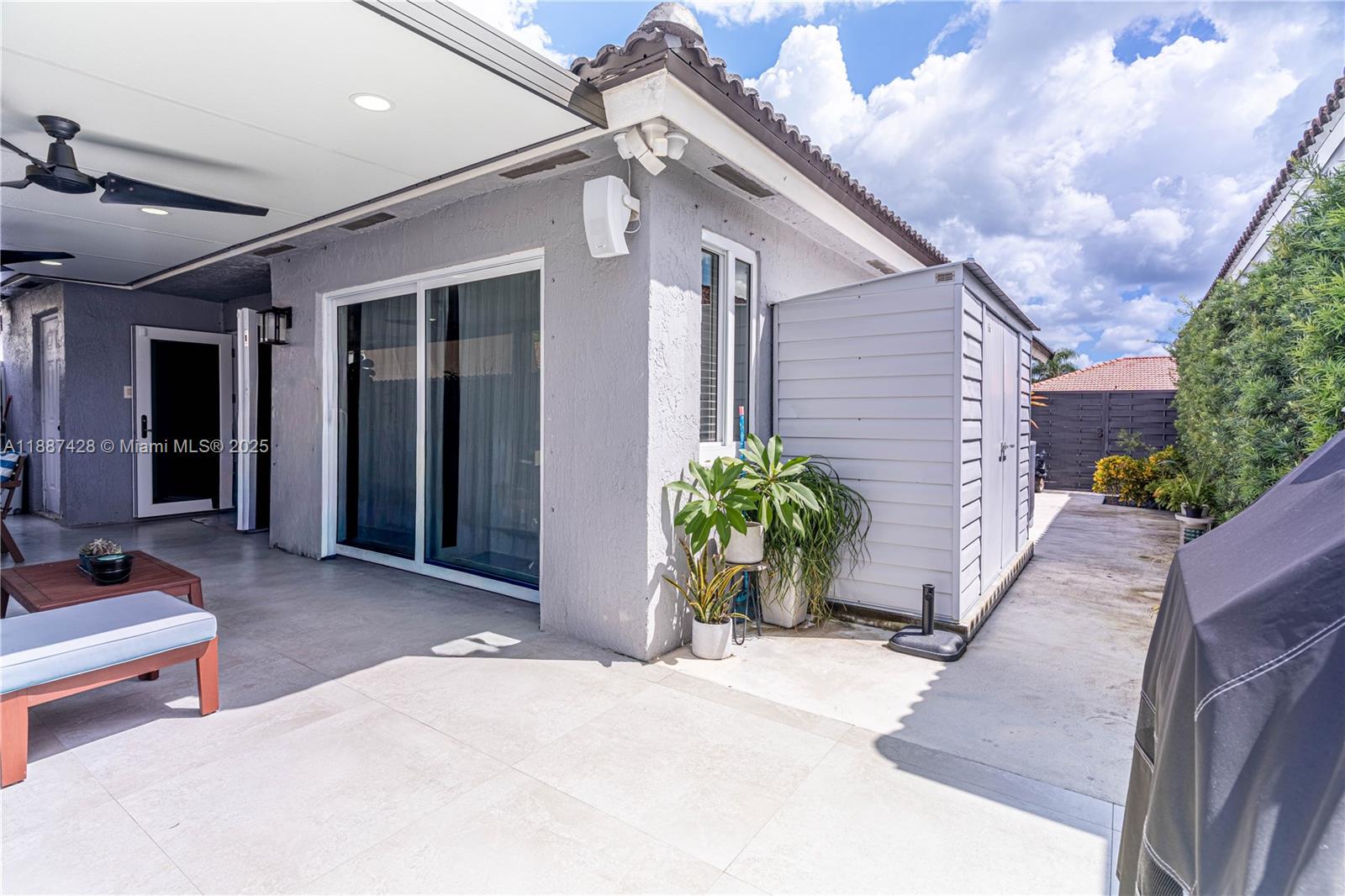 Step into this beautifully renovated home, showcasing a modern kitchen with contemporary appliances, waterfall countertops and stylish finishes, thoughtfully designed for both comfort and functionality. Enjoy year-round peace of mind with impact-resistant windows and doors, offering both security and energy efficiency. Titan tankless water heater for on-demand hot water, a dedicated storage room, and a backyard shed. The home also features a brand-new, gray-tiled terrace adds a sleek modern touch to the outdoor area, perfect for relaxing or entertaining outdoors. A nice cement block driveway provides ample parking space. On the side of the property, a cemented section offers enough space to comfortably fit a small boat or additional storage needs.