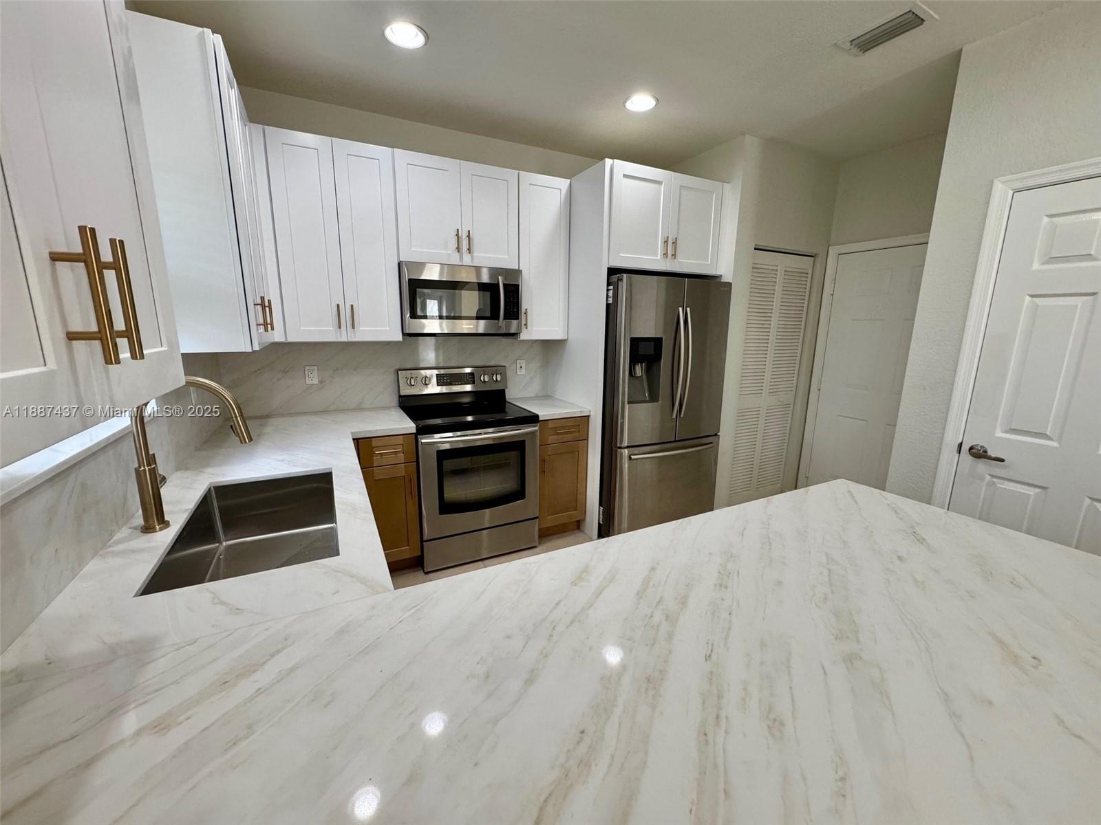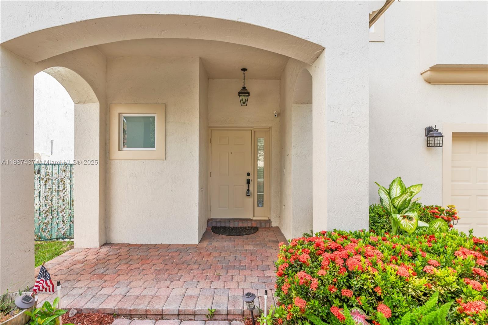 Step into style and comfort in this 3BR/2.5BA home located in a gated community! Brand New modern Kitchen with Fantasy Gold Quartz and 42' wood cabinets plus brand-new impact windows and doors, freshly painted inside and out, and a partially renovated master bathroom. 2024 Water Heater, 2023 Garage Door Motor with built-in Camera. Ceramic floors on 1st floor and wood floors on 2nd level. The kitchen flows seamlessly into the dining area, where you’ll find a custom built-in bar perfect for entertaining guests. Step outside to your patio with a pergola, ideal for relaxing, grilling, or hosting gatherings. Enjoy a 2-car garage plus a large driveway for plenty of parking. Just steps away from the community pool and playground. HOA Fees includes lawn maintenance, cable, alarm, and amenities.