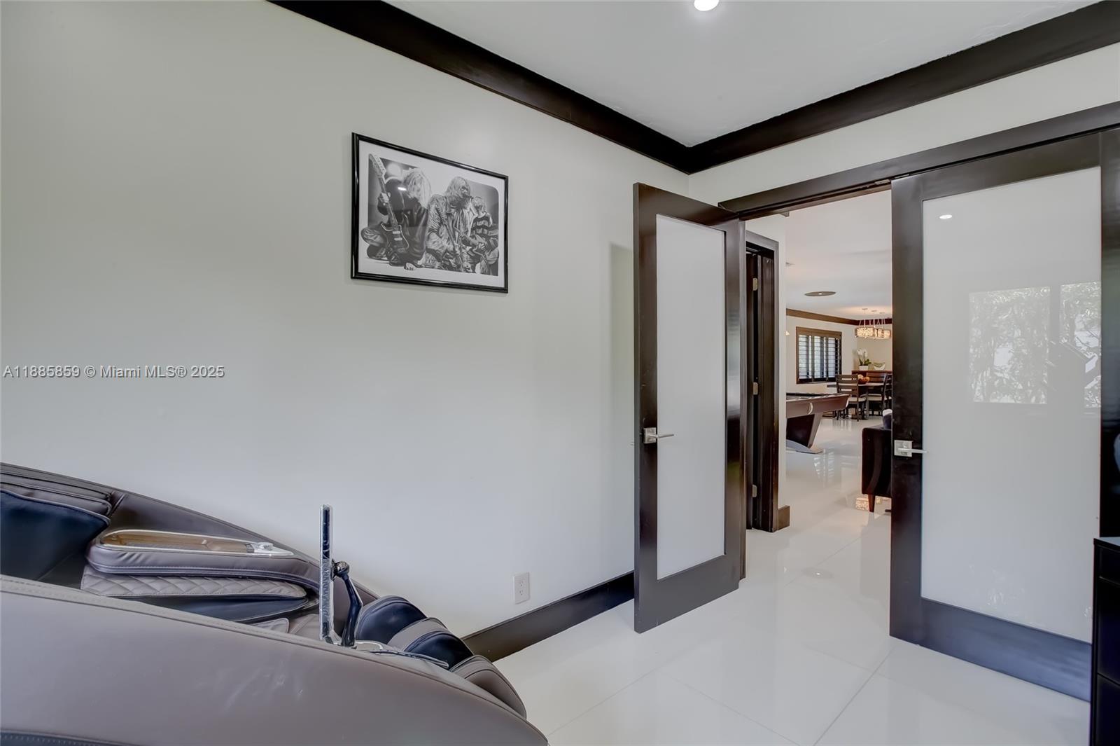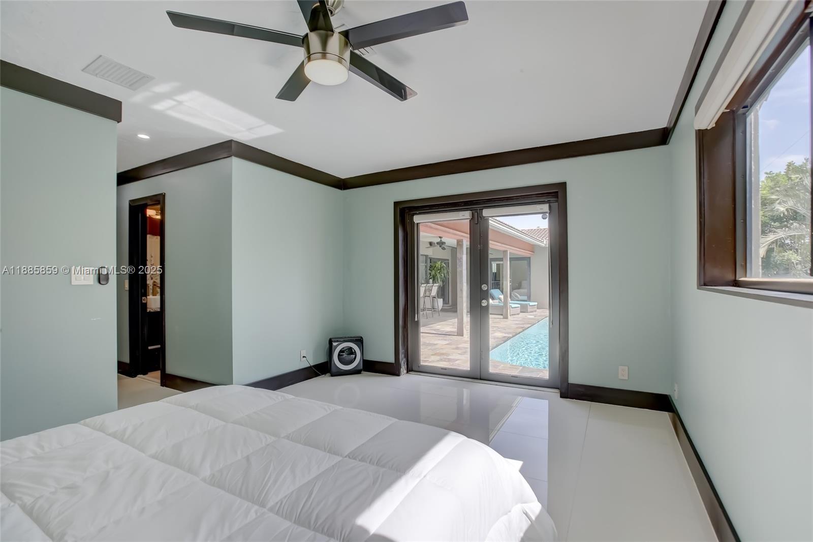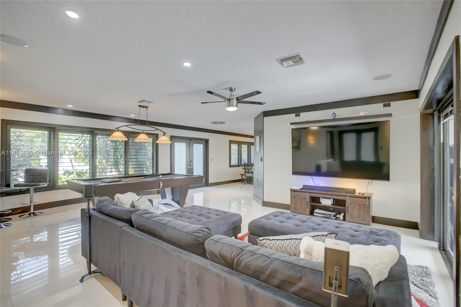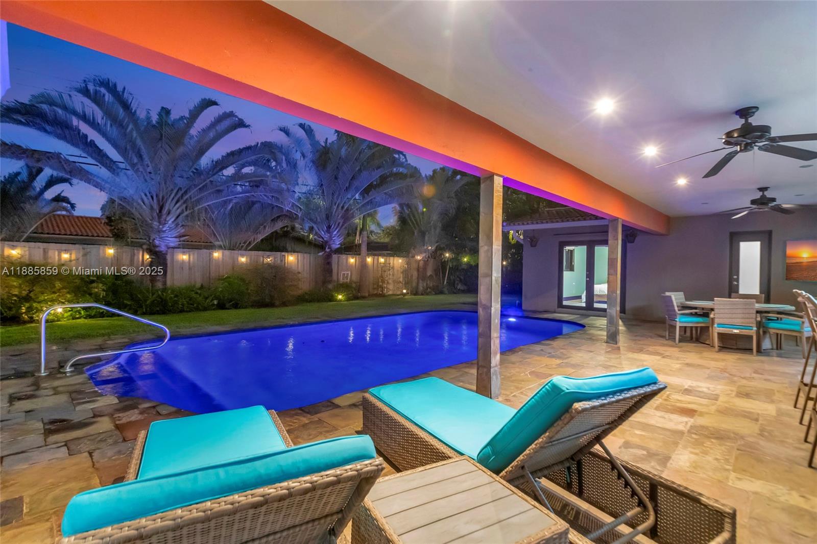 Step into elevated coastal living in Coral Ridge Country Club Estates with this 3-bedroom plus enclosed den (currently styled as a guest suite), 3-bath residence and air-conditioned 2-car garage. An open layout flows into a chef’s kitchen with double ovens, granite counters, wine cooler, and a cooking island with a pass-through bar to the covered veranda, designed for seamless indoor outdoor entertaining. Two private primary suites offer custom walk-in closets and French doors opening to the pool. Nearly every room overlooks the outdoor oasis featuring a cabana, hammock lounge, and spacious fenced yard. Located one block from the golf course and minutes to the beach, premier dining, and top private schools. Arrive by golf cart and live the Fort Lauderdale lifestyle.