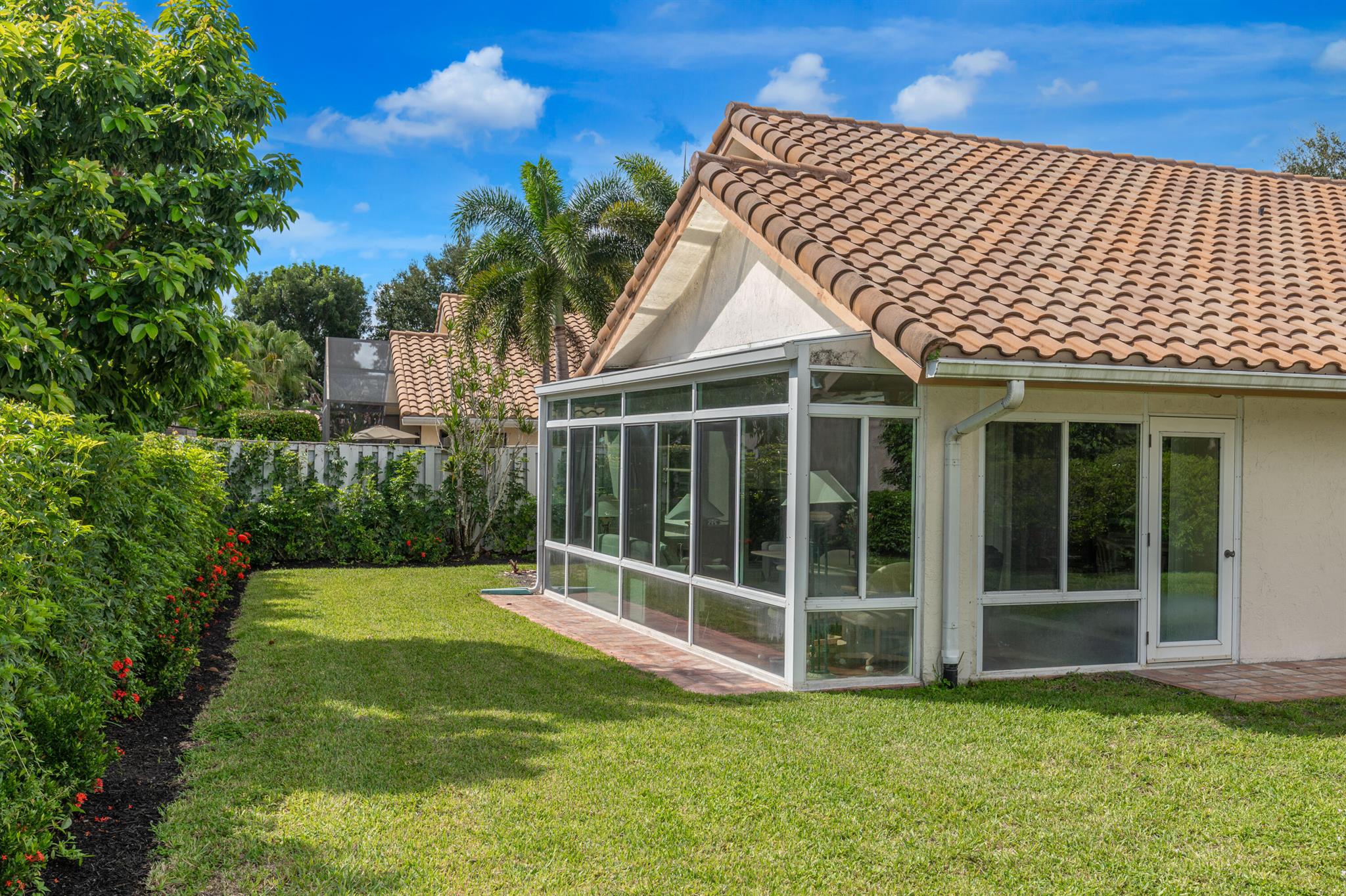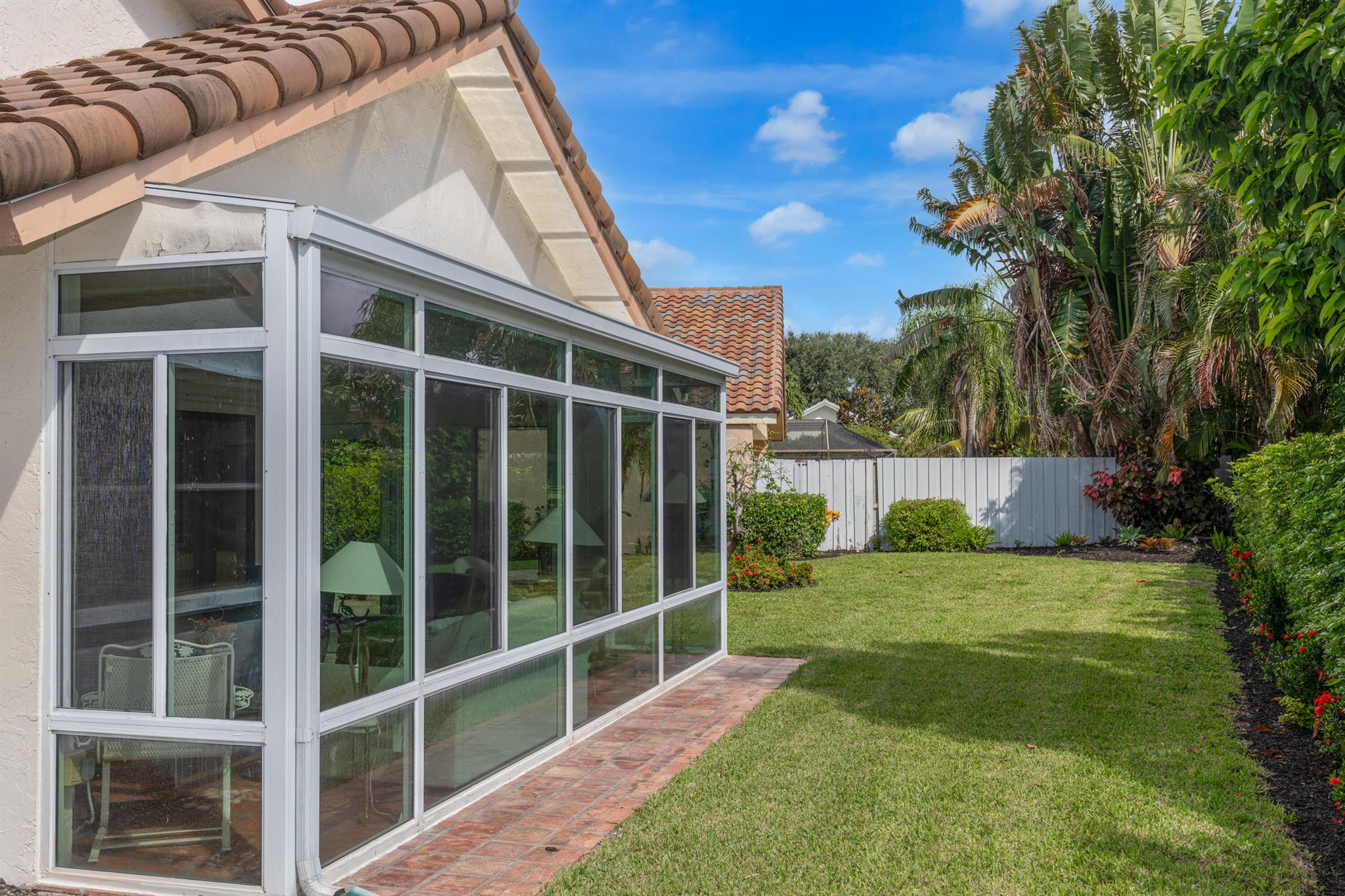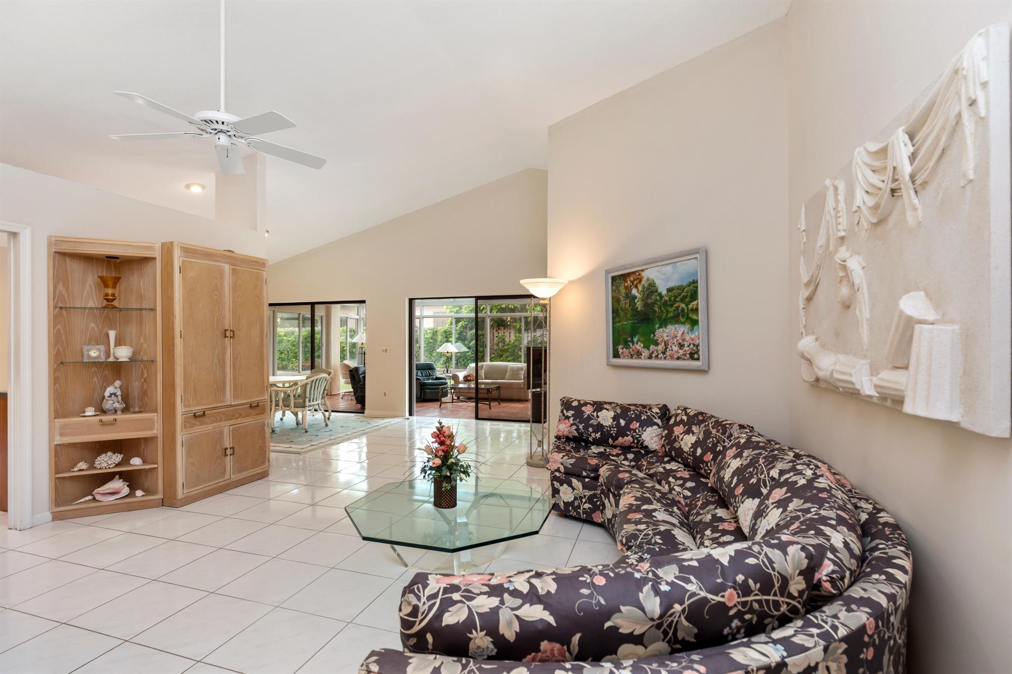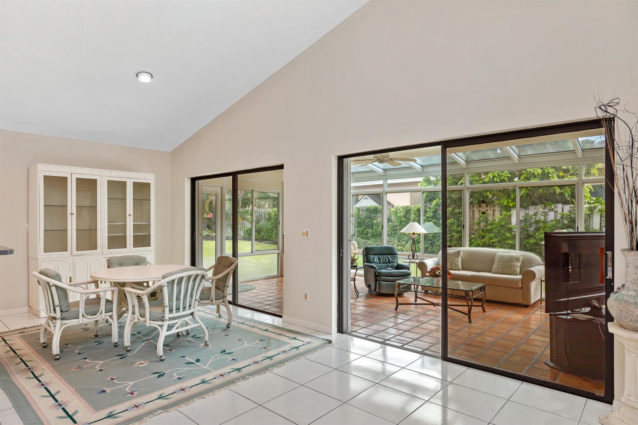 WELCOME HOME TO THIS LOVELY THREE BEDROOM TWO BATHE HOME, AS YOU WALK INTO THIS HOME YOU WILL SEE A LARGE OPEN FLOORPLAN THAT LEADS TO A BRGHT ENCLOSED FLORIDA ROOM PERFECT FOR ENTERTAINING YOUR GUESTS. LARGE KITCHEN WITH NICE WOOD CABINETRY AND STAINLESS STEEL APPLIANCES. TILE FLOORS THRIUGHOUT EXCEPT ONE BEDROOM HAS CARPET. FORMAL DINNG ROOM. THREE SPACIOUS BEDROMS AND TWO FULL BATHS. MASTER BATH HAS A JACUZZI TUB FOR RELAXING AFTER A LONG DAY. HUGE WALK IN CLOSET IN MASTER BEDROOM. TWO CAR GARAGE. HOUSE IS ACROSS THE SREET FRO THE LAKE AND COMMUNITY POOL PLUS TENNIS COURTS. THIS IS A NICE FAMILY NEIGHBORHOOD ON A QUIET STREET. COMMUNITY IS GATED AND CLOSE TO SHOPPING, RESTAURANTS, AND I-95.