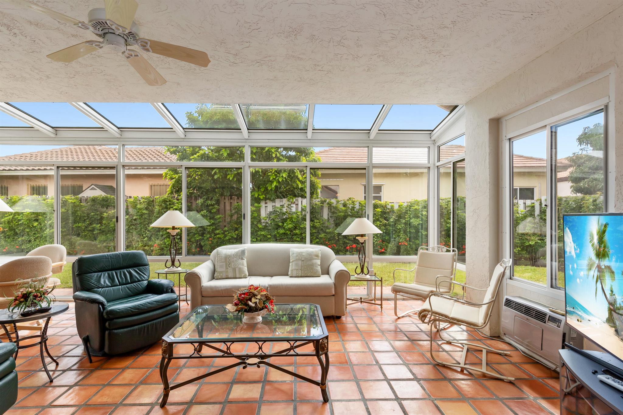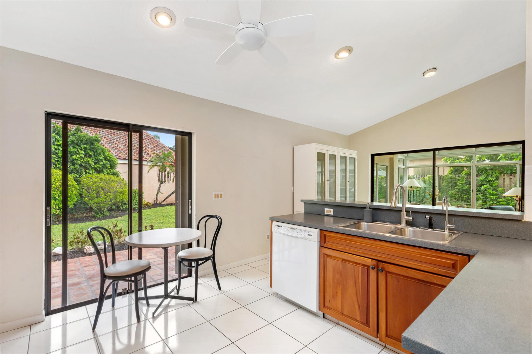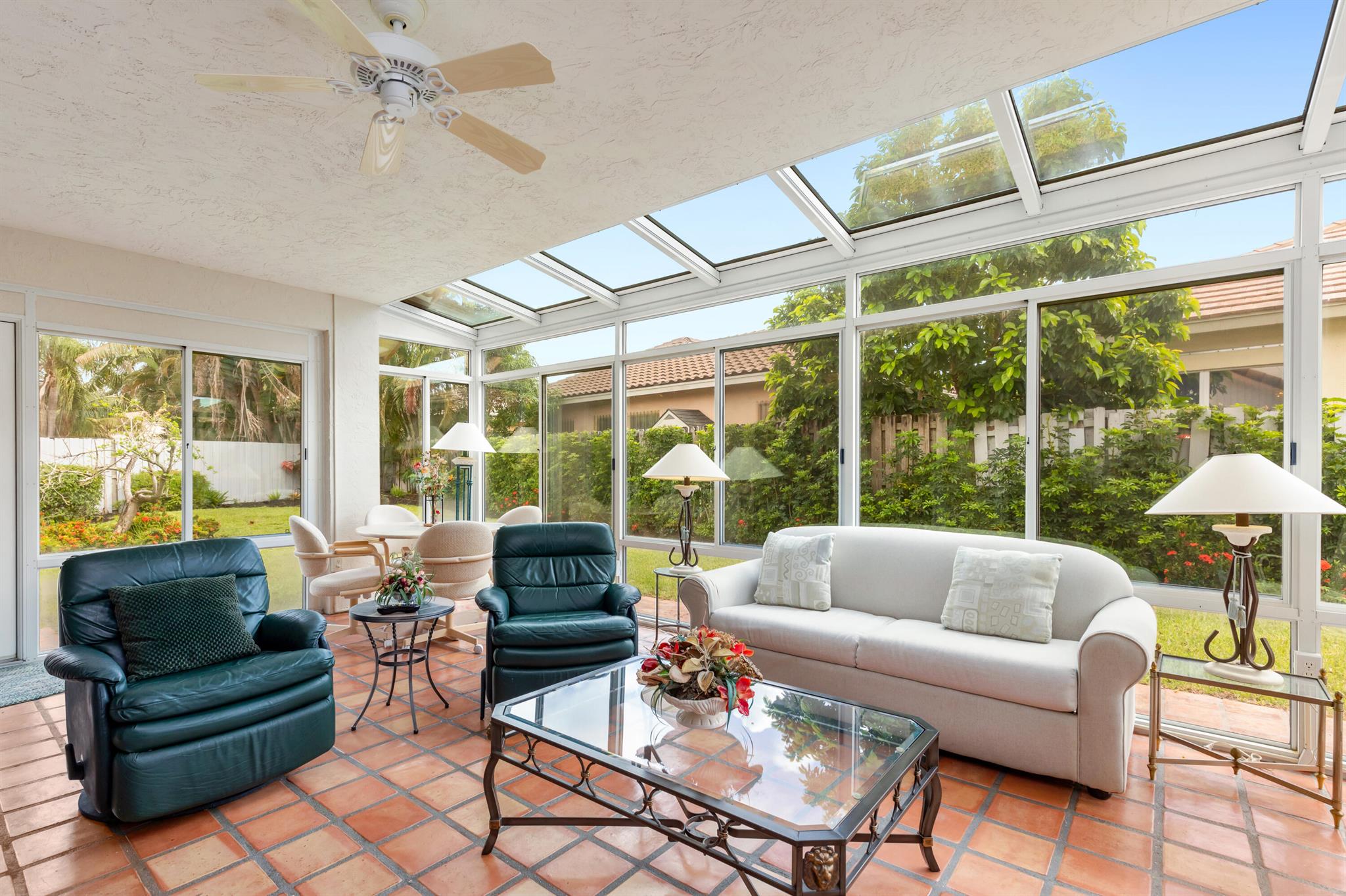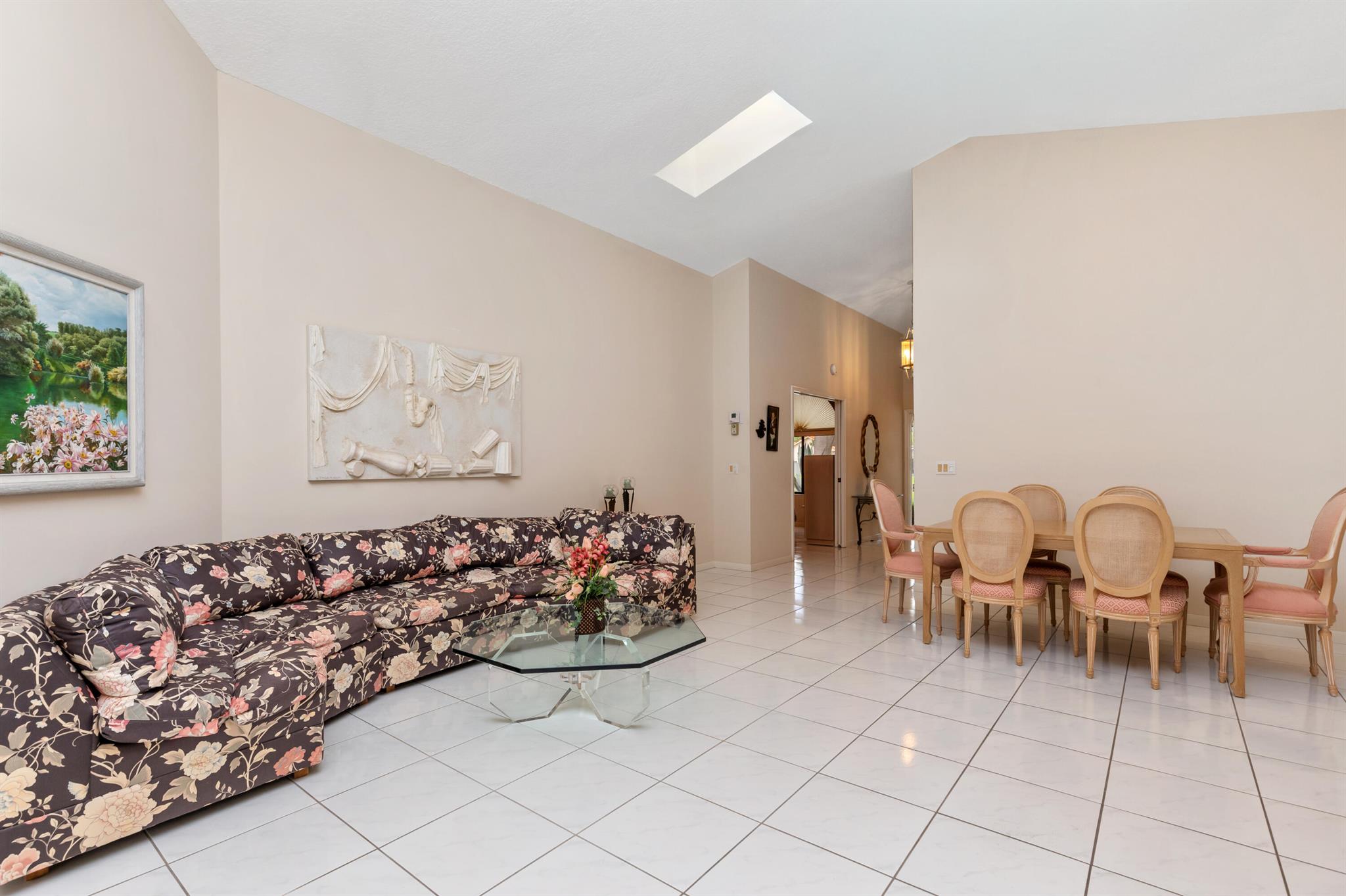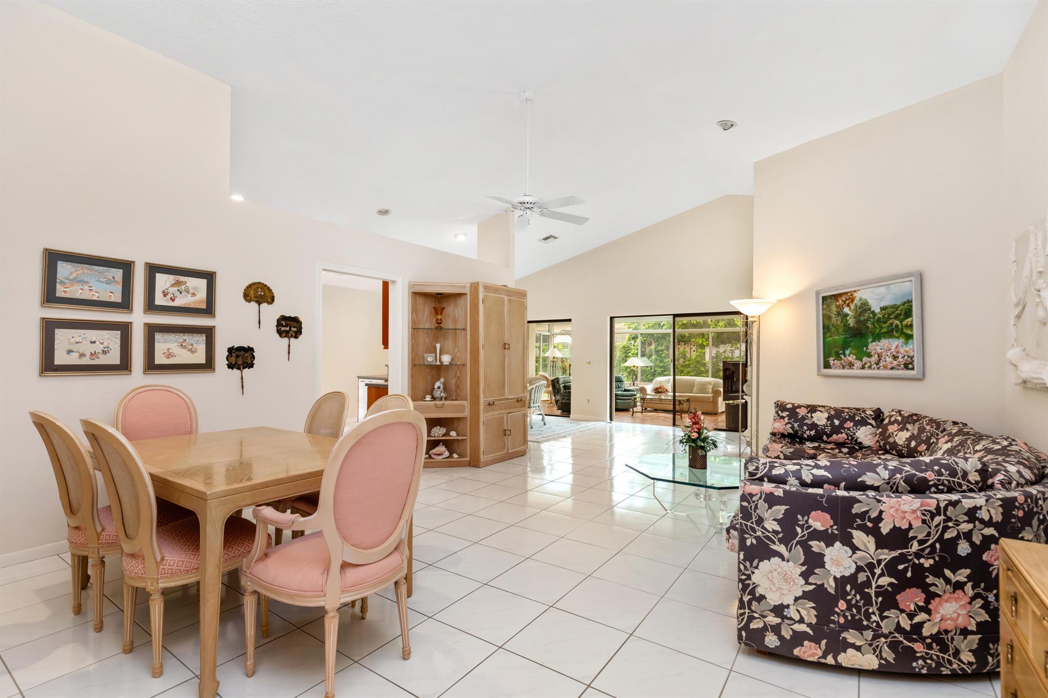WELCOME HOME TO THIS LOVELY THREE BEDROOM TWO BATHE HOME, AS YOU WALK INTO THIS HOME YOU WILL SEE A LARGE OPEN FLOORPLAN THAT LEADS TO A BRGHT ENCLOSED FLORIDA ROOM PERFECT FOR ENTERTAINING YOUR GUESTS. LARGE KITCHEN WITH NICE WOOD CABINETRY AND STAINLESS STEEL APPLIANCES. TILE FLOORS THRIUGHOUT EXCEPT ONE BEDROOM HAS CARPET. FORMAL DINNG ROOM. THREE SPACIOUS BEDROMS AND TWO FULL BATHS. MASTER BATH HAS A JACUZZI TUB FOR RELAXING AFTER A LONG DAY. HUGE WALK IN CLOSET IN MASTER BEDROOM. TWO CAR GARAGE. HOUSE IS ACROSS THE SREET FRO THE LAKE AND COMMUNITY POOL PLUS TENNIS COURTS. THIS IS A NICE FAMILY NEIGHBORHOOD ON A QUIET STREET. COMMUNITY IS GATED AND CLOSE TO SHOPPING, RESTAURANTS, AND I-95.