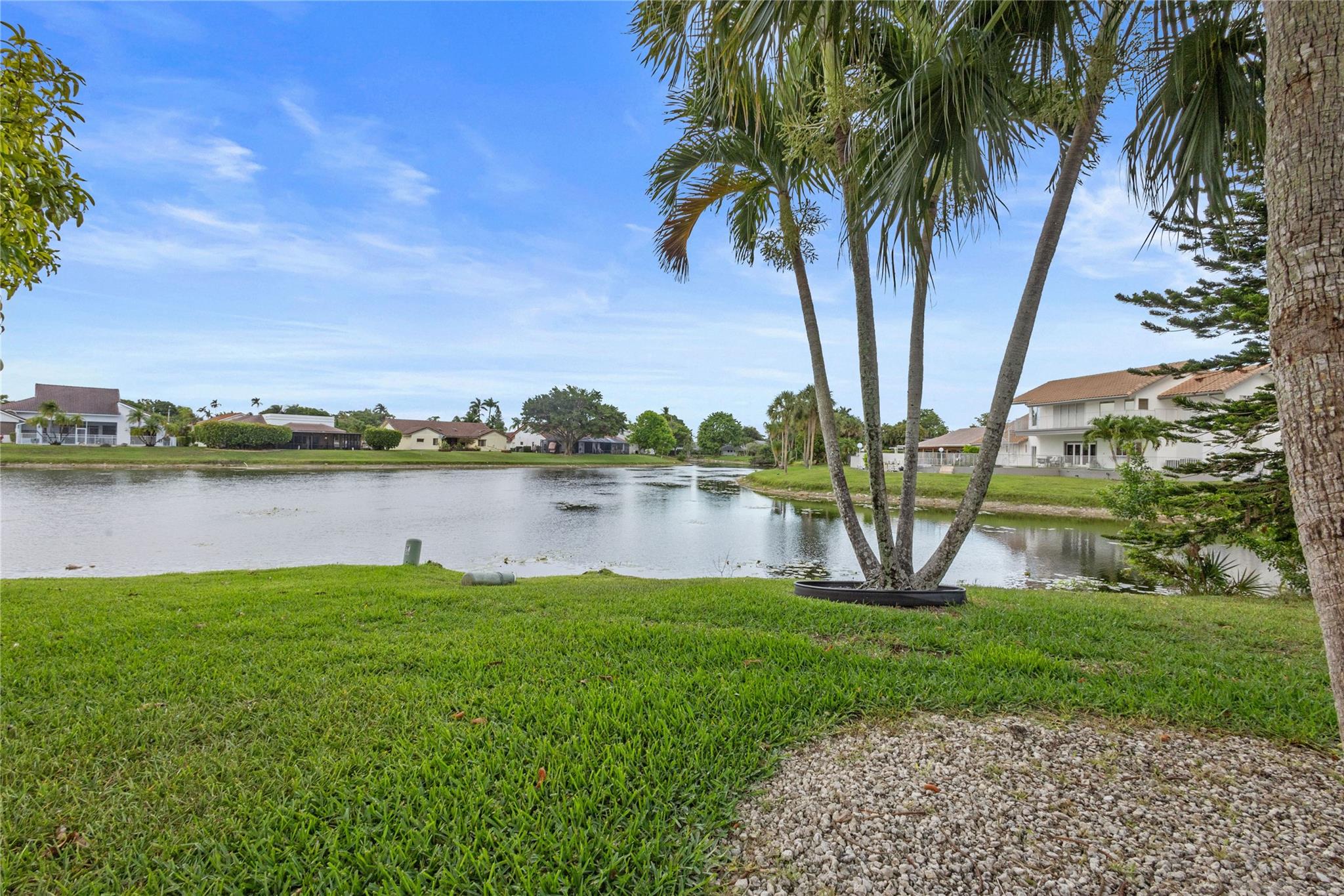 Beautifully updated home featuring new flooring and high-end wood vaulted ceilings. Impact windows and doors, updated baseboards, and energy-efficient LED lighting throughout. Spacious master suite overlooks the pool and includes a luxurious bath with bidet. Kitchen offers ample space with wood cabinets. Updated half bath, very cold and efficient A/C, home vacuum. Enjoy stunning water views from the large backyard—perfect for entertaining. Accordion shutters , impact windows, offering storm protection and modern appeal, low HOA—move-in ready and built for comfort!- Seller may consider buyer concessions if made in an offer.