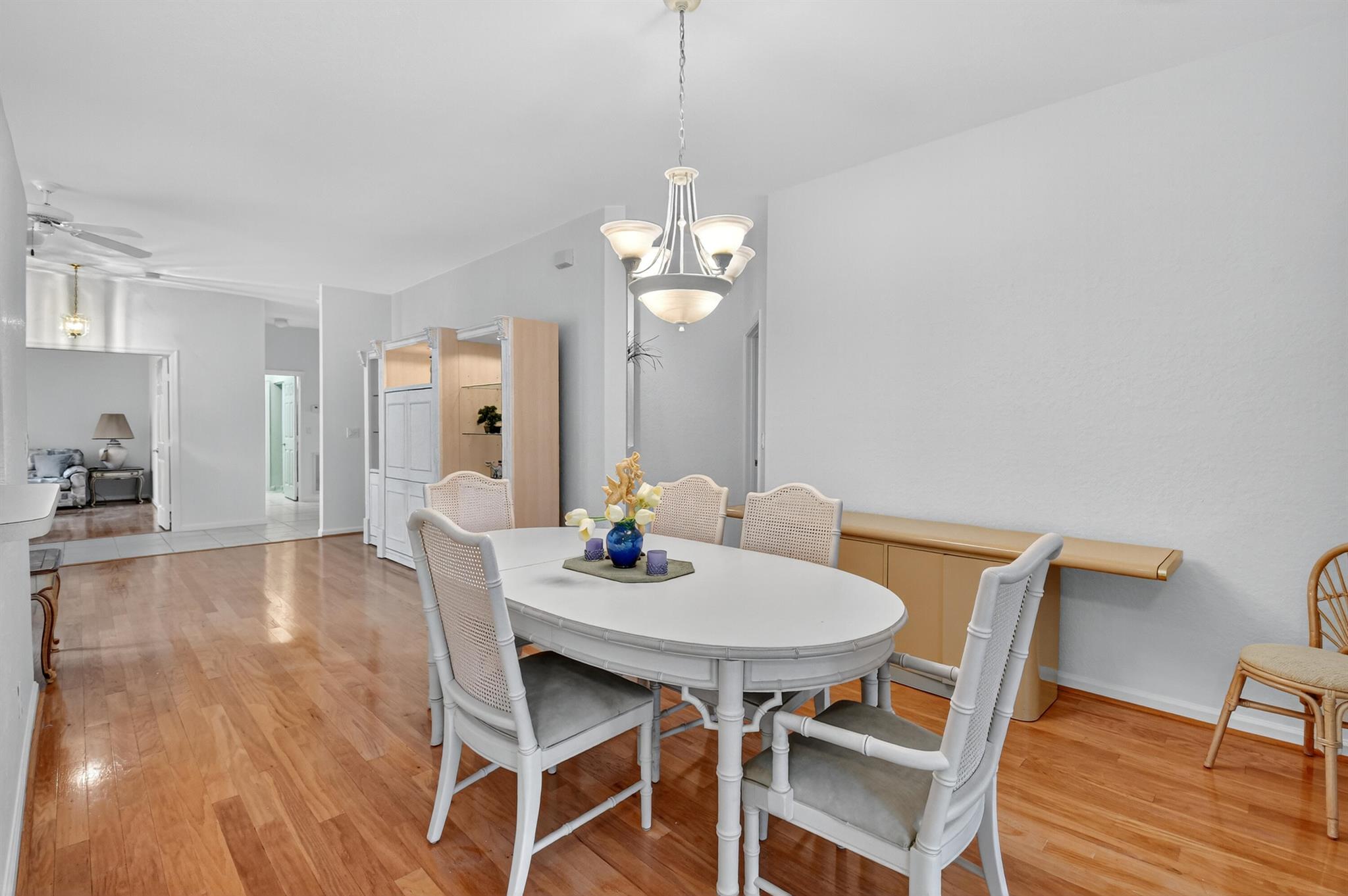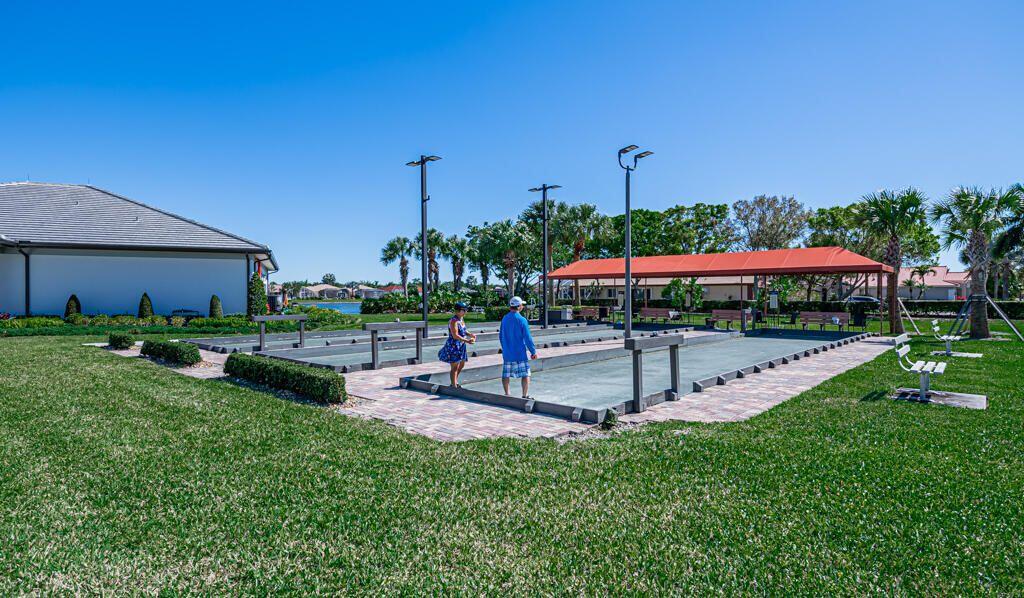 This 3/2, is FRESHLY PAINTED w/ a light & airy neutral pallet boasting an open floor plan. Interior has wood floors in the main living/dining areas & spacious bedrooms with ample storage space. Exterior includes accordion shutters for storm protection, a side entrance & a covered lanai that provides both privacy & serenity. Venetian Isles is a 55+ community that offers country club living. Amenities include a new clubhouse w/ a restaurant serving breakfast & lunch, PLUS an upstairs bistro bar that serves dinner. A social hall is utilized for weekly parties & shows, a craft room, billiards & a library. Outside the clubhouse is a large resort-like pool w/hot tub, resistance walking pool, Tennis, Pickleball & Bocce courts. Last but not least, a free-standing state- of-the-art workout room.