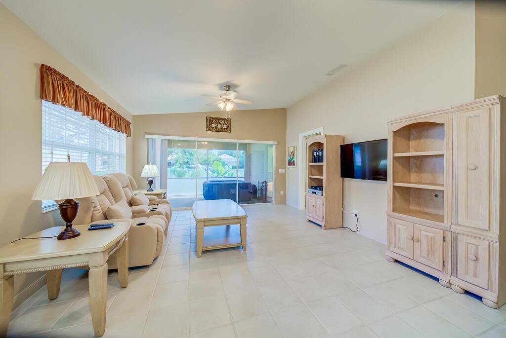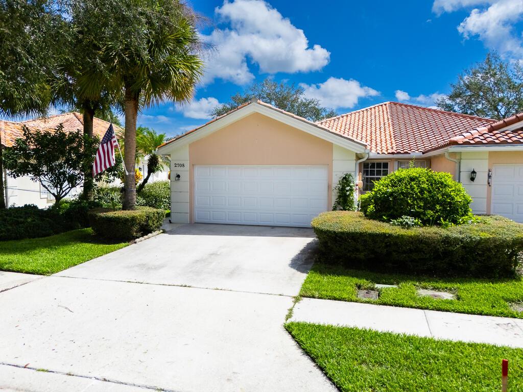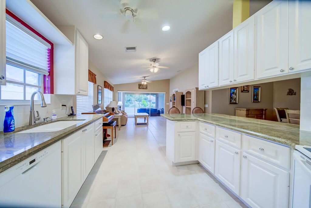 Welcome to this charming lakeview villa, offering 2 bedrooms, 2 bathrooms, and a 2-car garage. RiverWalk offers luxury, resort-style living with ought membership fees! This one-story home features an open layout with elevated ceilings, neutral colors, tile floors in common areas, recessed lighting, and ceiling fans. The modern kitchen boasts white cabinetry and granite countertops, perfect for culinary pursuits. An inside laundry room adds convenience, complete with a sink and washer/dryer. The spacious master bedroom includes laminate floors, a walk-in closet with custom built-ins, a second closet, and an ensuite bathroom featuring a double vanity sink, shower with glass doors, and a linen closet.