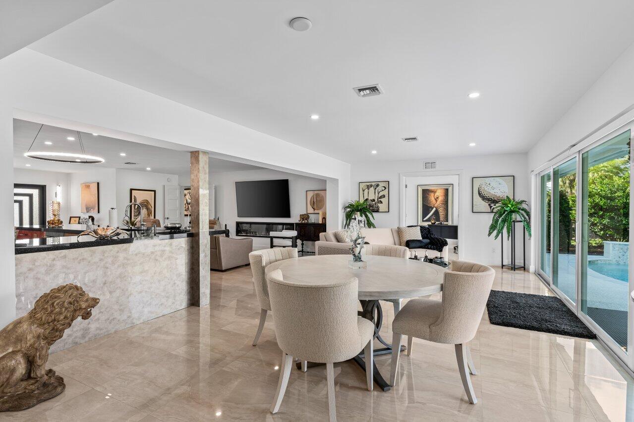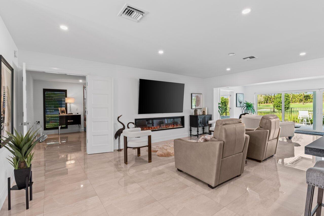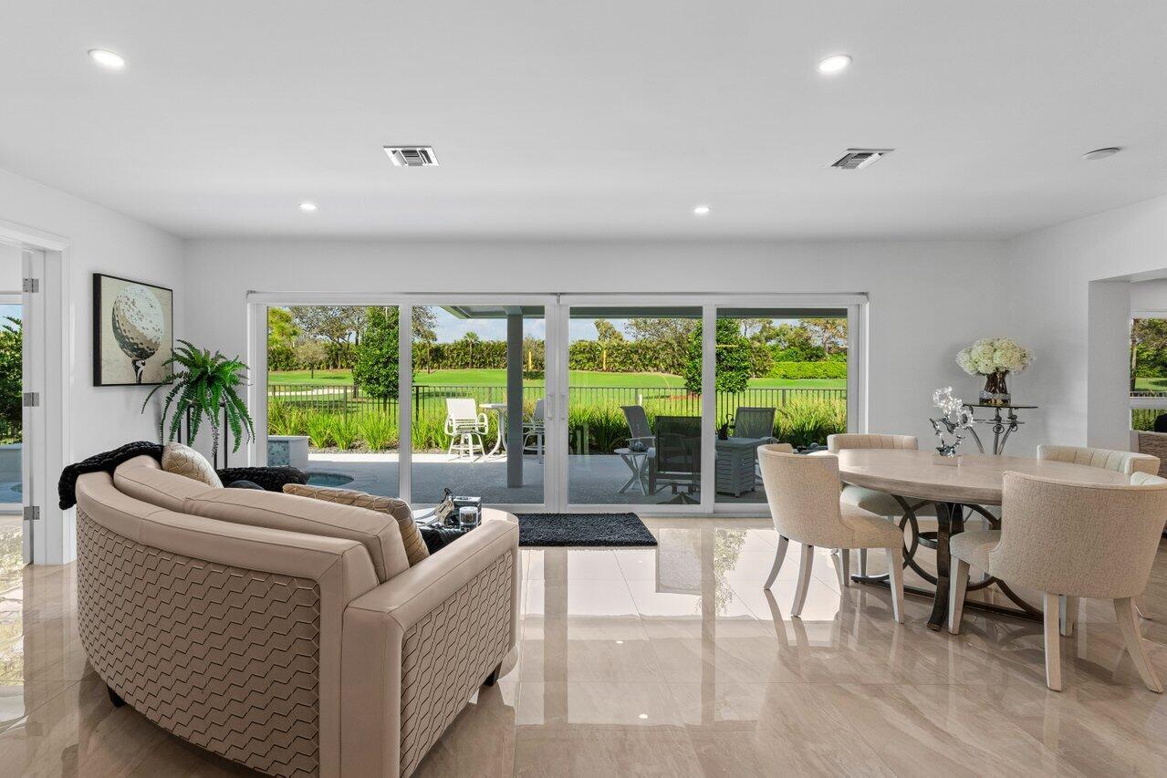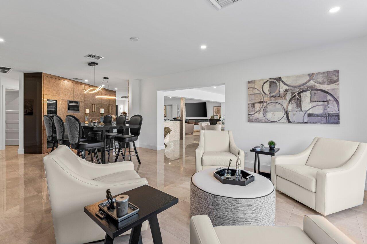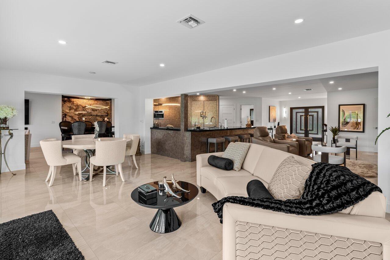 This rarely available 5BR Delray Dunes Golf & Country Club home is a must-see! Overlooking the 6th fairway with views of the 6th green , Completely rebuilt residence is model-ready with top-tier finishes. The reimagined kitchen features Italian cabinetry and appliances, wine fridge, expansive quartz countertops, and a wet bar with ice maker. Upgrades include new bathrooms, porcelain tile flooring throughout, new roof, completely impact, and a private spool. Sophisticatedly staged with custom furniture. As a member of Delray Dunes enjoy a newly renovated 18-hole Pete Dye golf course, Clubhouse, Fitness center, a stunning new pool with bar, expanded outdoor dining, and two illuminated tennis courts. Sellers are open to negotiating the conveyance of all furnishings.