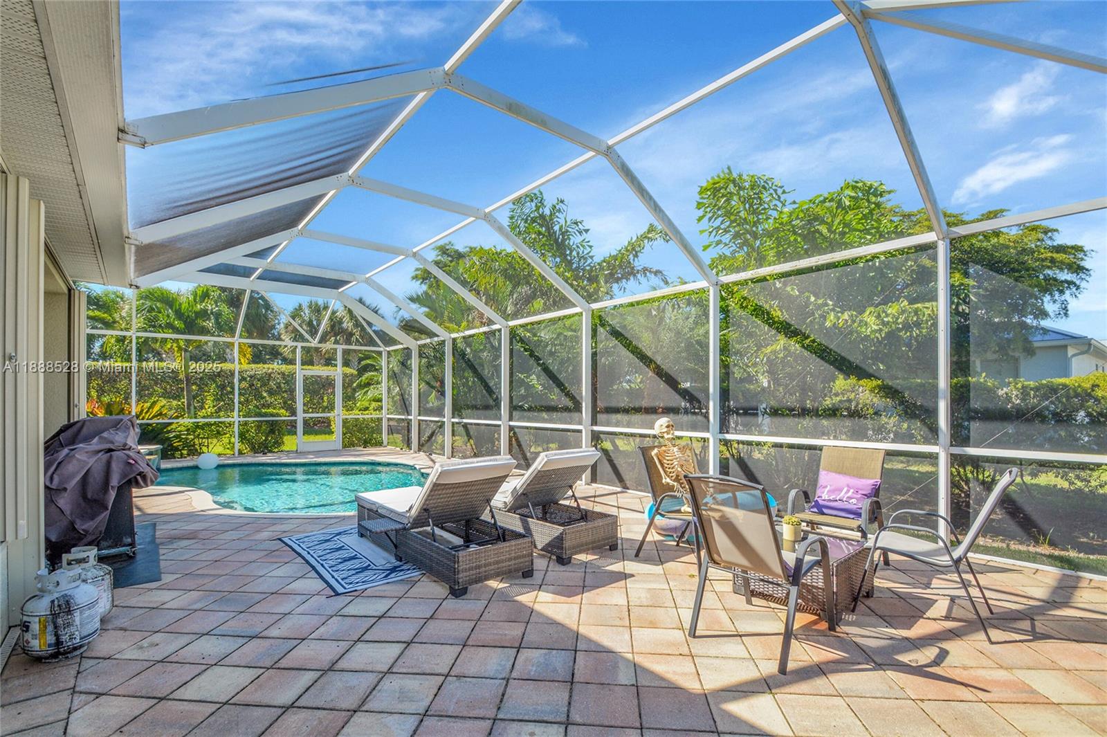 SANDOVAL gated enclave corner property 3 BR + Den, 2.5 BA. Marble floors throughout, 2 living rooms, den, kitchen with stainless appliances, large island, and pantry. Primary suite with walk-in closet & dual sinks. Screened lanai with pool + spa waterfall. Laundry room, 2-car garage. Gated Sandoval Community offers lawn care included plus gated security, clubhouse, fitness center, resort pool with slide, tennis, pickleball, basketball, volleyball, bocce, shuffleboard, dog parks, fishing lakes, and miles of walking trails. Priced to sell.