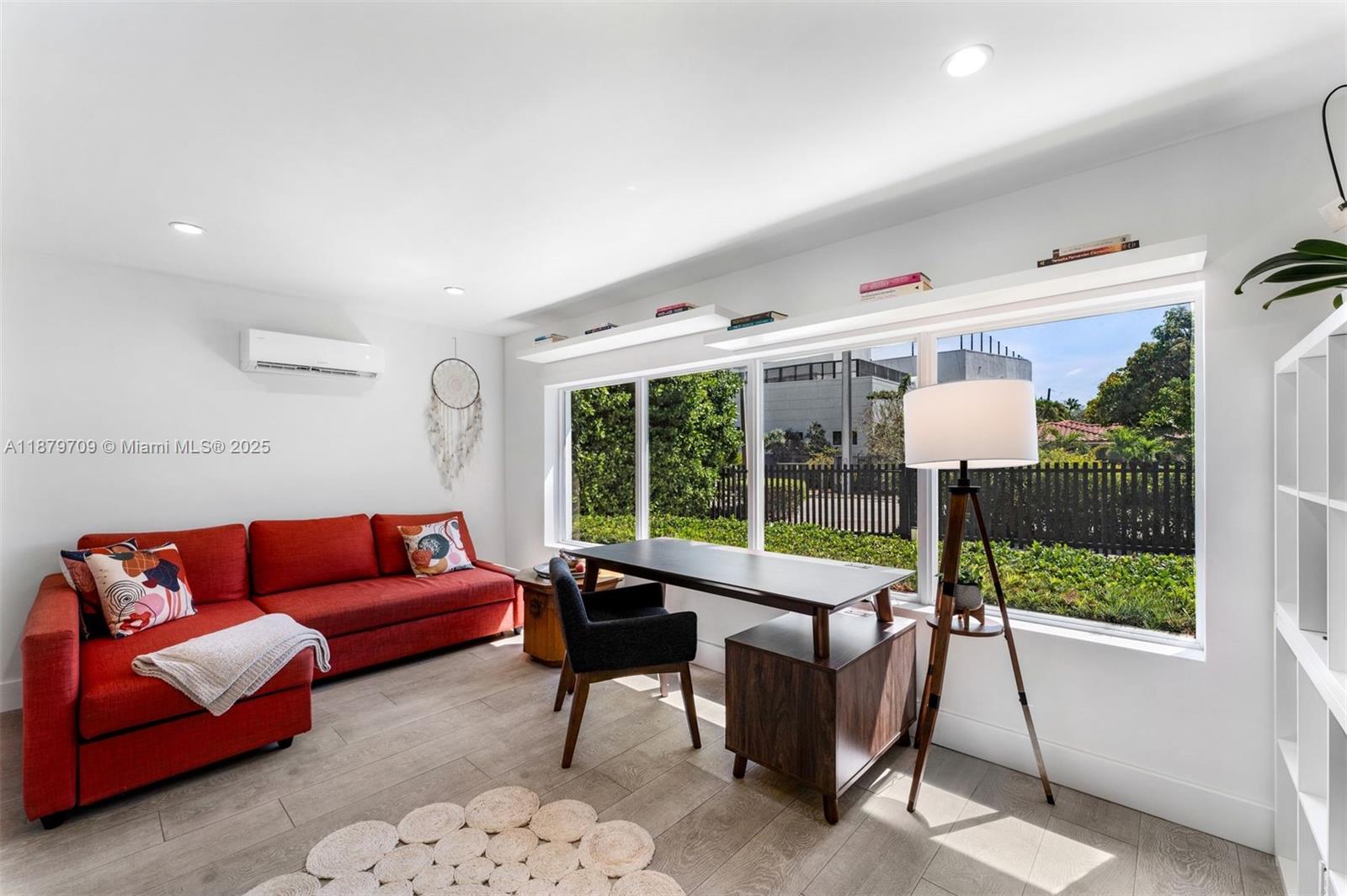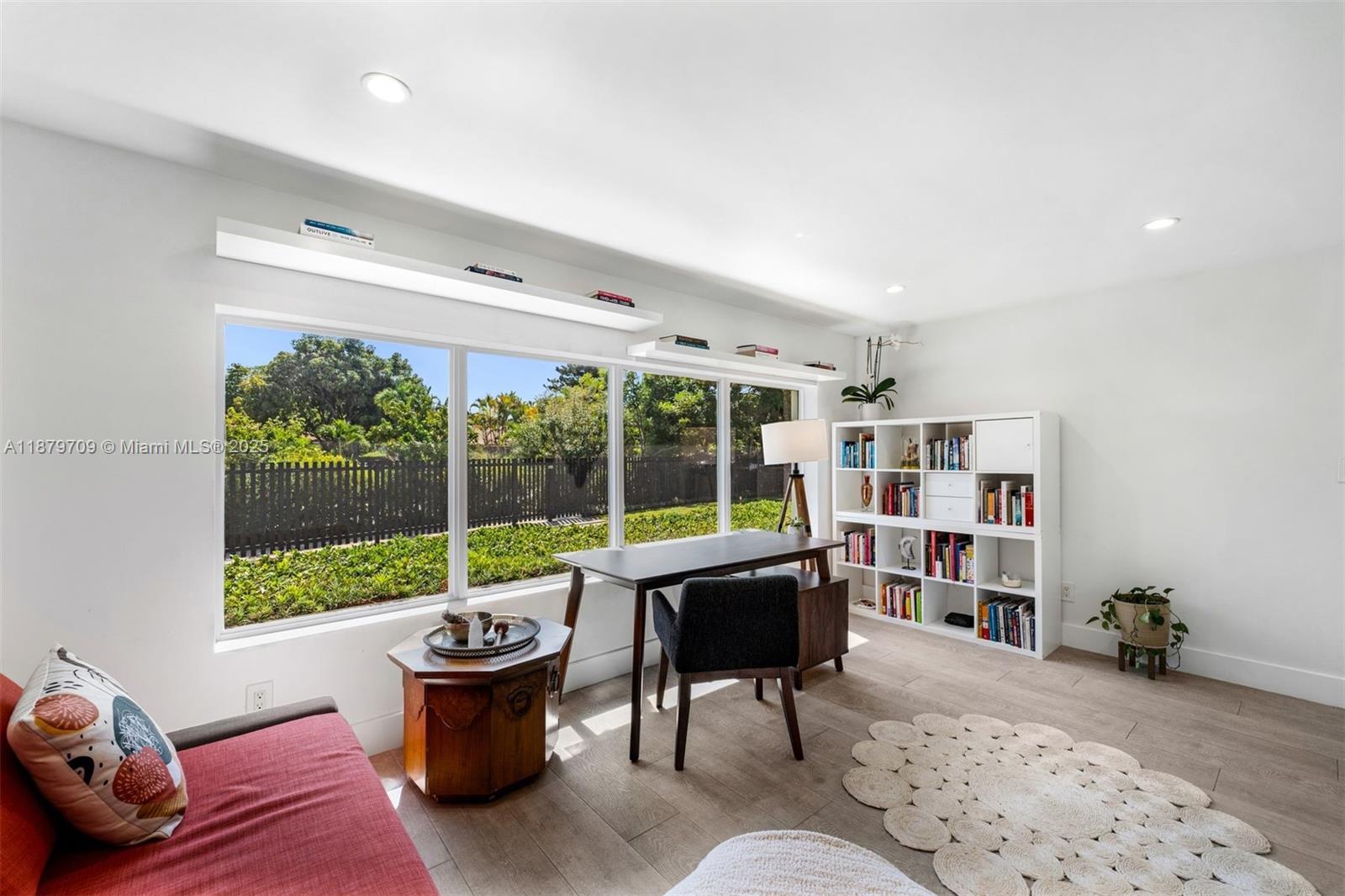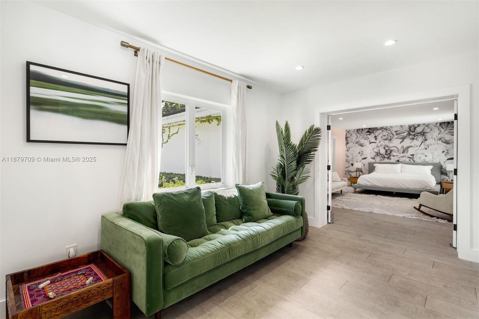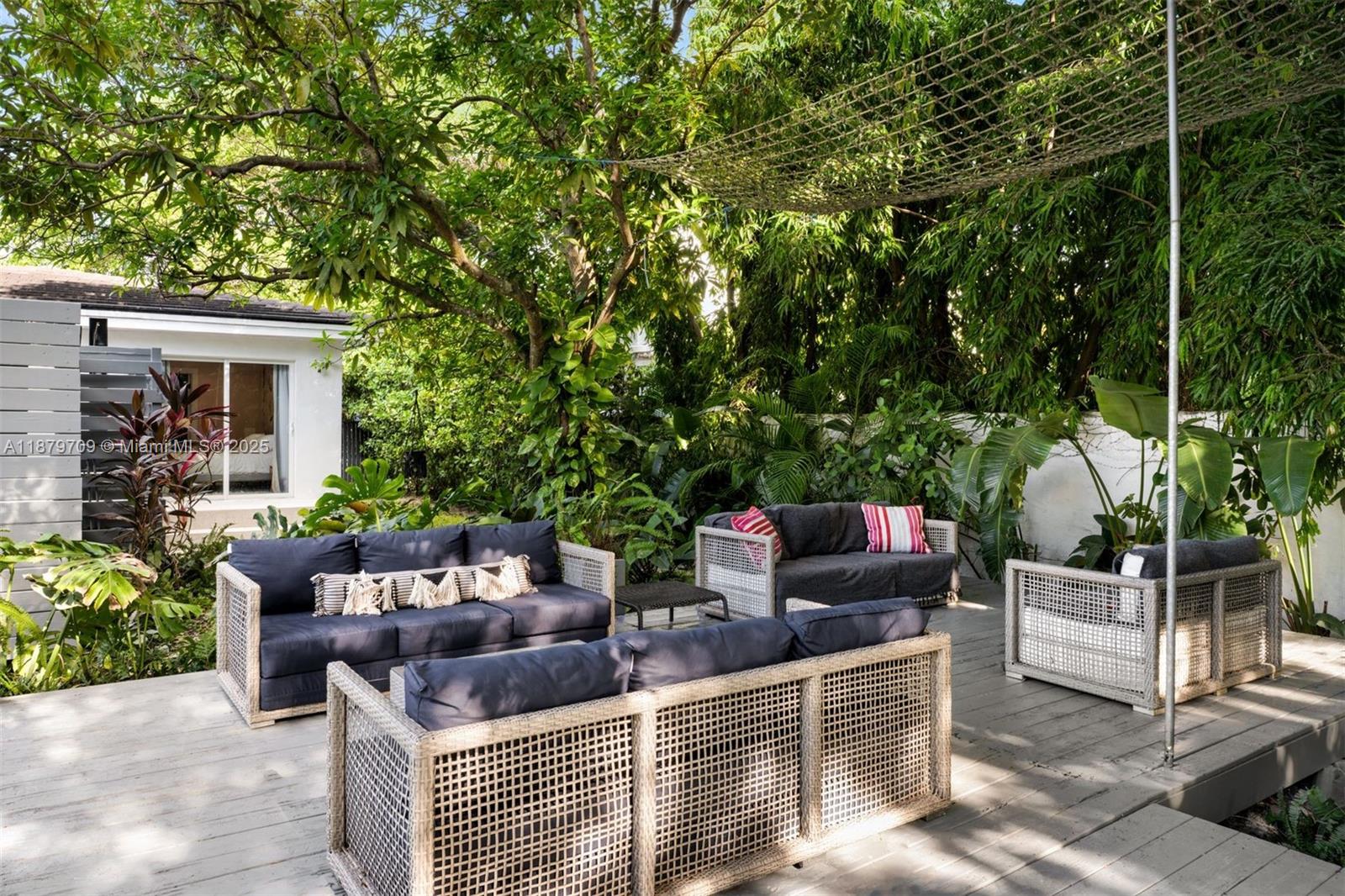 Turn-key gated Mimo estate on an expansive 14,878 SF lot offering exceptional privacy. This 5-bedroom, 4.5-bathroom residence features a thoughtful layout with a dedicated home office and seamless indoor-outdoor flow. The oversized backyard is a sanctuary with mature trees, lush landscaping, and a sparkling pool—perfect for entertaining or unwinding. Enjoy multiple outdoor living areas including a covered patio and private outdoor shower. A detached guest house provides ideal space for visitors or flexible use. Additional features include a covered carport with EV charger, secure gated entry, and abundant afternoon light throughout the home. Designed for modern living and move-in-ready comfort, this residence delivers privacy, functionality, and timeless appeal.