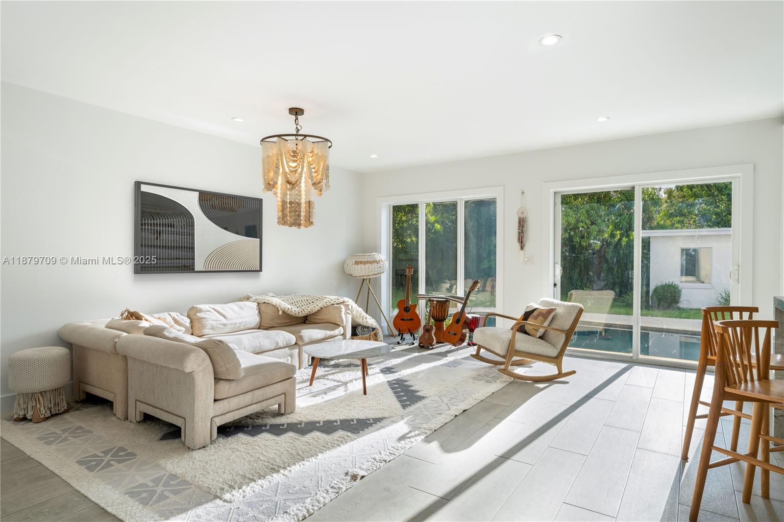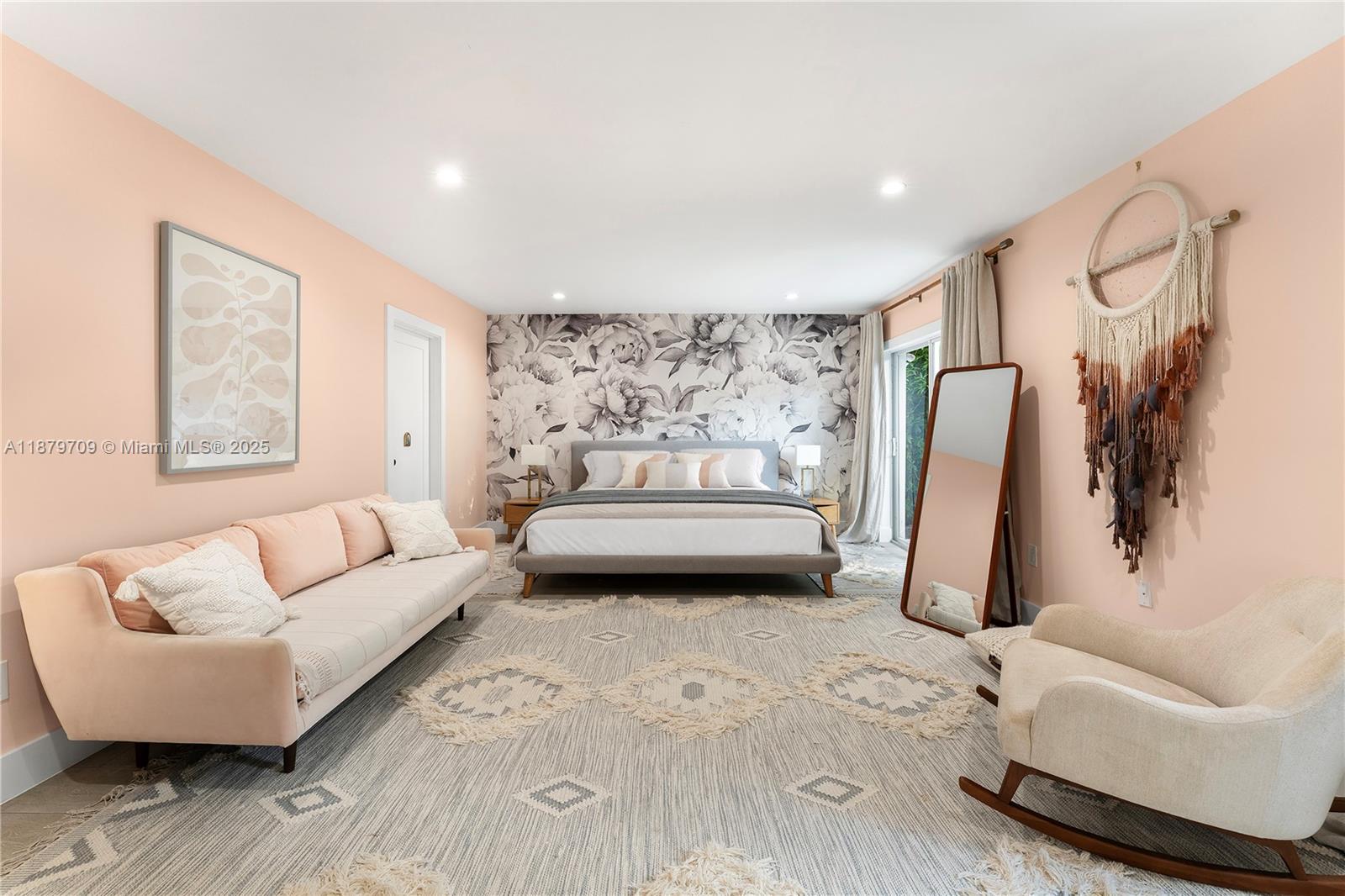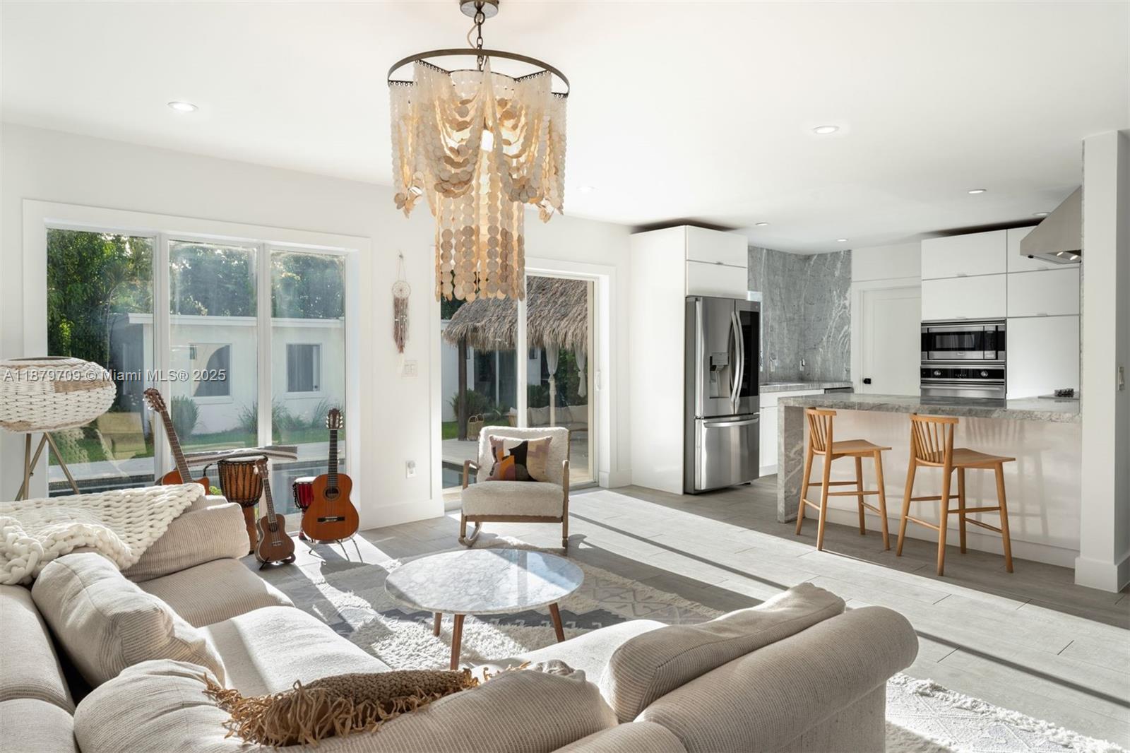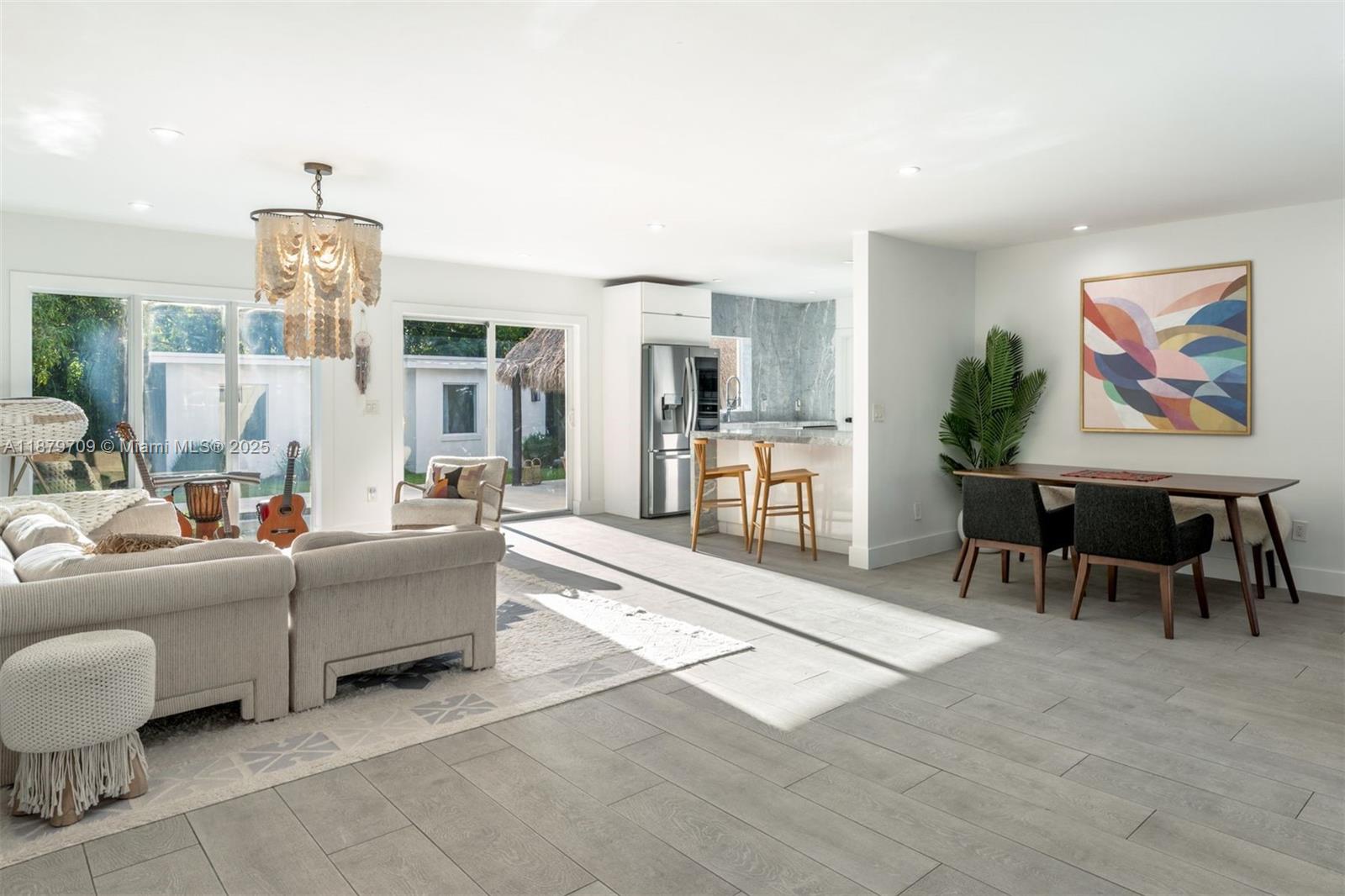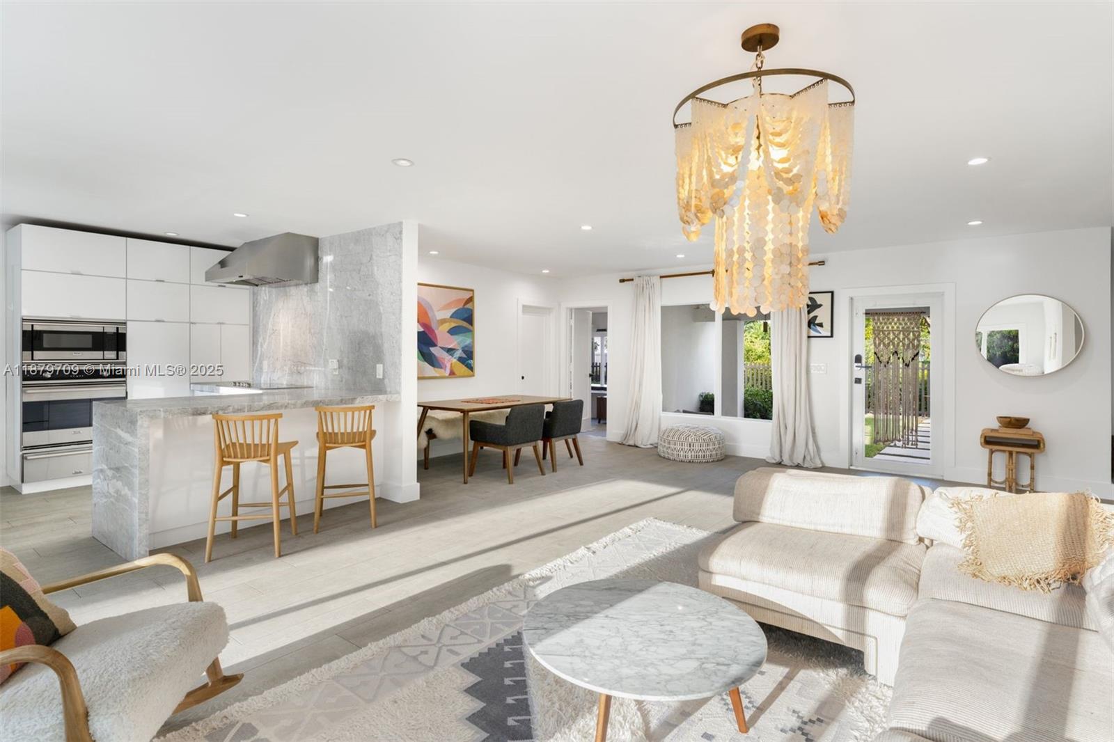 Turn-key gated Mimo estate on an expansive 14,878 SF lot offering exceptional privacy. This 5-bedroom, 4.5-bathroom residence features a thoughtful layout with a dedicated home office and seamless indoor-outdoor flow. The oversized backyard is a sanctuary with mature trees, lush landscaping, and a sparkling pool—perfect for entertaining or unwinding. Enjoy multiple outdoor living areas including a covered patio and private outdoor shower. A detached guest house provides ideal space for visitors or flexible use. Additional features include a covered carport with EV charger, secure gated entry, and abundant afternoon light throughout the home. Designed for modern living and move-in-ready comfort, this residence delivers privacy, functionality, and timeless appeal.