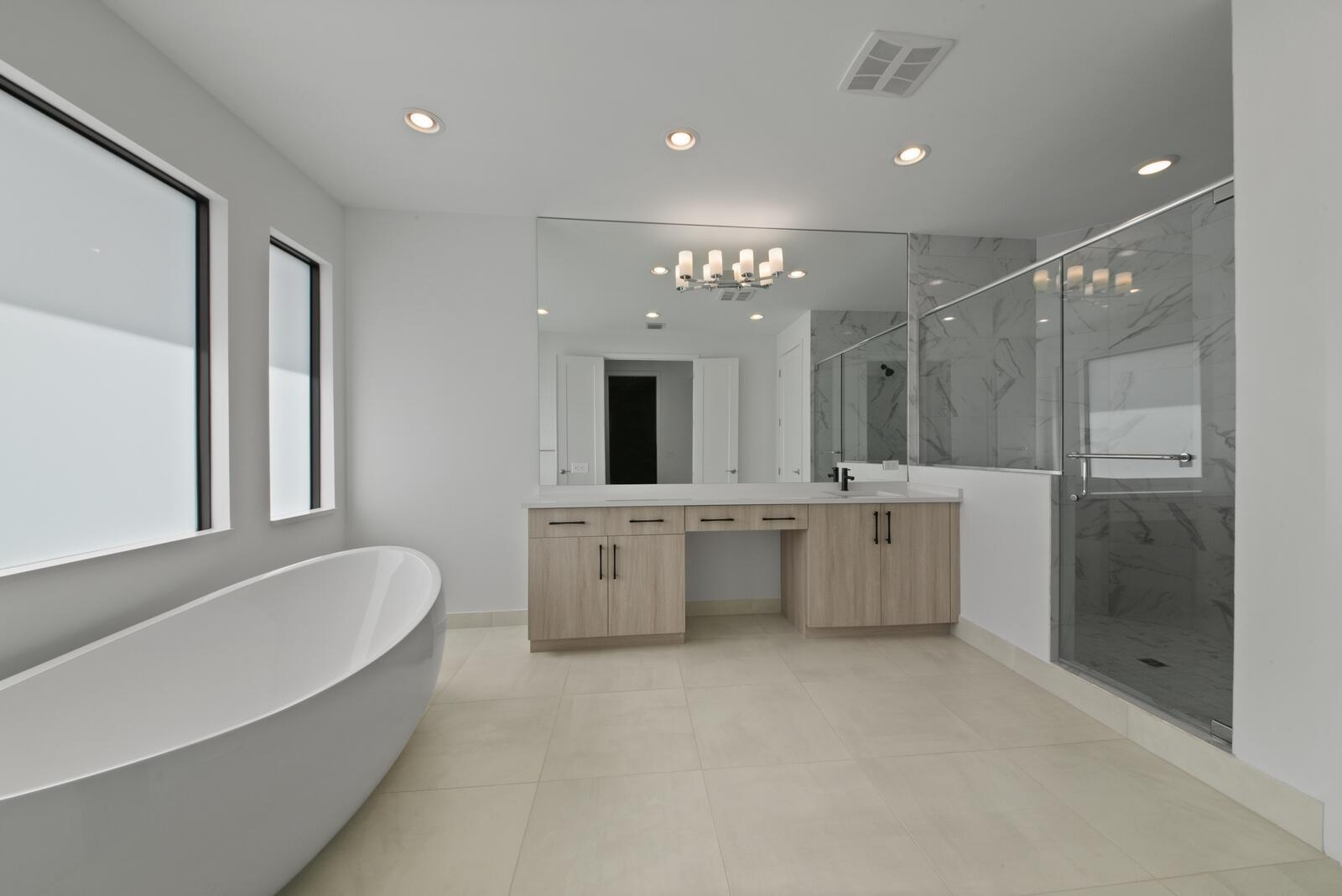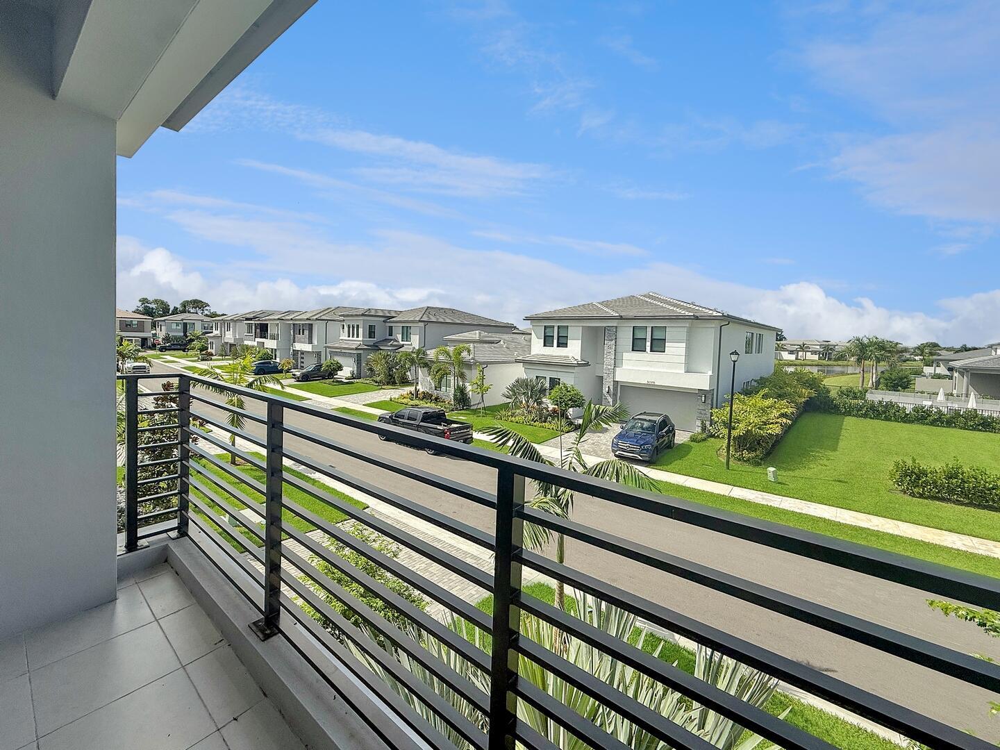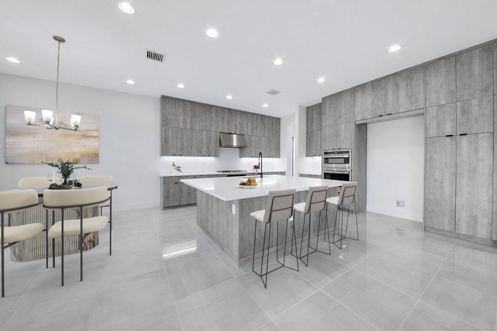 Welcome to this stunning Polynesia model in the sought-after community of Lotus Palm. The foyer leads to a formal living room with soaring two-story ceilings and an elegant formal dining area. The spacious family room flows seamlessly into an open chef's kitchen featuring quartz countertops, a center island with snack bar, stainless steel appliances, double ovens, a 5-burner gas range, and a sunny breakfast nook. The first floor also offers a cabana bath and a guest bedroom with an ensuite bath and walk-in closet. Upstairs, the luxurious primary suite impresses with a double-door entry, coffered ceiling, expansive walk-in closet, and his and hers bathrooms.