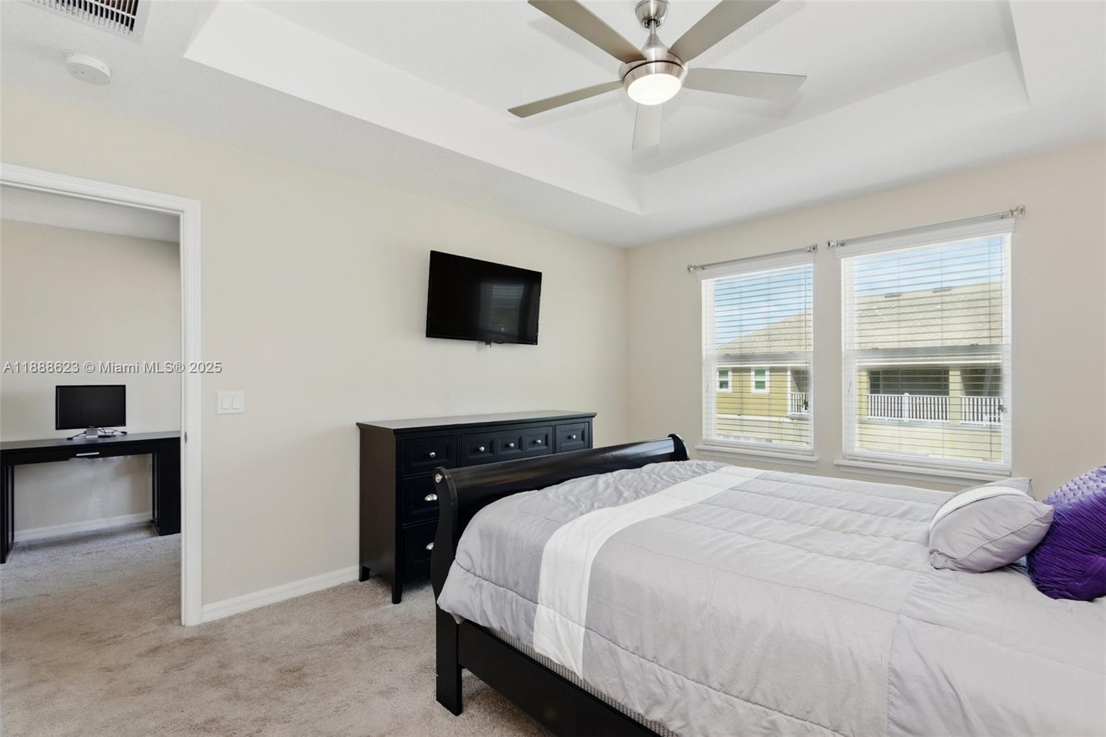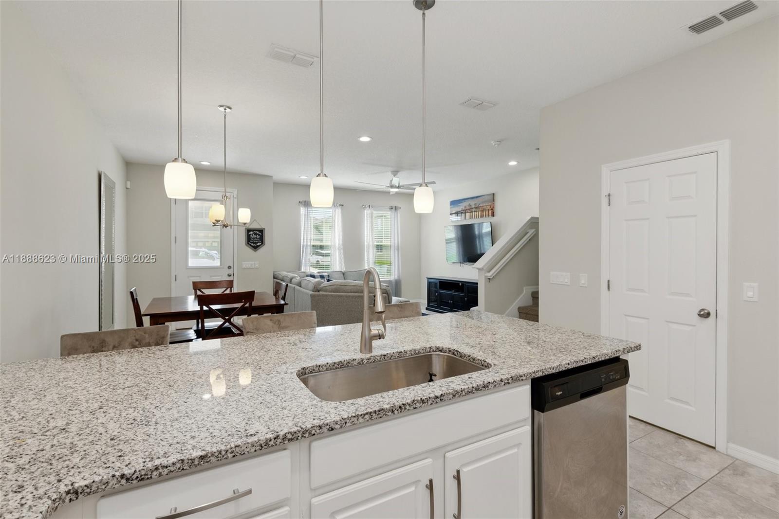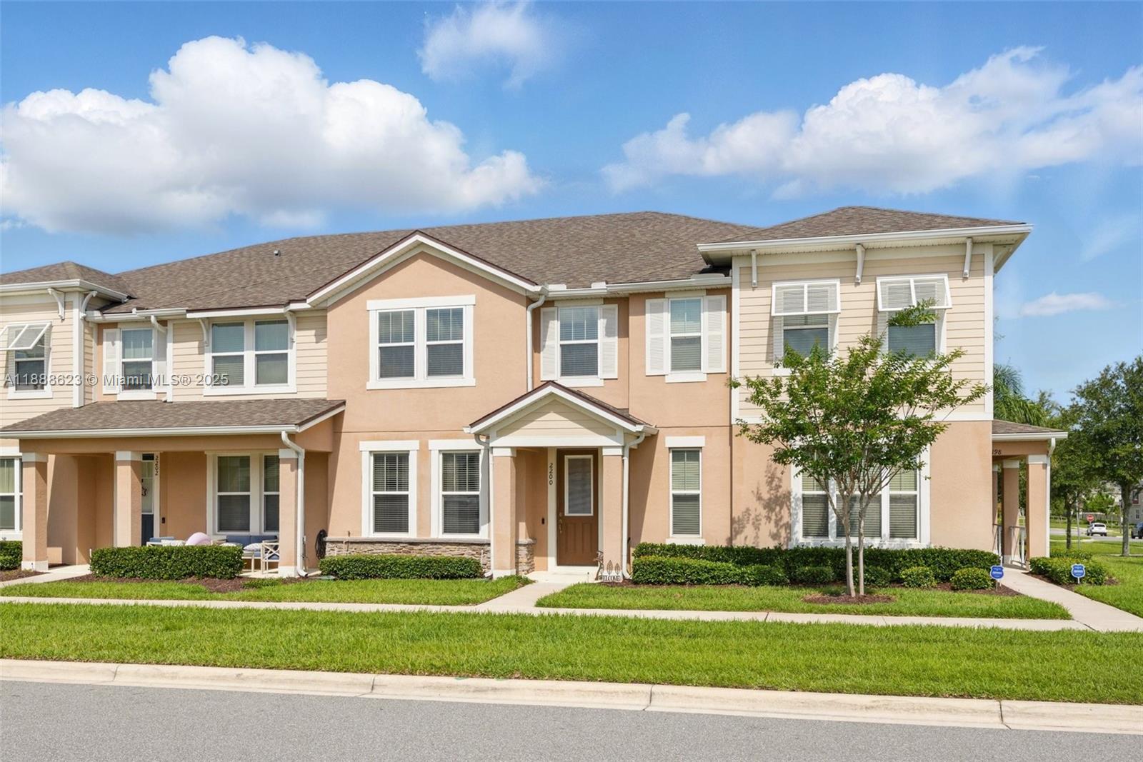 Welcome to this beautifully maintained townhome in Waterbrooke, a gated community offering modern comfort and convenience. Built in 2020, this 3-bedroom, 2.5-bath floor plan features tile flooring downstairs, carpeted upstairs, granite counter tops, raised panel cabinets, stainless-steel appliances, and a spacious pantry. Upstairs includes a loft area and a primary suite with dual vanities, a glass-enclosed shower, and a walk-in closet. Enjoy a covered front porch, private balcony, and 2-car garage. Community amenities include a pool, clubhouse, fitness center, splash pad, dog park, yoga lawn, and walking trails. Located near shopping, dining, Orlando Health, Waterfront Park, and the Florida Turnpike.