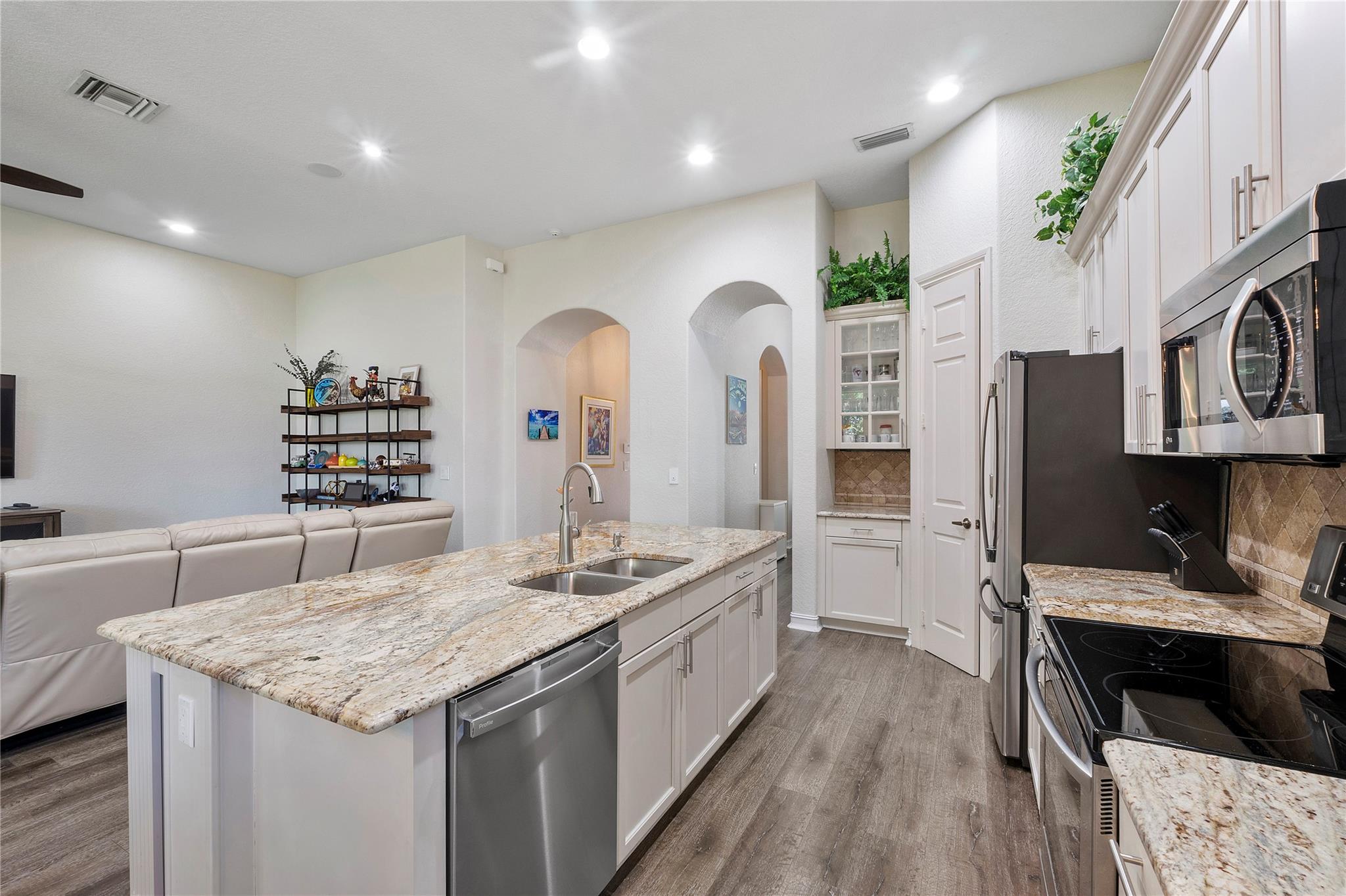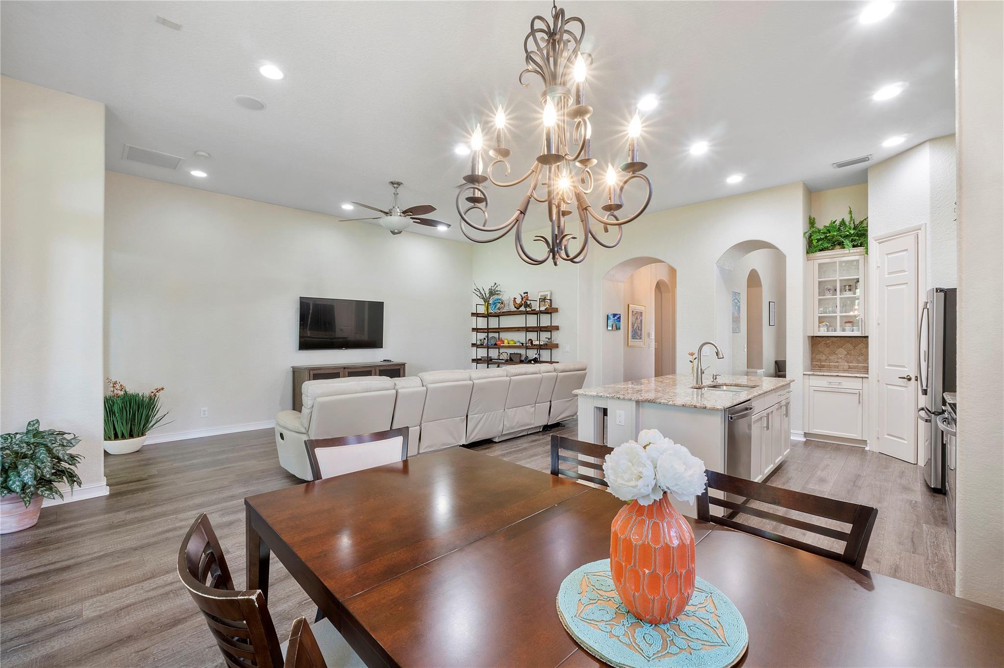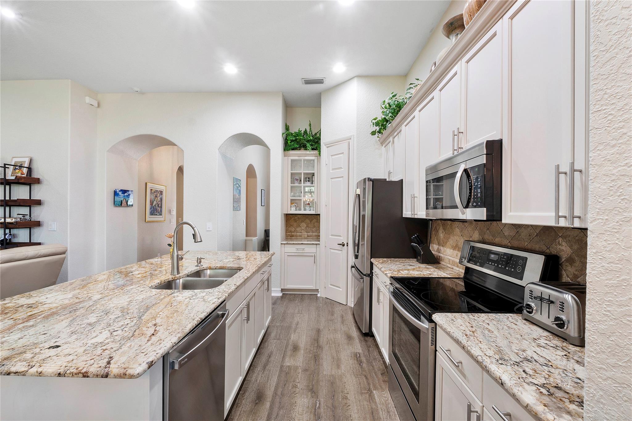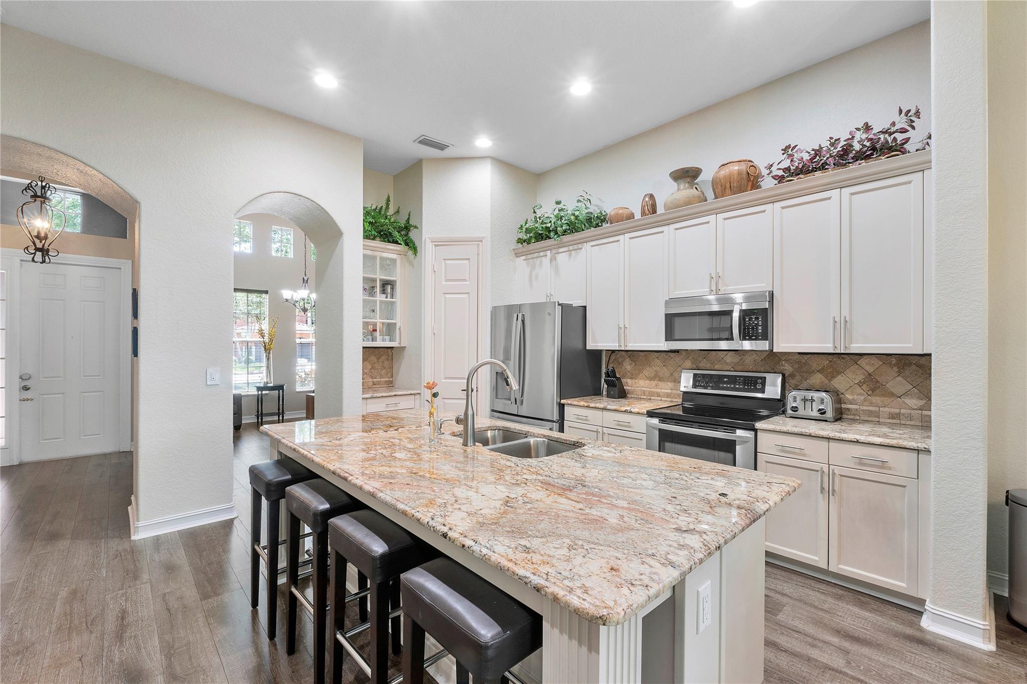 • Интерьер:BreakfastBar, BreakfastArea, DiningArea, SeparateFormalDiningRoom, DualSinks, FrenchDoorsAtriumDoors, FirstFloorEntry, GardenTubRomanTub, Pantry, SplitBedrooms, SeparateShower, WalkInClosets