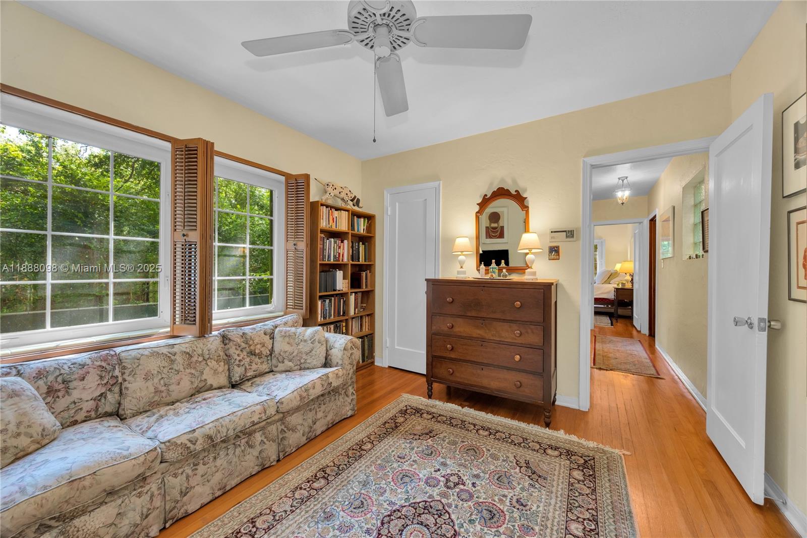 Open kitchen, dining room, split bedrooms, metal roof, circular brick drive, large back patio and carport on a quarter acre with magnificent trees and landscaping. The whimsical kitchen includes: antique leaded glass cabinets, open shelving, honed granite counters, a deep enamel sink in custom cabinet. Impeccably maintained, classic Florida vernacular design: elevated foundation, expansive windows, deep overhangs, screened porch. Metal Roof 2014; AC 2025; Drainfield 2017; newer appliances (2023), Hardwood Floors, gas range, outdoor shower, Nest thermostat and smoke detector, Landscape lighting, Native Plan Network certified yard. Within the boundaries of the Biltmore Heights neighborhood on a quiet non through street- enjoy a vibrant social neighborhood and events like a Holiday Cookie Crawl, an annual dog show, pot luck and so much more. Minutes to downtown South Miami and Coral Gables. Walking distance to UM. Wow!