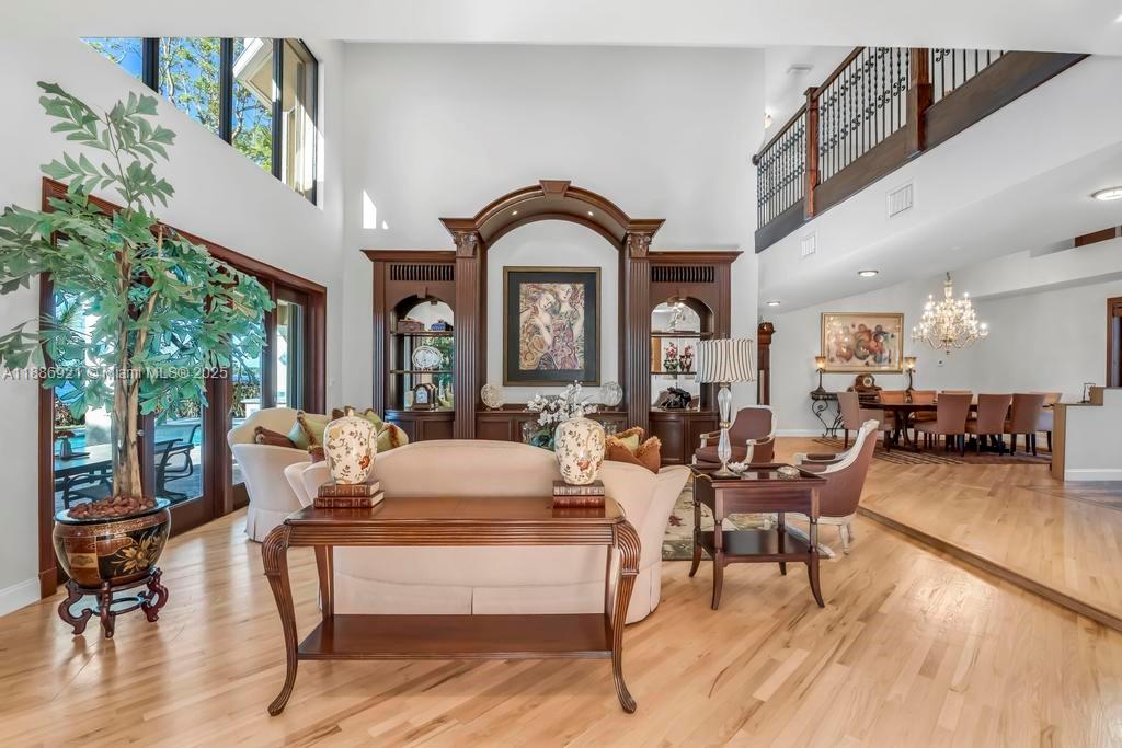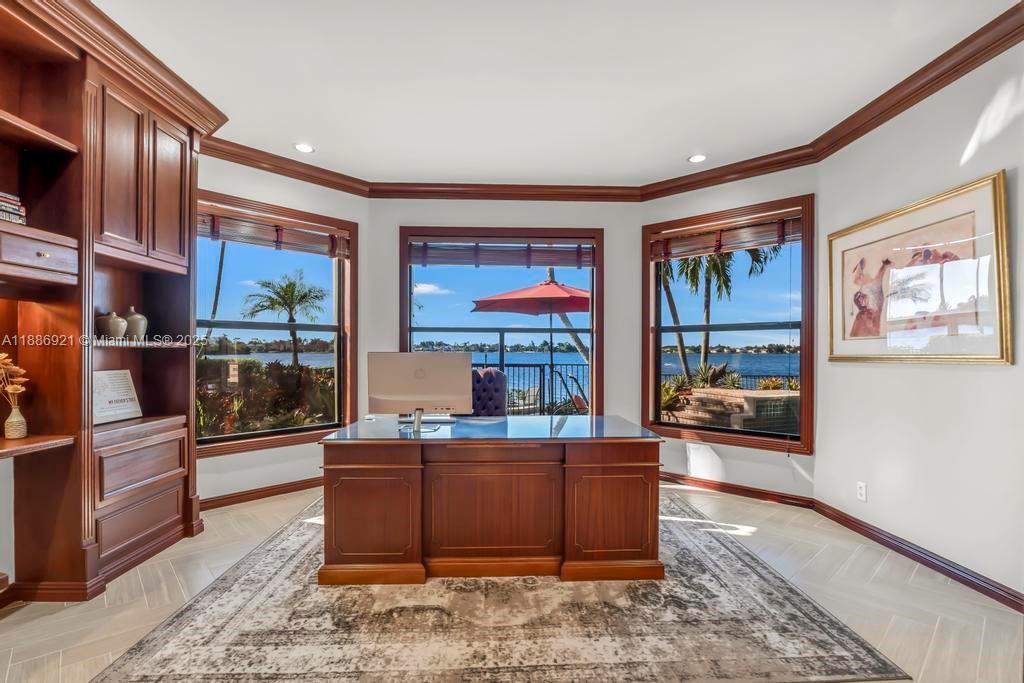 Stunning custom estate 5 bed, office, 5.5 baths, 3 car garage home in the desirable Sunset Isles of Silver Lakes with breathtaking lakefront views. The outdoor oasis features a resort-style pool, summer kitchen, covered patio, & balcony for entertaining. Inside, the main level offers a guest bedroom with full bath, private office, and cabana bath. Rich hardwood floors and expansive windows fill the home with natural light and serene water views. Gourmet kitchen with tons of storage is a chef's delight! A grand spiral staircase leads to the luxurious primary suite retreat with spa-like bath, plus three spacious guest bedrooms and two additional full baths, all bedrooms have custom closets. A rare opportunity to own a waterfront masterpiece in Silver Lakes. Metal tile roof 50 year warranty!