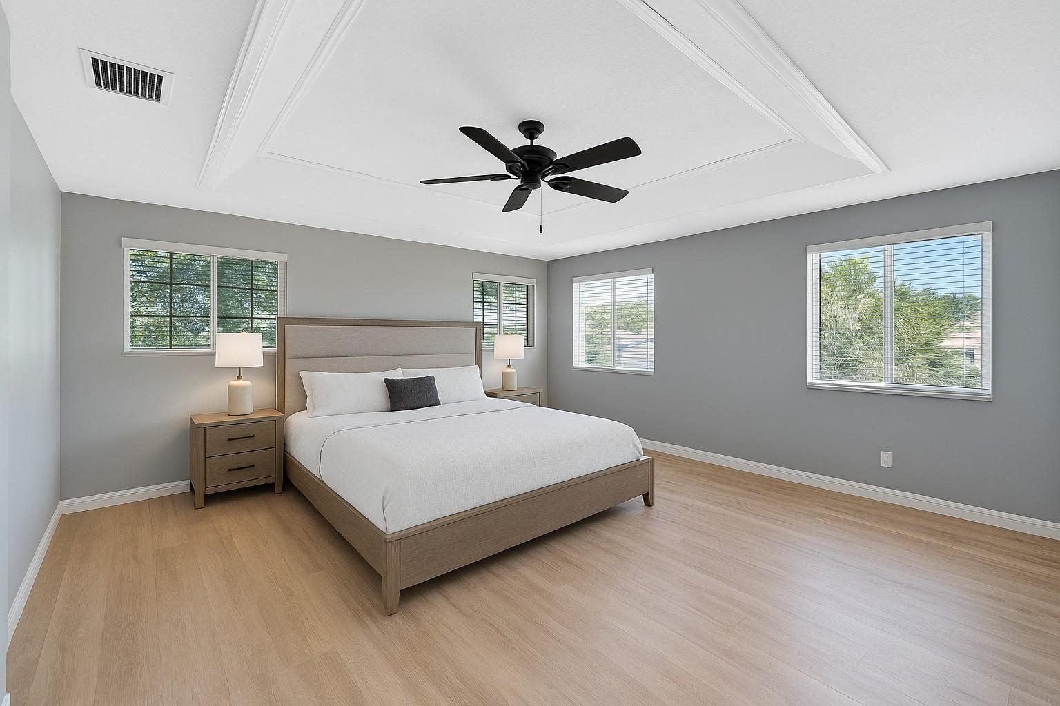 Beautiful 4BR/2.5BA home with 1-car garage in the highly desirable Scarborough community! Primary suite offers dual large walk-in closets & extra windows for added natural light. Laundry upstairs near bedrooms. Features partial impact windows/doors, screened tile patio, oversized backyard & serene lake views. Roof, A/C & water heater replaced in 2016. One of the largest townhome lots in the community at 6,605 sq ft! Provides the comfort of a single-family home feel with the convenience of townhome ownership. Enjoy the convenience of an added parking space by the driveway. Low HOA includes lawn care & exterior painting (scheduled for early 2026). Community amenities: pool, clubhouse, playground, basketball & tennis courts. Home can be rented with no waiting period after purchasing.