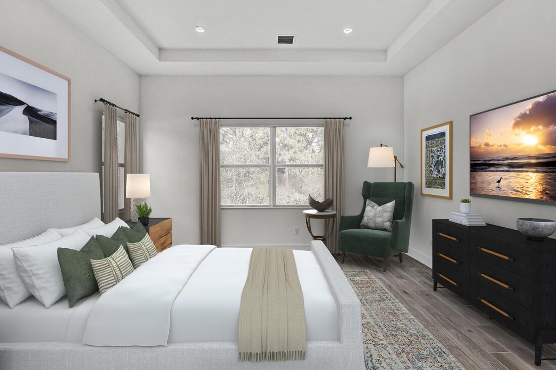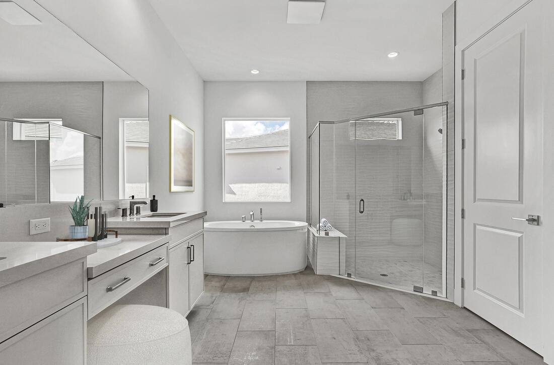 Welcome to Tesoro Club--an exclusive guard-gated community where luxury living meets resort-style amenities and championship golf. This beautifully crafted Toll Brothers residence features the sought-after Gordon floor plan with 3 bedrooms and 3 baths, offering a perfect blend of elegance, functionality, and move-in-ready convenience.Step inside to an open-concept design enhanced by tray ceilings, impact-rated windows, and stylish wood-look porcelain tile flooring throughout. The gourmet kitchen serves as the centerpiece of the home, complete with a 5-burner gas cooktop, quartz countertops, stainless steel appliances, and ample space for both cooking and entertaining. Virtual Staging is for illustrative purposes only.