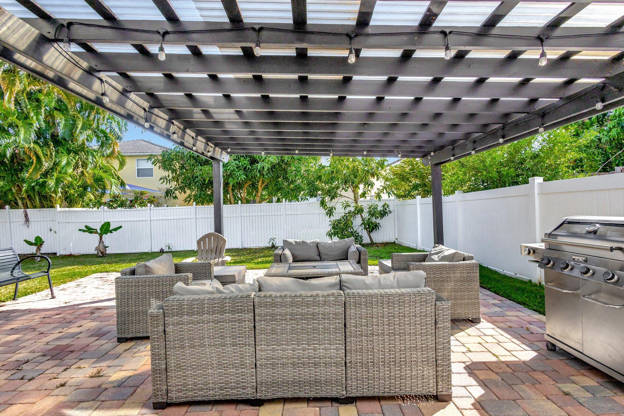 Welcome to OLYMPIA OF WELLINGTON, one of South Florida's most PRESTIGIOUS GATED COMMUNITIES. This stunning 5-bedroom, 2.5-bathroom residence has been completely renovated and meticulously maintained, offering a perfect blend of luxury, comfort, and functionality. Featuring HURRICANE IMPACT WINDOWS & DOORS, soaring high ceilings, and a PREMIUM WHOLE-HOME WATER FILTRATION SYSTEM, including reverse osmosis in the kitchen every detail has been thoughtfully designed for quality and convenience. The home's BRIGHT, OPEN AND AIRY layout is ideal for both relaxation and entertaining, with a beautiful backyard featuring a custom pergola and Italian string lights PERFECT FOR ENTERTAINING.