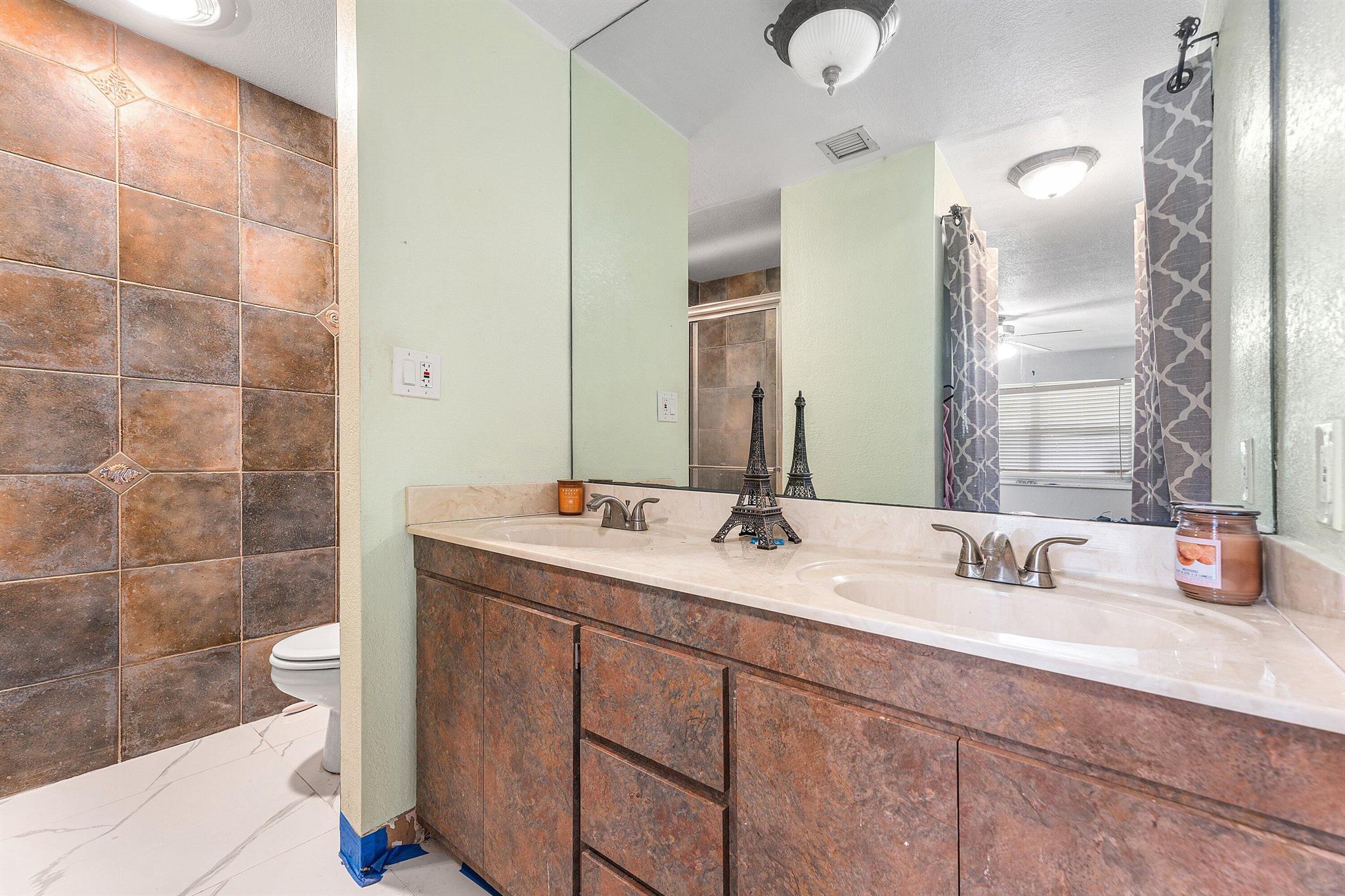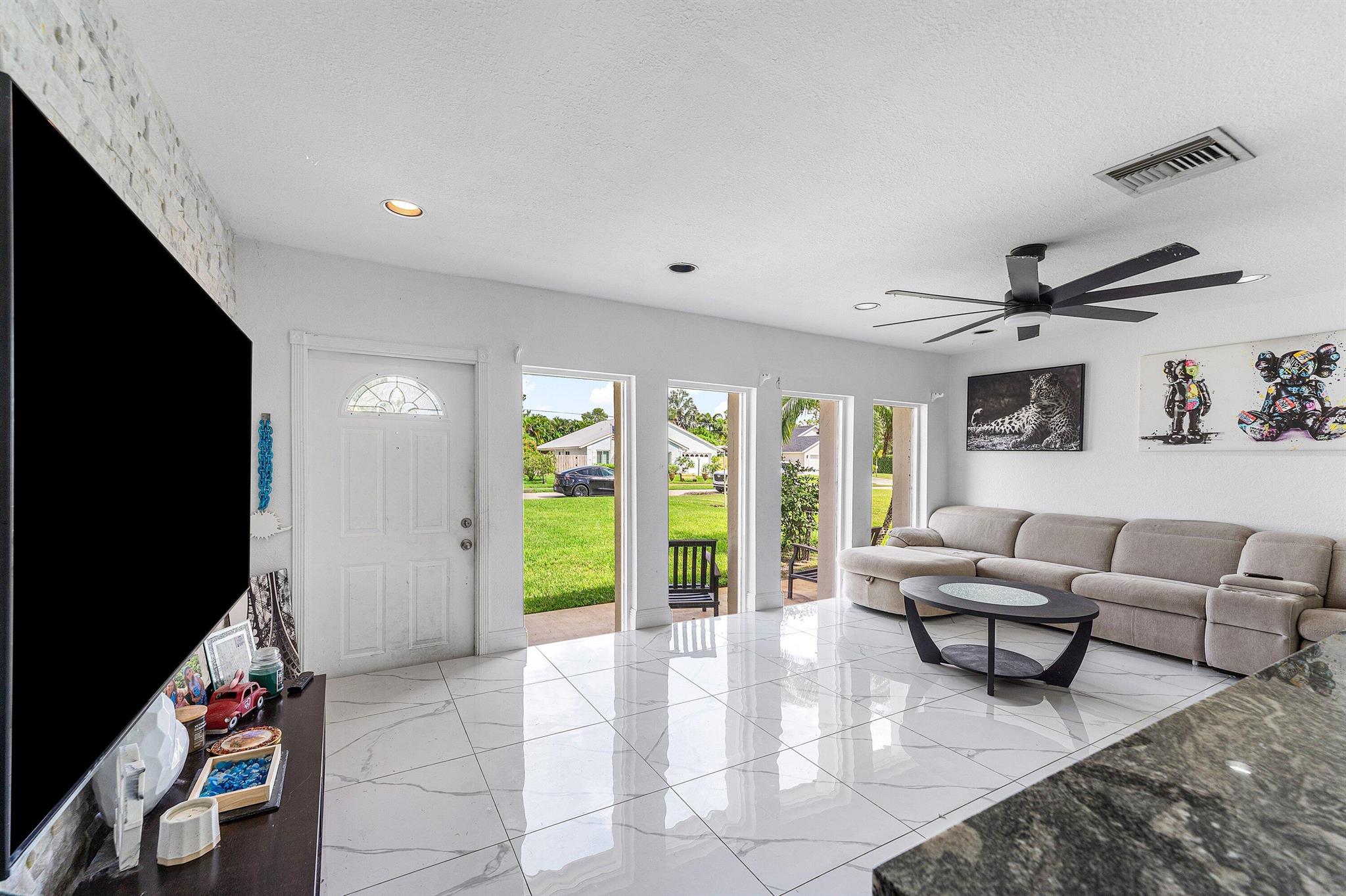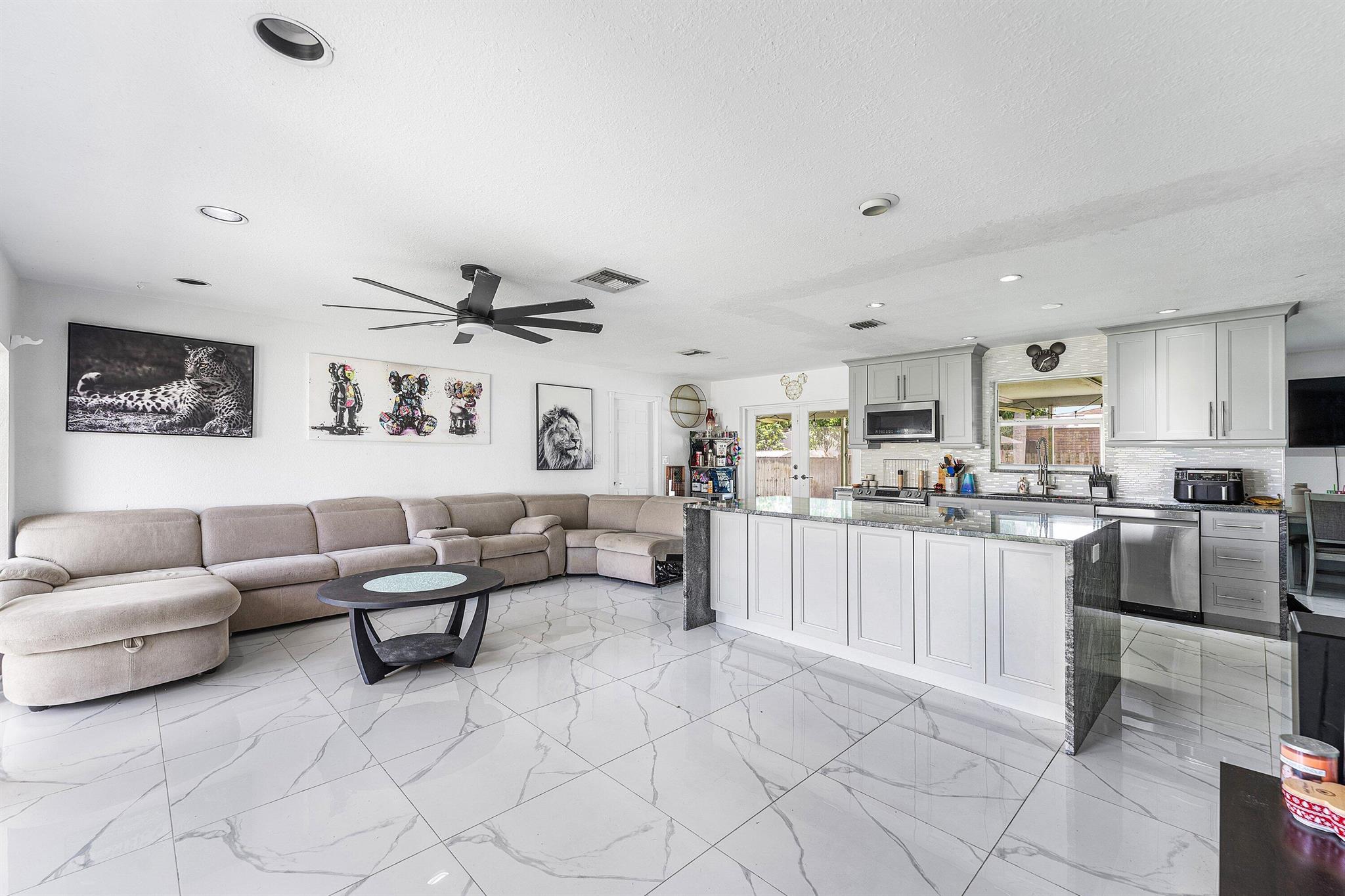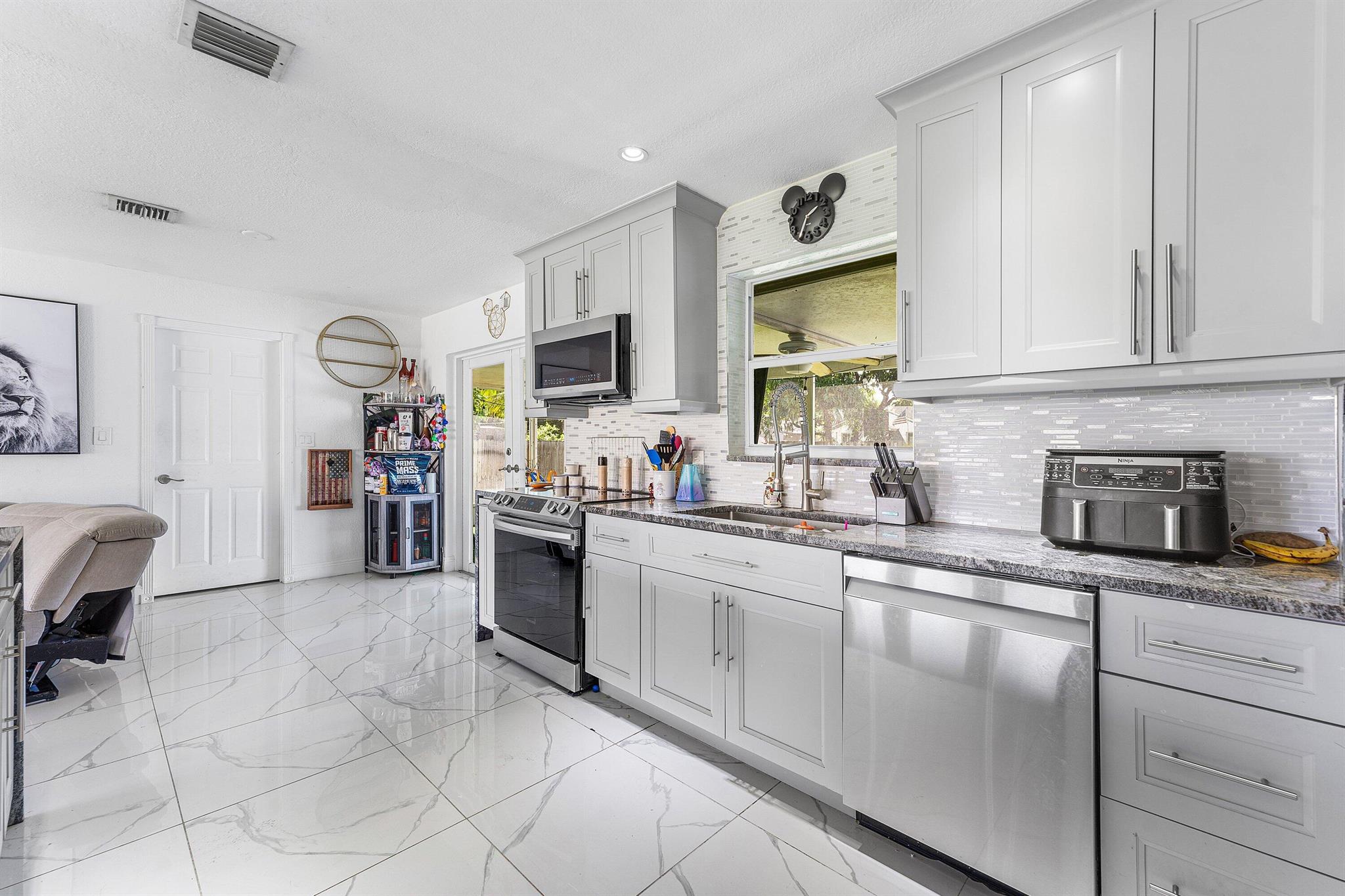 Welcome home! This 4 bedroom, 2 bathroom home with a 2 car garage has everything you've been looking for. BRAND NEW ROOF! Great open floor plan with new modern tile throughout. The kitchen is a showstopper with an island with waterfall granite countertops, and stainless steel appliances and newer cabinets. The bedrooms are spacious with plenty of storage, and the guest bathroom has been completely updated. You'll love the private, fenced backyard with plenty of room for a pool, plus space to park a boat or RV. No HOA means more freedom to make it your own! Other highlights include a large screened in patio and tons of natural light. Located near great schools, highways, and shopping.