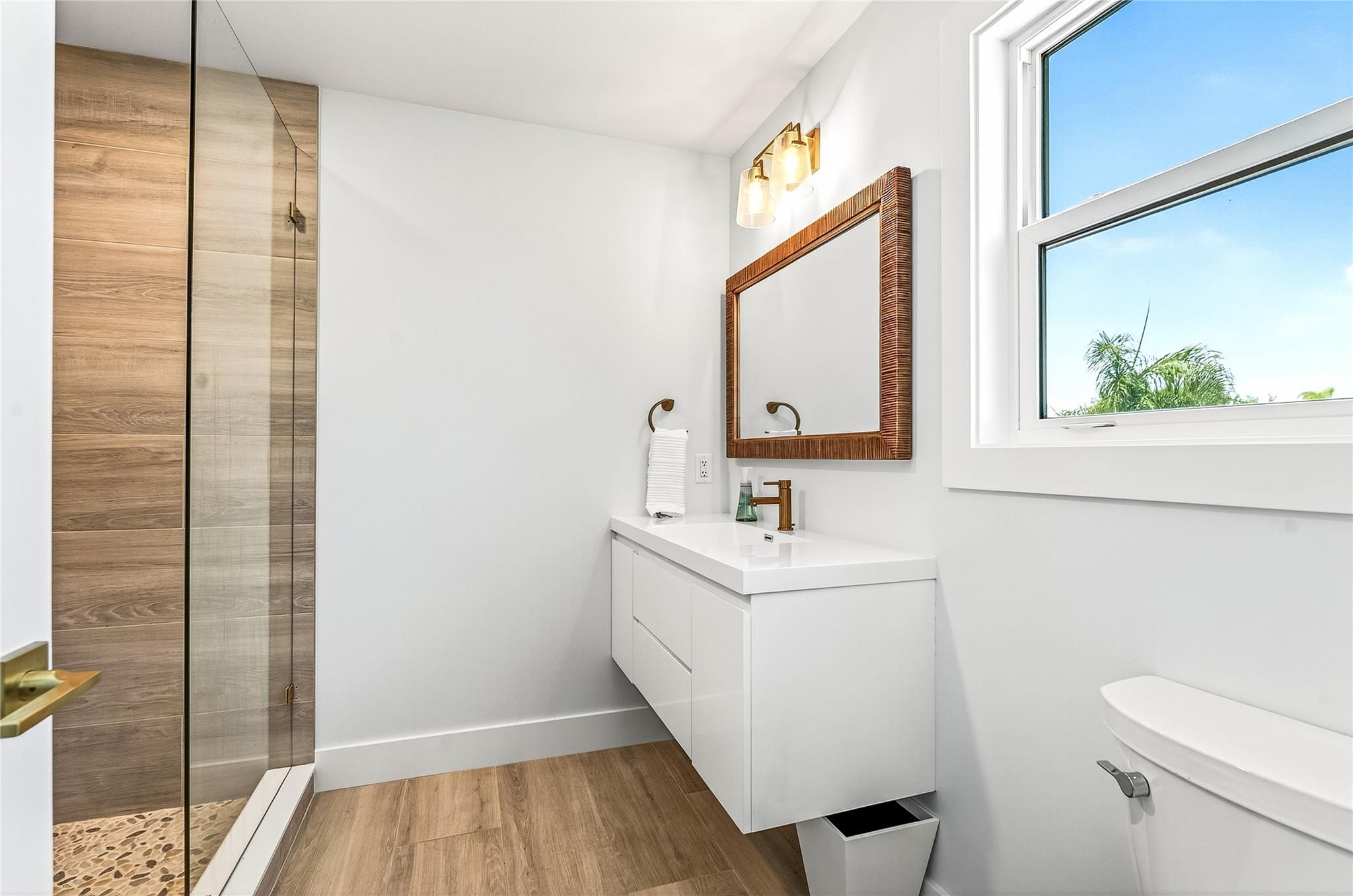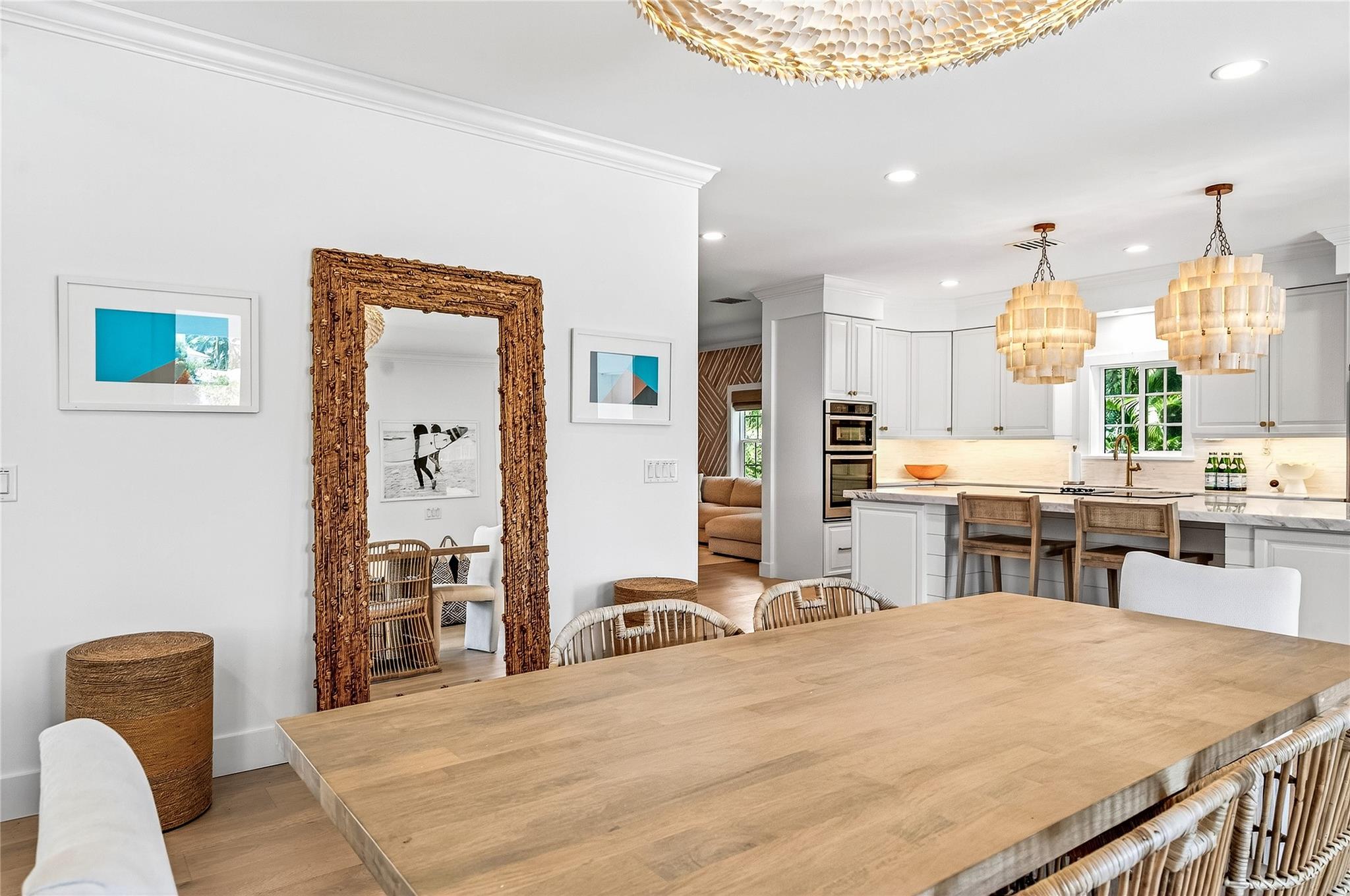 Stunning riverfront home completely reimagined with designer finishes. Relaxed coastal living with refined island-inspired style. Crisp white architectural lines, fresh coastal hues, open-concept light-filled interiors, natural textures, white oak flooring, custom lighting and millwork, elevated yet laid-back feel throughout every room. Multiple living spaces, large island kitchen, indoor/outdoor dining, 1st floor primary suite overlooking the pool, walk-in closets, option for 5th bedroom, all impact glass, new tropical landscaping, whole house water softening system, oversized 2car garage.