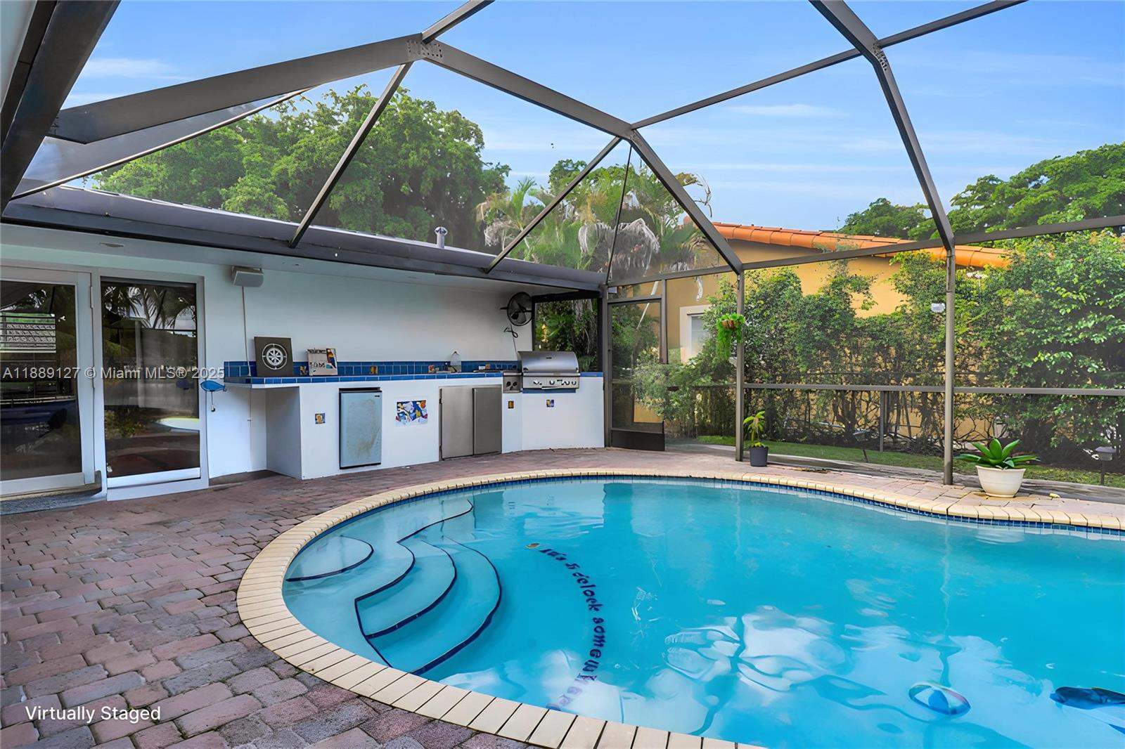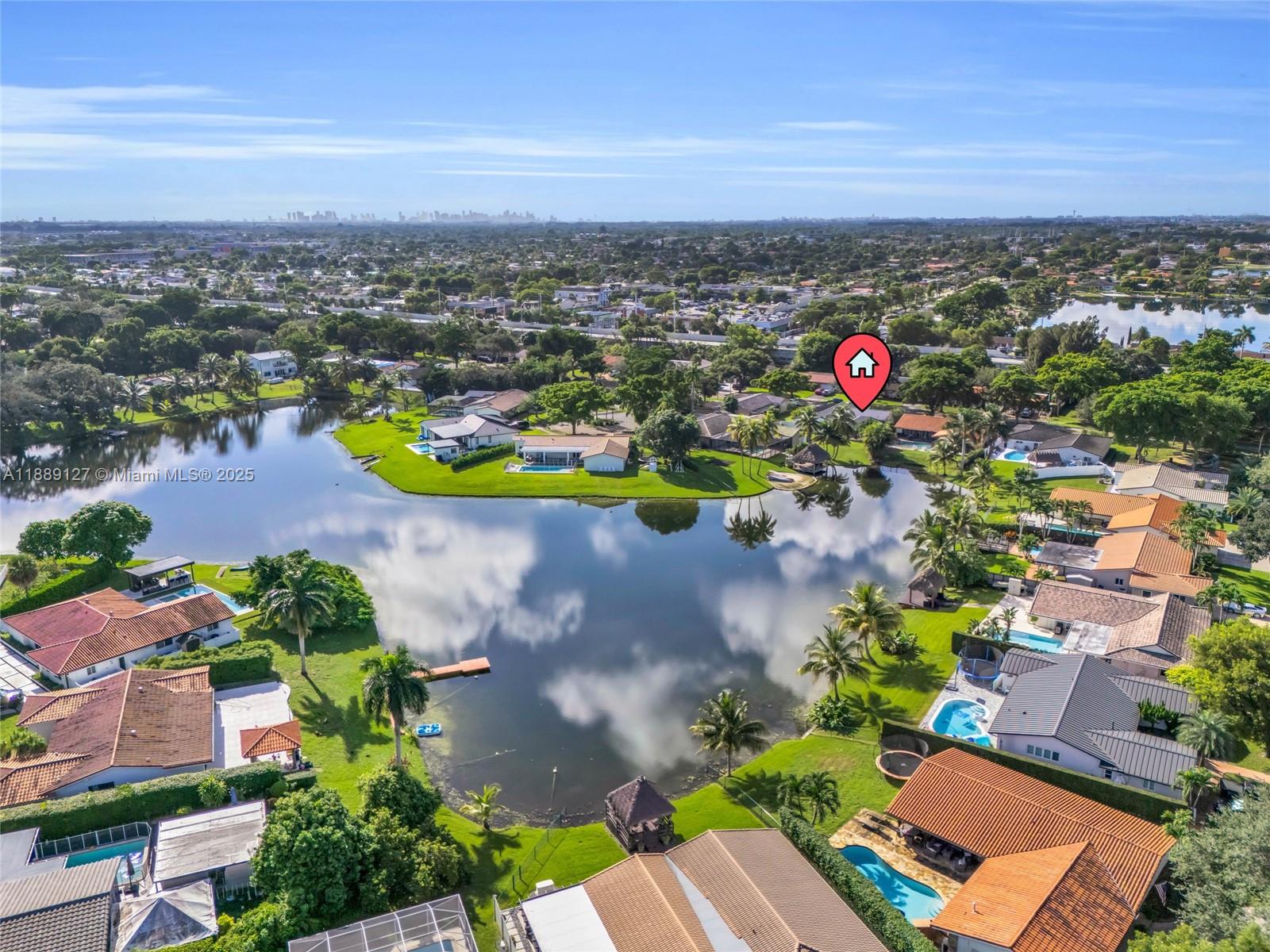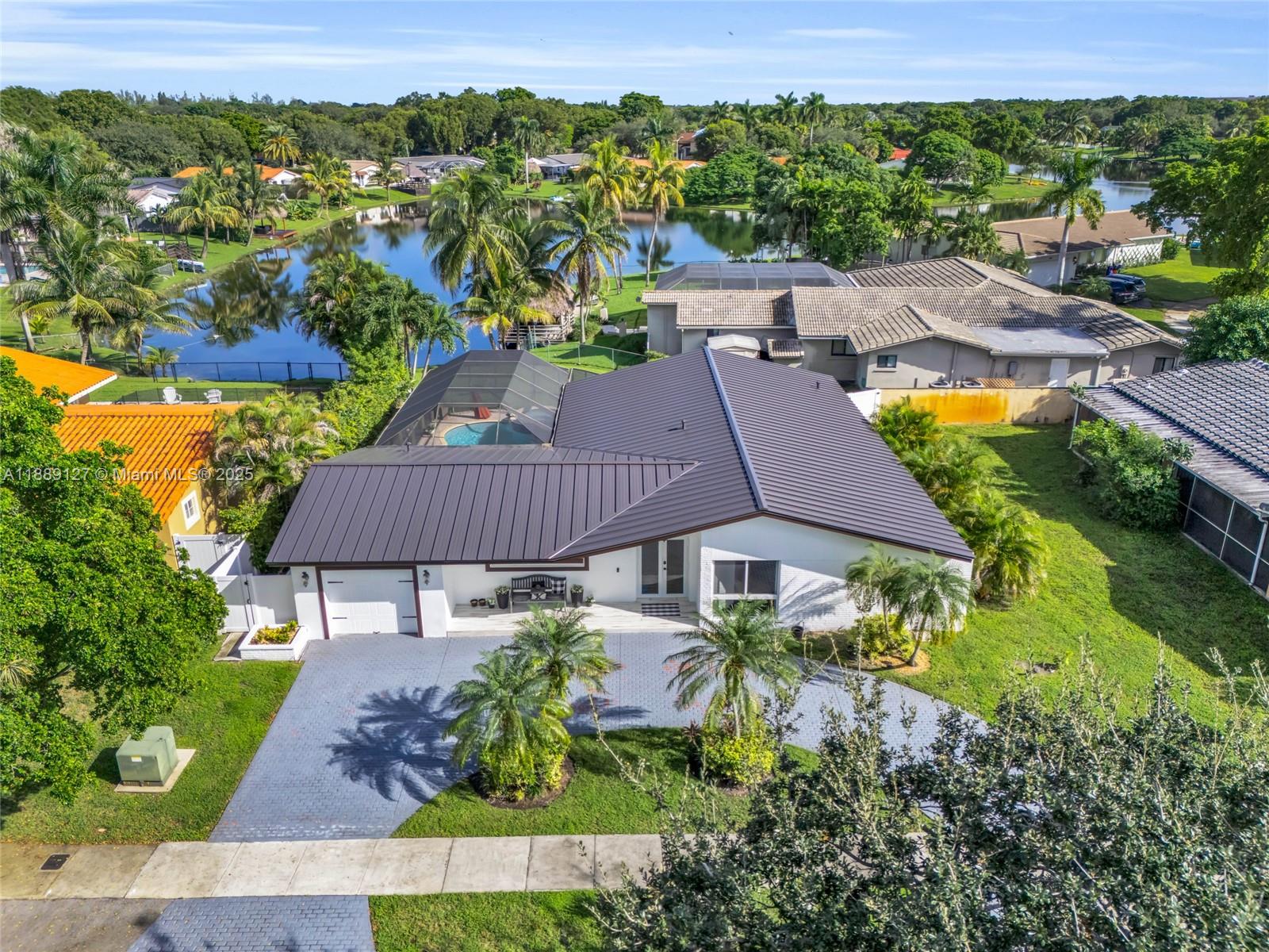 Welcome to Lakefront Living in Miami Lakes! This beautifully updated 4-bedroom, 2-bathroom home sits on a private 10,000+ sq. ft. lakefront lot with breathtaking views of Lake Adelle. Featuring a custom wood kitchen with granite countertops and stainless-steel appliances, updated baths, a new metal roof, and impact windows. Enjoy year-round comfort with a natural gas standby generator, tankless water heater, and pool with gas heater. Outdoor living is at its best with a screened patio, summer kitchen with BBQ, and a spacious backyard overlooking the water. Additional highlights include a one-car garage and a large circular driveway. This is a lakefront lifestyle at its finest — a rare opportunity in highly sought-after Miami Lakes. A must-see home that won’t last!