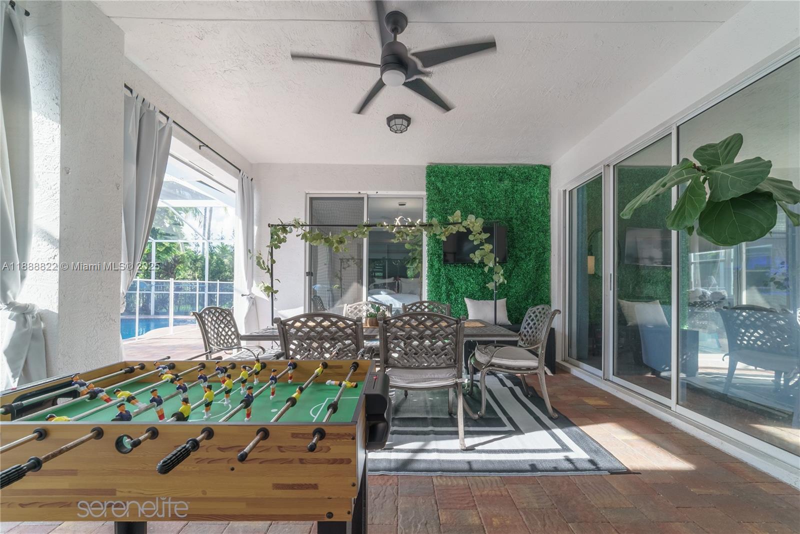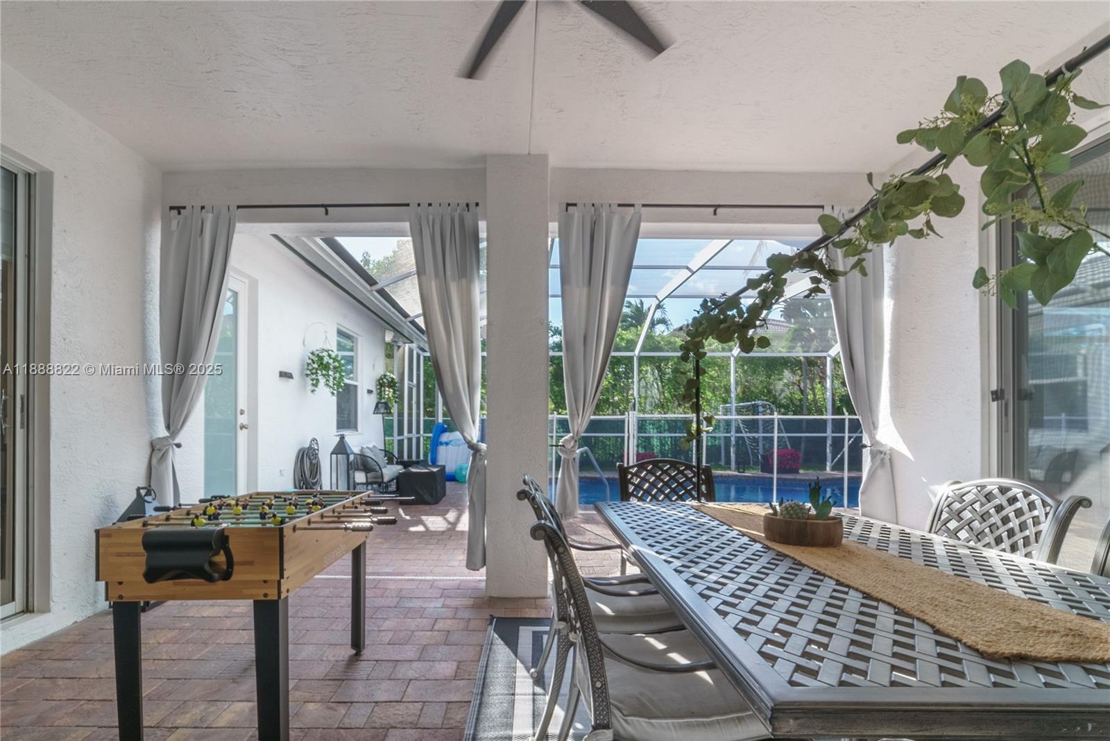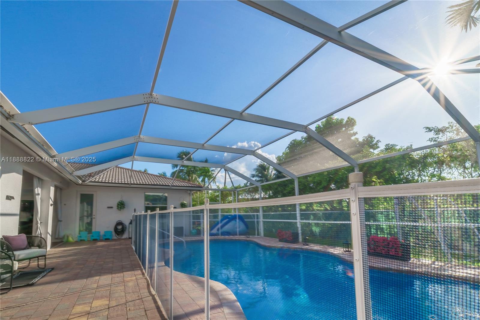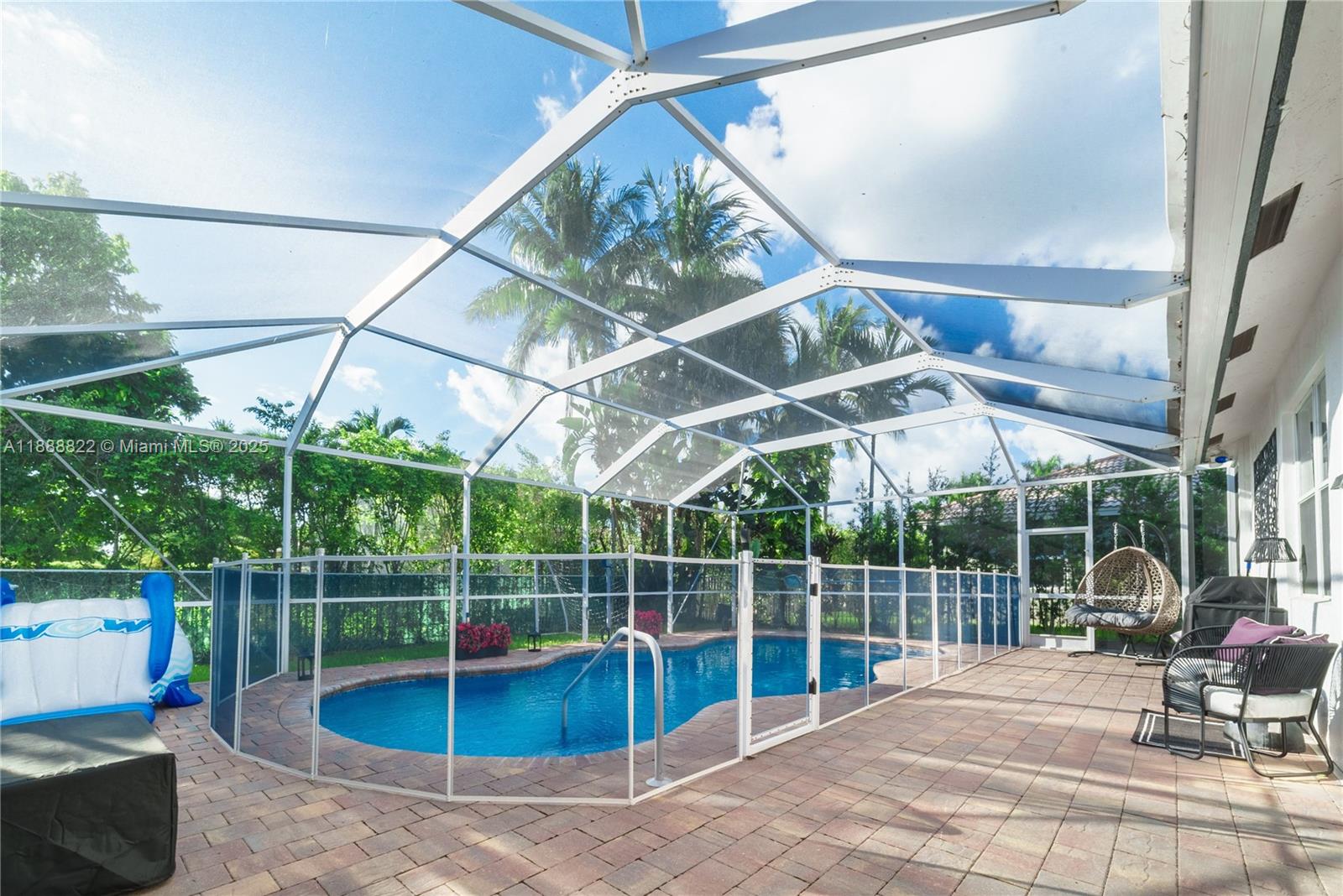 Welcome to Country Glen, one of Cooper City’s most exclusive gated communities. This elegant one-story residence features 5 bedrooms, 3.5 bathrooms, and a 3-car garage. The open floor plan is ideal for families and entertaining, complemented by a lush landscaped yard, screened-in paved patio, and sparkling heated saltwater pool. The elegant primary suite showcases a private sitting area and expansive closets, complemented by rich laminate wood flooring throughout the home and beautifully finished tile in the bathrooms. Community amenities include 24/7 security, parks, tennis, and basketball courts. Top-rated public and private schools, shopping, and parks are nearby, with houses of worship within walking distance. Move-in ready for its new owners.