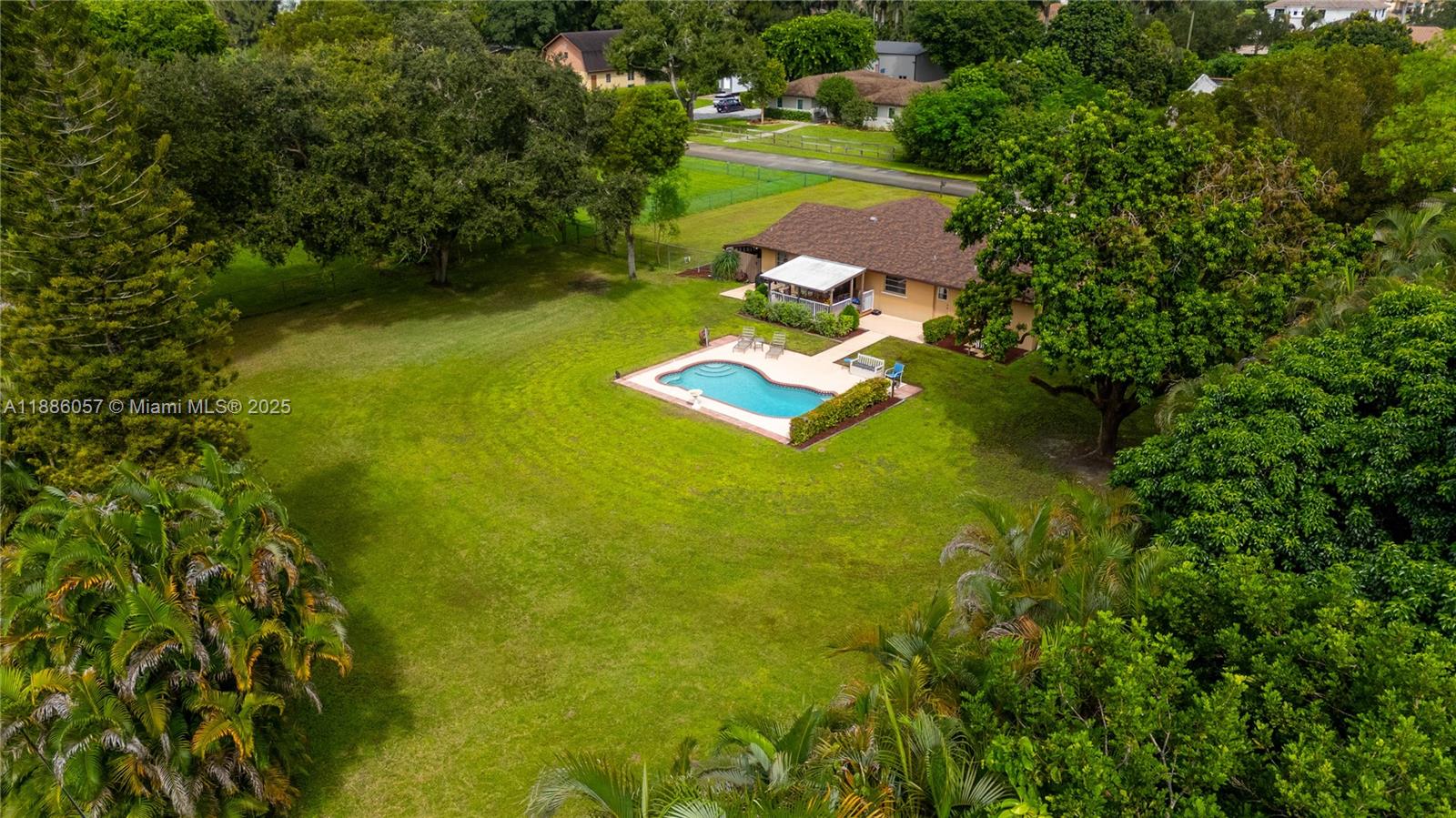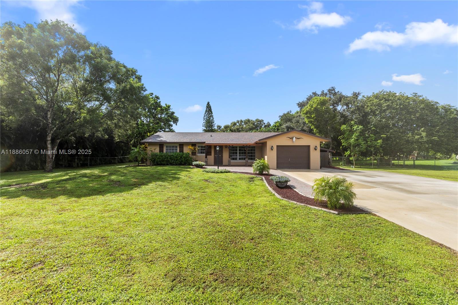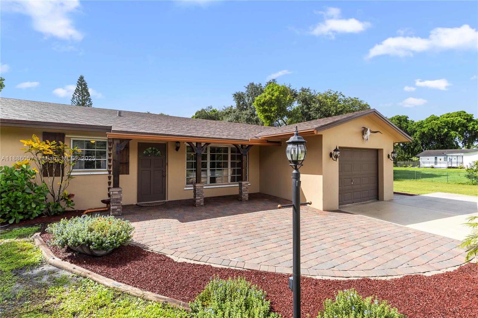 Rustic charm meets modern comfort in this well maintained Davie gem on a full acre with NO HOA. Room for horses, boats, or RVs! Inside features an original stone wall, wood floors, and new laminate in 2 bedrooms. The kitchen offers classic wooden cabinets, new flooring, and space for dining, plus a cabana bath with backyard access. Major updates: new roof (2023), A/C (2016), hurricane protection, well pump (2020), pool pump (2020), and full-house generator hook-up. Outdoors enjoy a sparkling pool, spacious yard, and large shed with electricity. 1-car garage + driveway for 8 vehicles. Much Much More. Priced to sell—A MUST SEE!