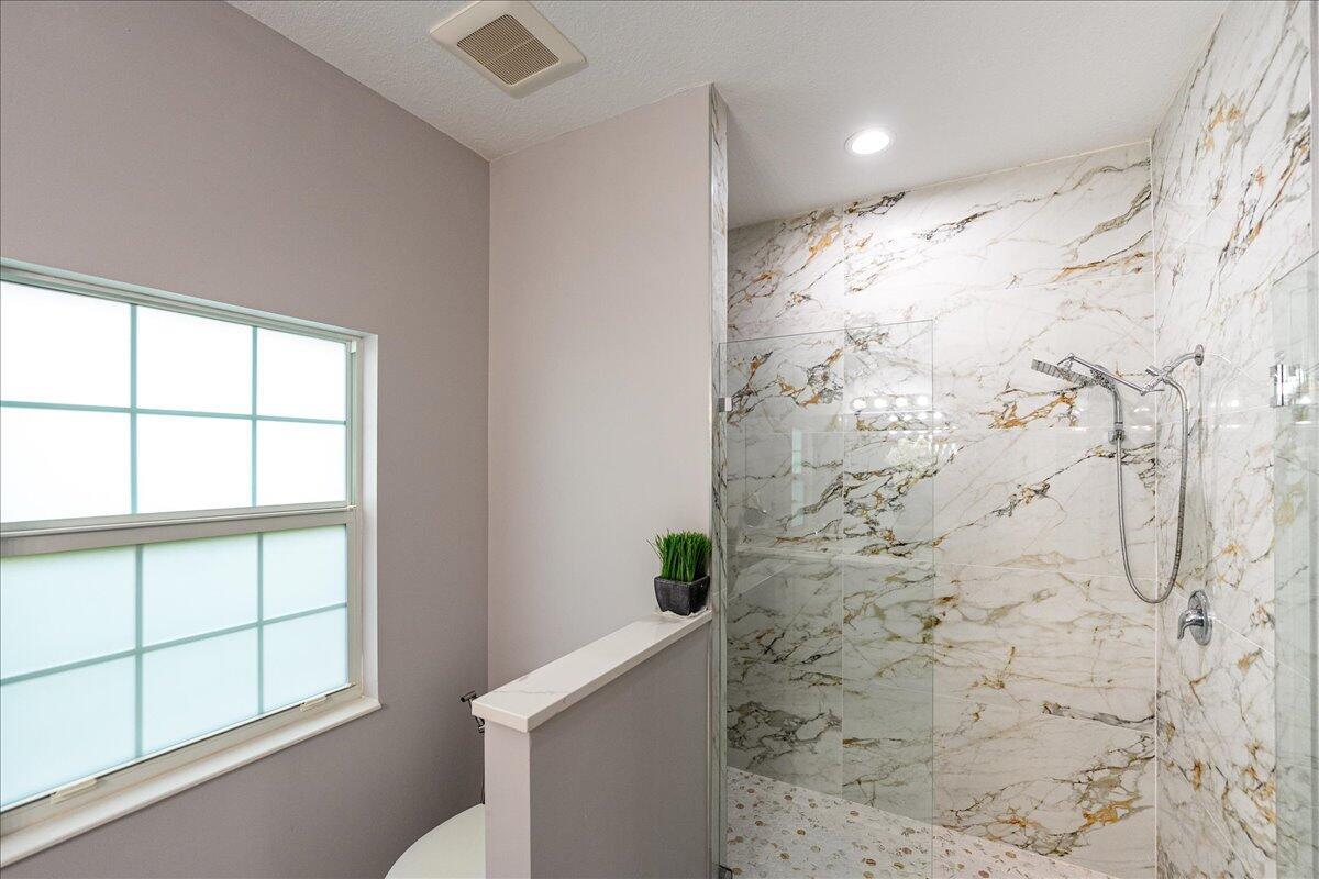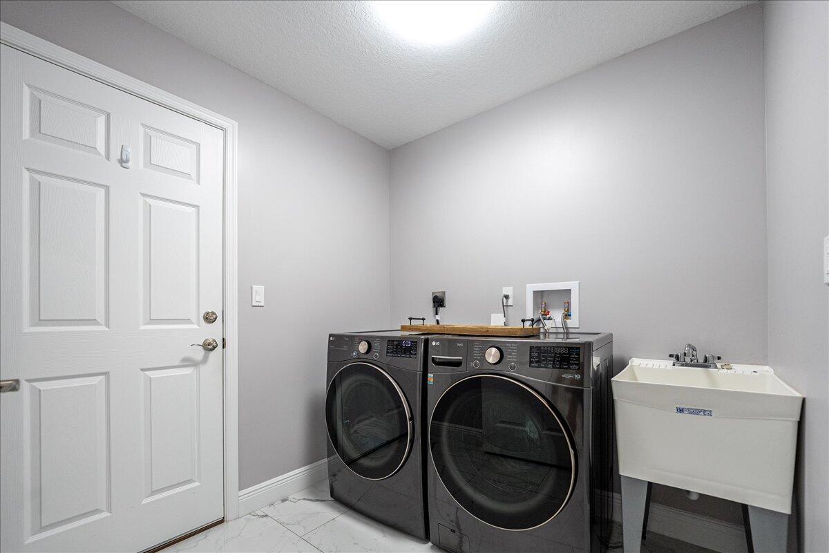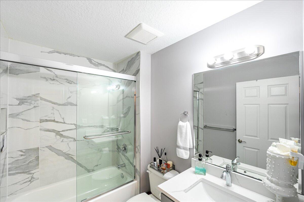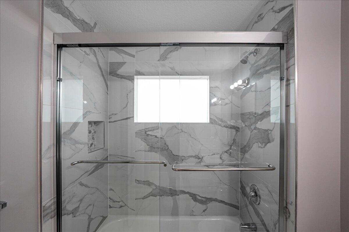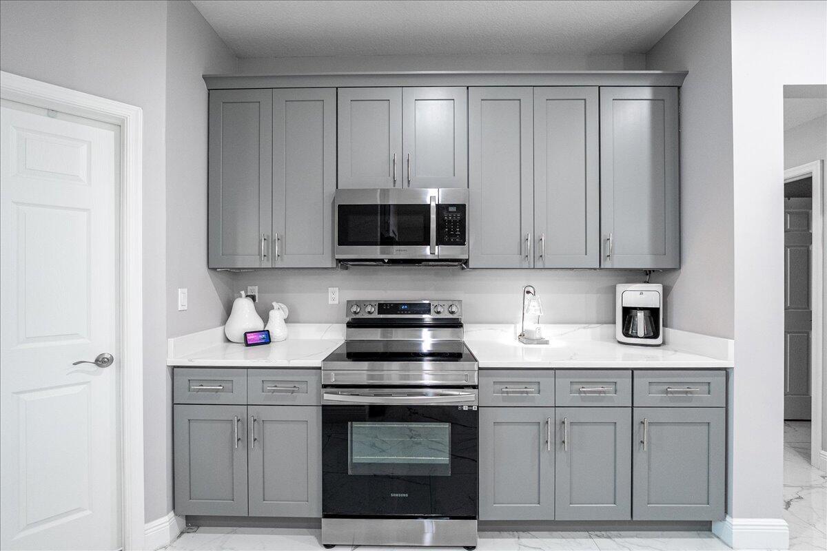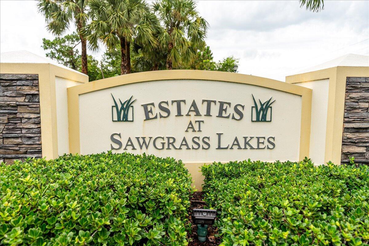 Welcome to the Estates at Sawgrass Lakes, one of Port St. Lucie's most desirable lakefront communities--where wide water views, superior craftsmanship, and low HOA fees combine to create a rare blend of elegance and value.This immaculate 2022 home showcases premium finishes and thoughtful upgrades throughout. Inside, enjoy 24'' 48'' porcelain tile flooring installed over PROFLEX MAXIM SIM-40 sound-control and crack-isolation underlayment, providing lasting durability and quiet luxury.The kitchen features 42'' soft-close gray shaker cabinetry, quartz countertops, and stainless-steel appliances, while the bathrooms echo the same design sophistication with full-height 24'' 48'' porcelain wall tile and matching quartz vanities.The primary suite offers electric motorized