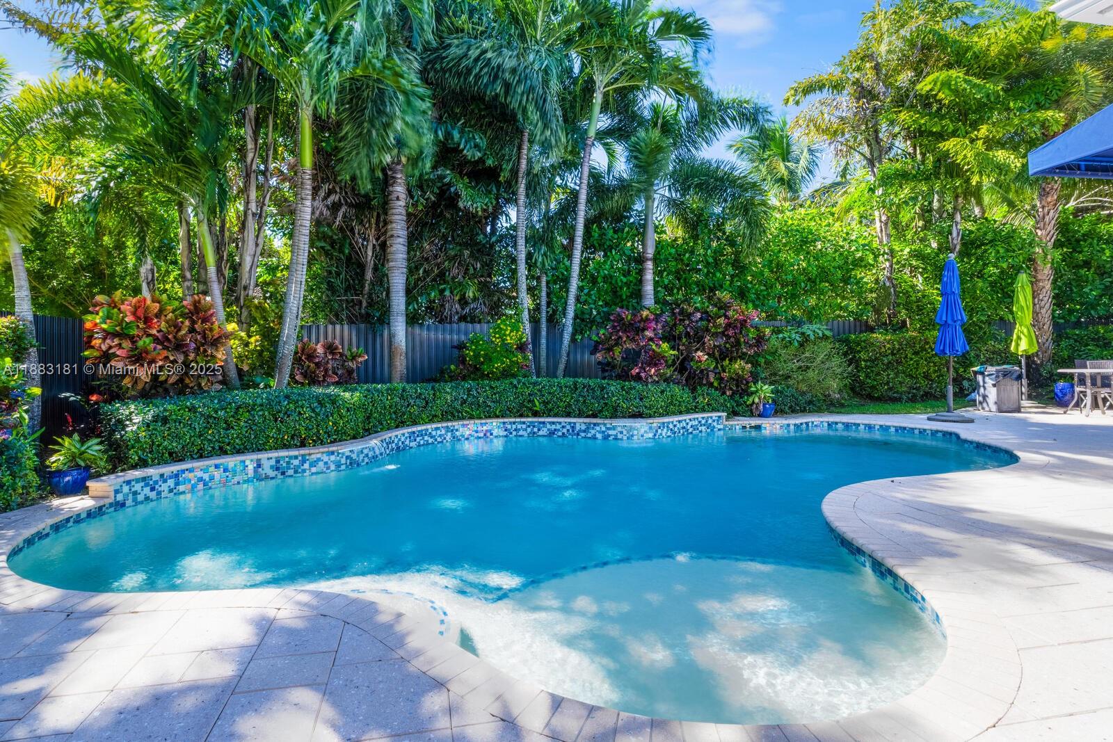 First time on the market in 57 years. House has 3/2, 1 bedroom on the first level with room for a 4th potential bedroom or living area making it ideal for growing families or those needing extra space. Florida room with panoramic view of sunlit pool and garden paradise. Spacious indoor laundry room with built in cabinets. Situated on a corner lot, the home features expertly maintained tropical landscaping that enhances curb appeal. The outdoor area is highlighted by an exquisite salt water pool and large patio, perfect for relaxation, entertaining, & enjoying the outdoors year round. Inside, the kitchen has been updated w/modern amenities including large quartz counters, S/S appliances,Viking gas stove. Hurricane impact windows and doors. Updated plumbing and electric, a/c 2016.