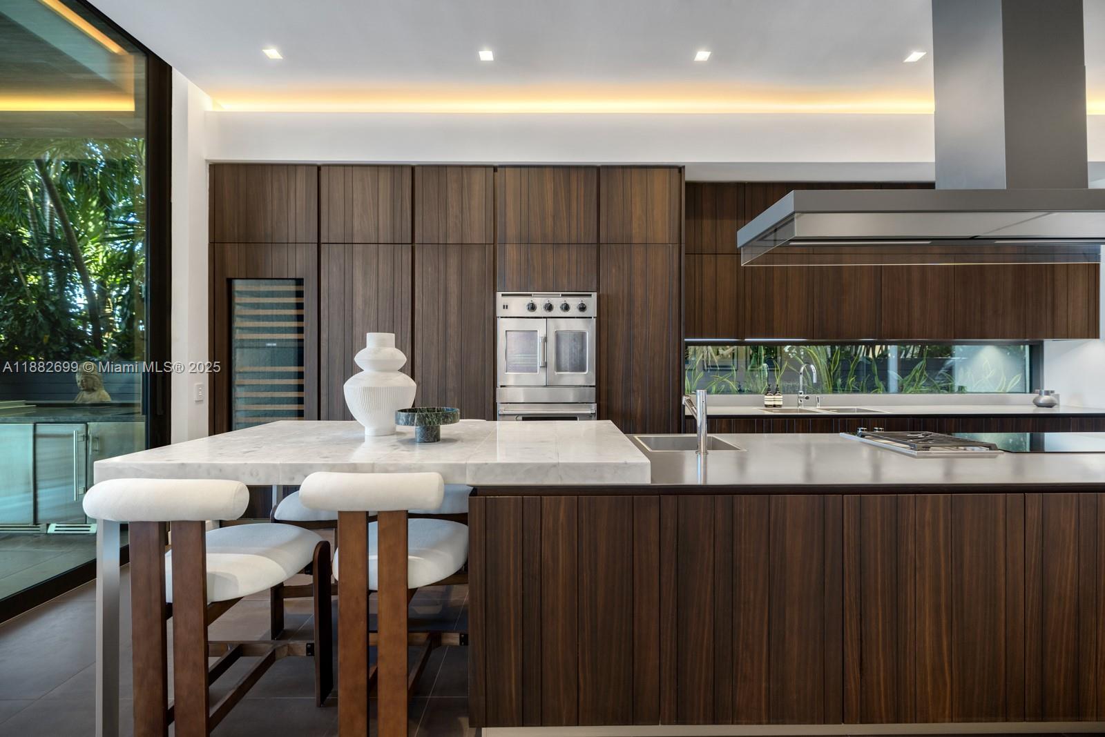 Waterfront luxury in this low impact Modern, meticulously designed by Max Strang, nestled in the prestigious Venetian Islands. This architectural combines sophisticated design with cutting-edge technology and unparalleled waterfront living. Featuring open-concept living areas, a sleek gourmet kitchen with custom Italian walnut cabinetry, and expansive floor-to-ceiling glass throughout. Offering 4 en-suite bedrooms, theater, elevator, Crestron smart system & Tesla solar integration. The primary suite includes private lounge, spa en-suite with Italian travertine and skyline terrace. Outdoors, enjoy a mosaic-tiled pool and spa, summer kitchen, rooftop terrace, private dock and 60’ of pristine Biscayne Bay access, presenting panoramic sunset views.