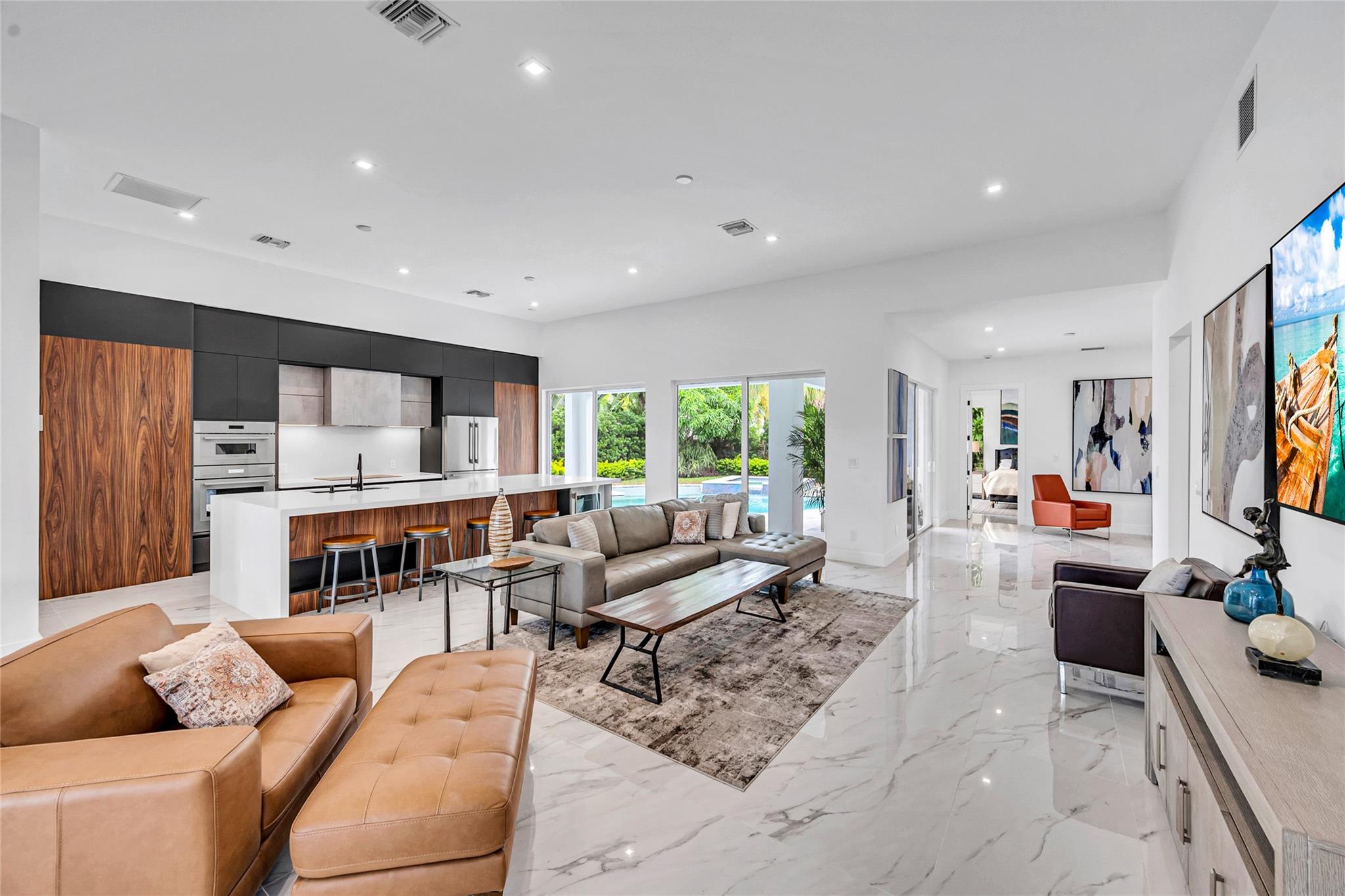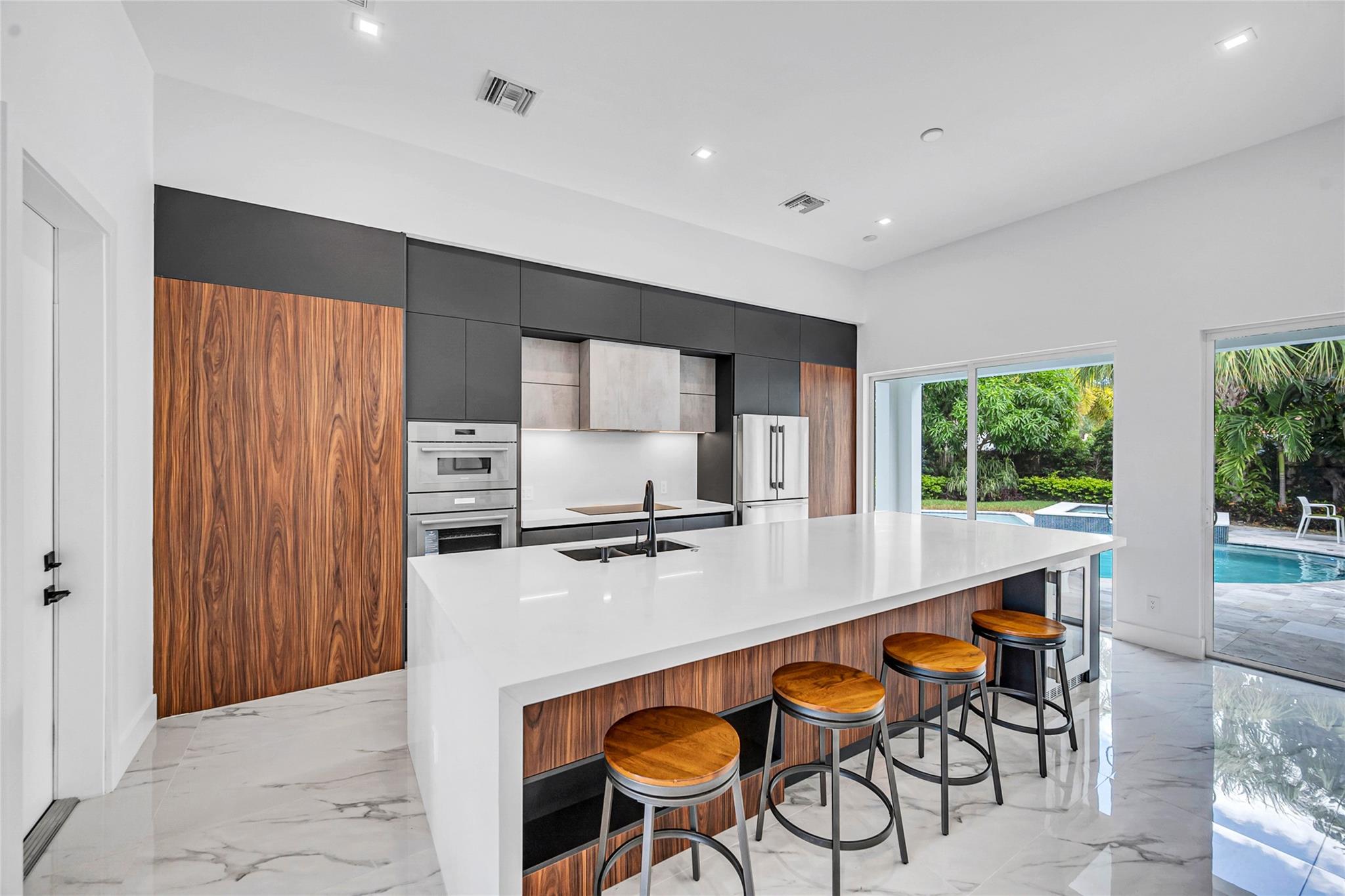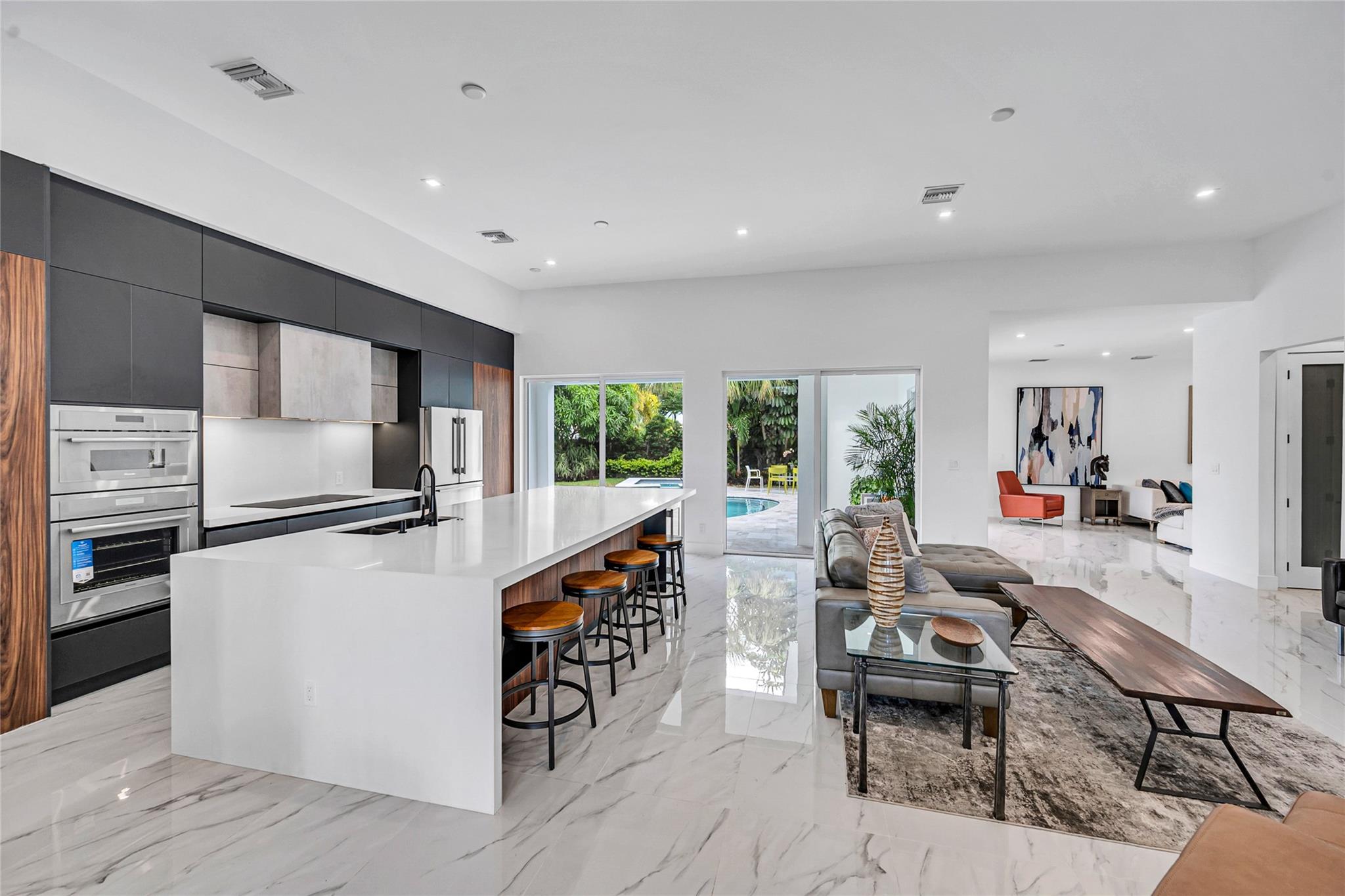 Available Turn-key furnished! Motivated Seller/Builder! 2025 new construction masterpiece, offering over 3,480 sqft of refined living with soaring 12–14 ft ceilings and an open-concept flow. The Italian designer kitchen commands attention with Thermador appliances and a dramatic 14-ft quartz island. Featuring four spa-inspired en suites plus a flexible family room (optional 5th bedroom), this home blends elegance and innovation through its fully automated smart home system with voice control. Outside, discover a heated saltwater pool with seating for 30, 12-person spa, and marble deck—an entertainer’s dream. Completing the residence is an epoxy-finished garage with EV charger and pitched tile roof (superior to flat roof's). located near Wilton Drive, the beaches, airport, & Brightline.