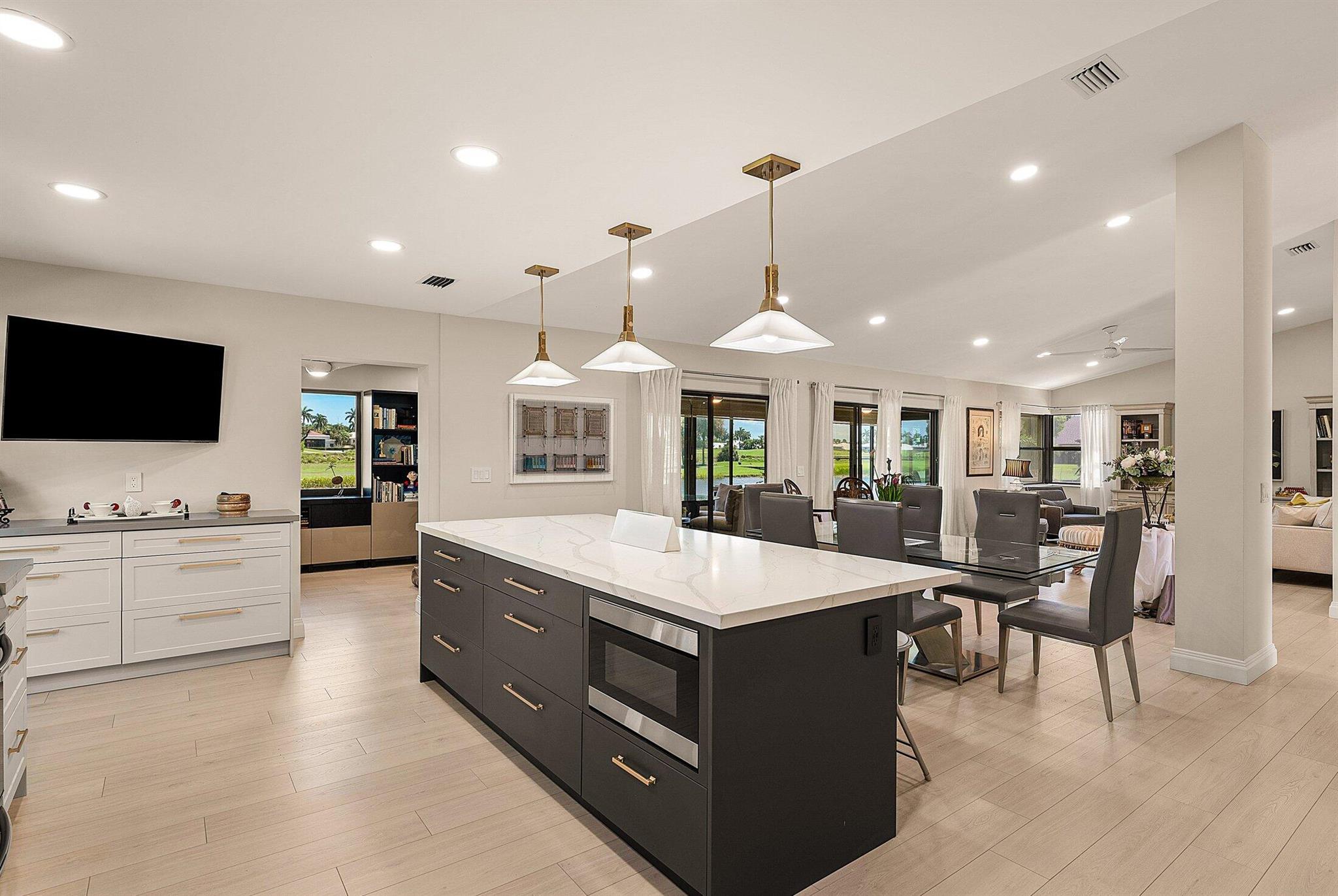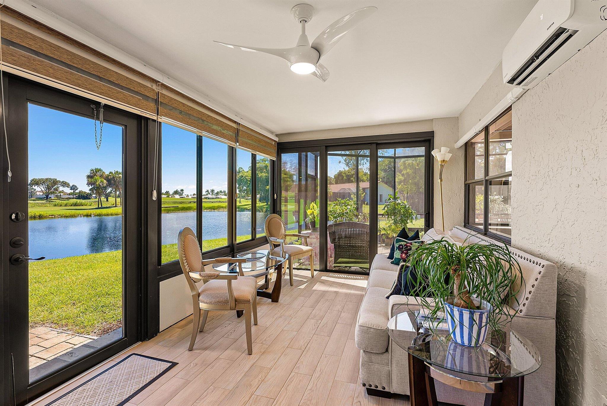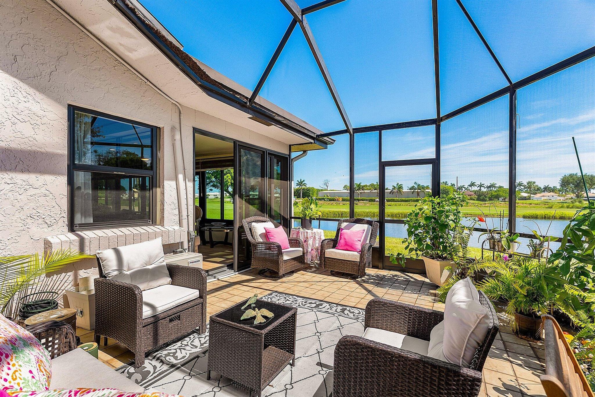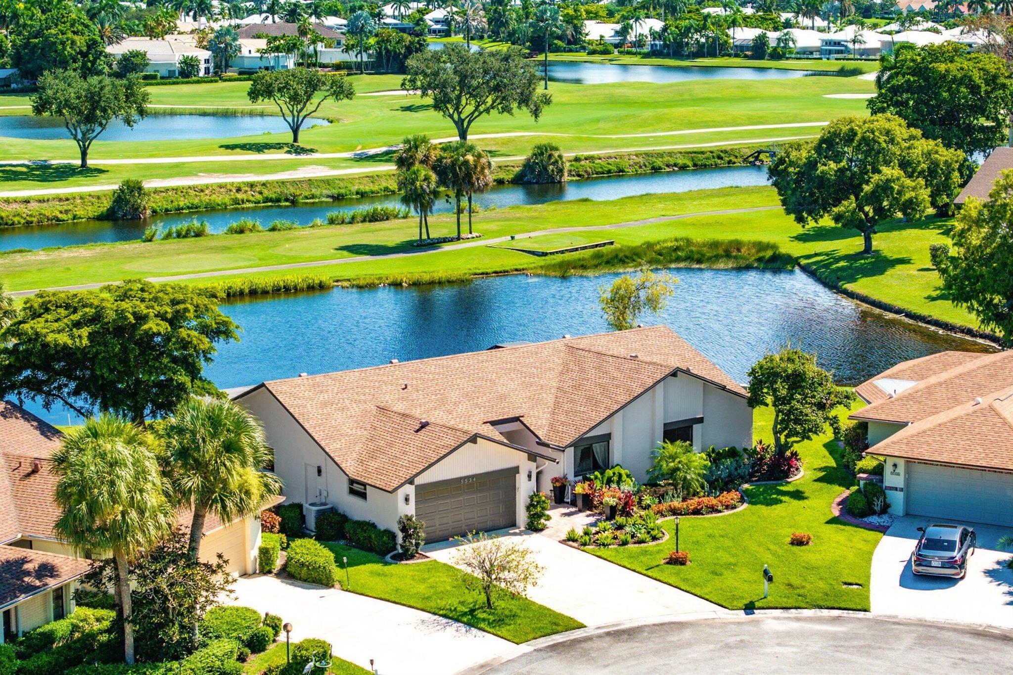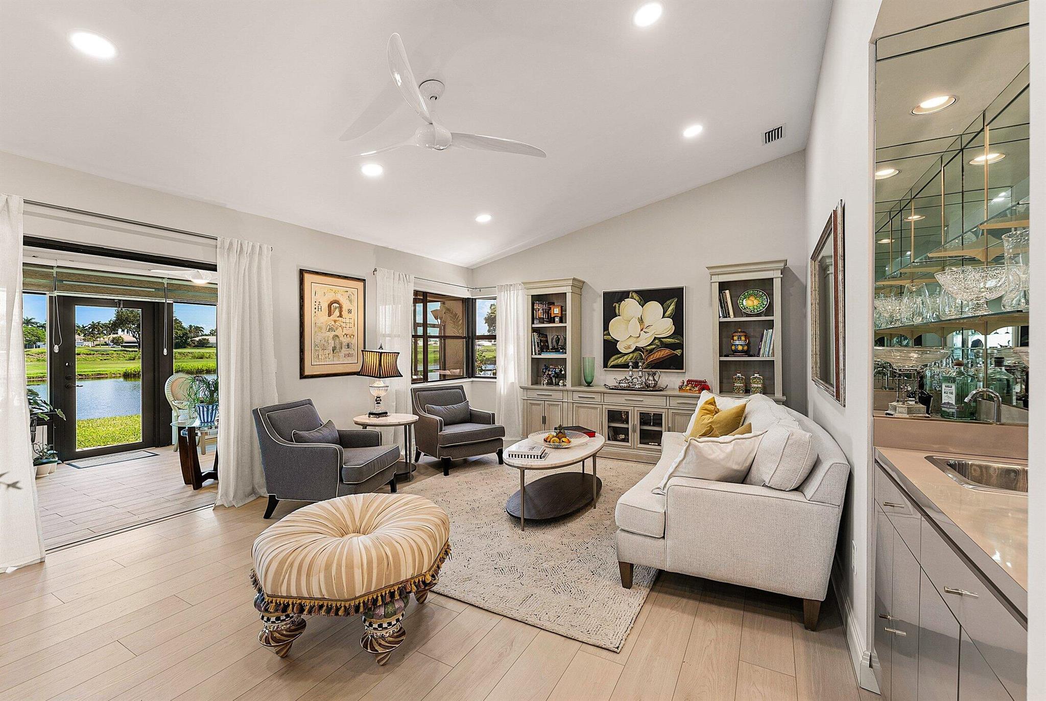 ONE OF A KIND and EXCEPTIONAL HOME in the prestigious Boca Delray Country Club, a 55+ non-equity, gated golf community, stands unparalleled with over 2,300 SF on a RARE CUL-DE-SAC WATERFRONT LOT, showcasing breathtaking LAKE and GOLF COURSE VIEWS. This NEWLY RENOVATED residence, FLOODED WITH NATURAL LIGHT, features an OPEN FLOOR PLAN with VAULTED CEILINGS, 3 SPACIOUS bedrooms, 2 bathrooms, and a versatile den/office. A RENOVATED kitchen, with a large QUARTZ island and HIGH-END APPLIANCES, flows seamlessly into the DINING AREA and GRAND FAMILY ROOM. Open the glass doors into the AIR-CONDITIONED Sunroom and you've created a breathtaking space for ENTERTAINING. THE OVERSIZED MASTER SUITE, BATHROOM and WALK-IN CLOSET CONTINUE THE HOME'S FLUID DESIGN. Features of this stunning home include