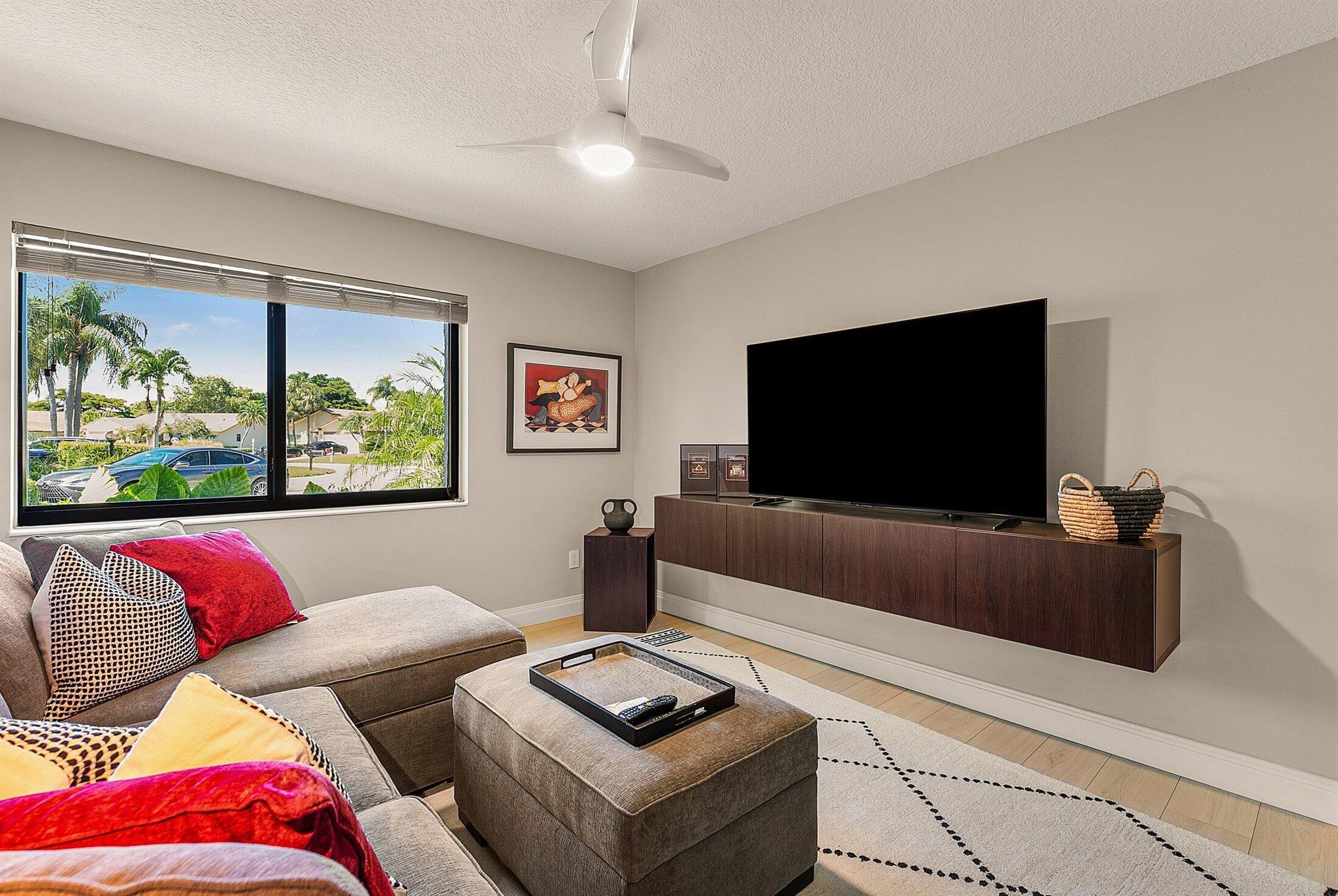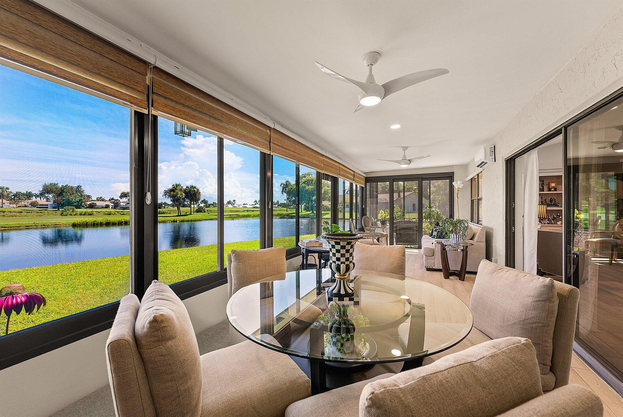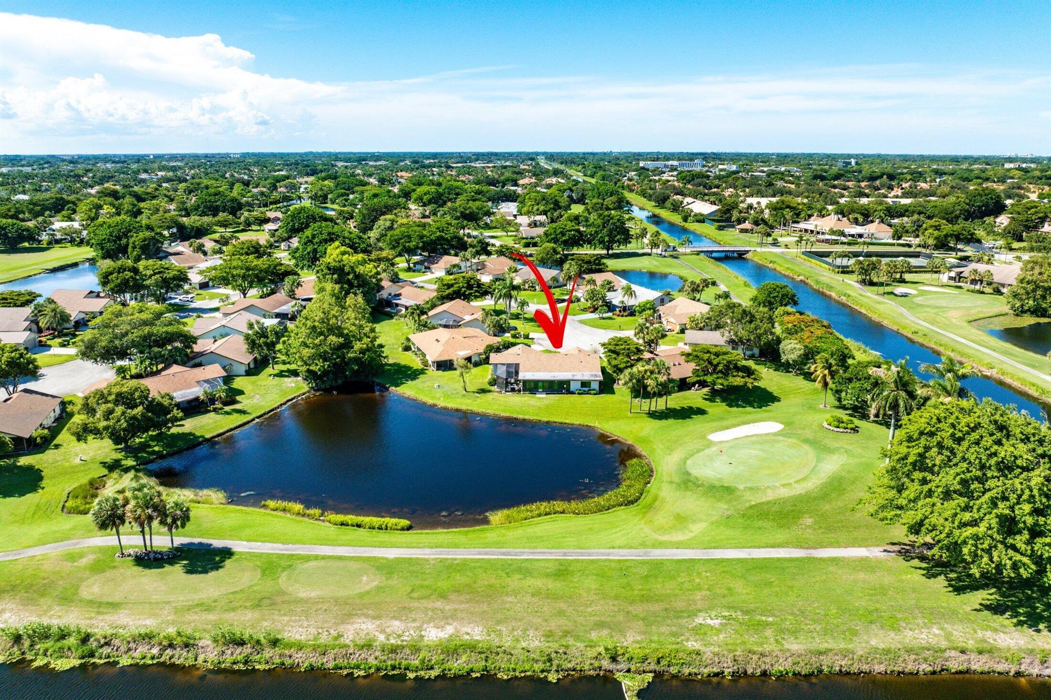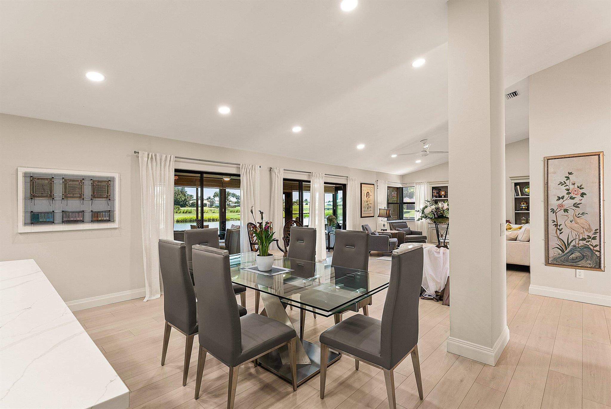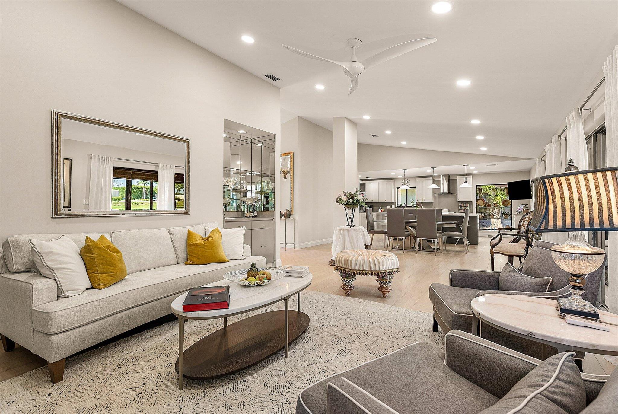 ONE OF A KIND and EXCEPTIONAL HOME in the prestigious Boca Delray Country Club, a 55+ non-equity, gated golf community, stands unparalleled with over 2,300 SF on a RARE CUL-DE-SAC WATERFRONT LOT, showcasing breathtaking LAKE and GOLF COURSE VIEWS. This NEWLY RENOVATED residence, FLOODED WITH NATURAL LIGHT, features an OPEN FLOOR PLAN with VAULTED CEILINGS, 3 SPACIOUS bedrooms, 2 bathrooms, and a versatile den/office. A RENOVATED kitchen, with a large QUARTZ island and HIGH-END APPLIANCES, flows seamlessly into the DINING AREA and GRAND FAMILY ROOM. Open the glass doors into the AIR-CONDITIONED Sunroom and you've created a breathtaking space for ENTERTAINING. THE OVERSIZED MASTER SUITE, BATHROOM and WALK-IN CLOSET CONTINUE THE HOME'S FLUID DESIGN. Features of this stunning home include