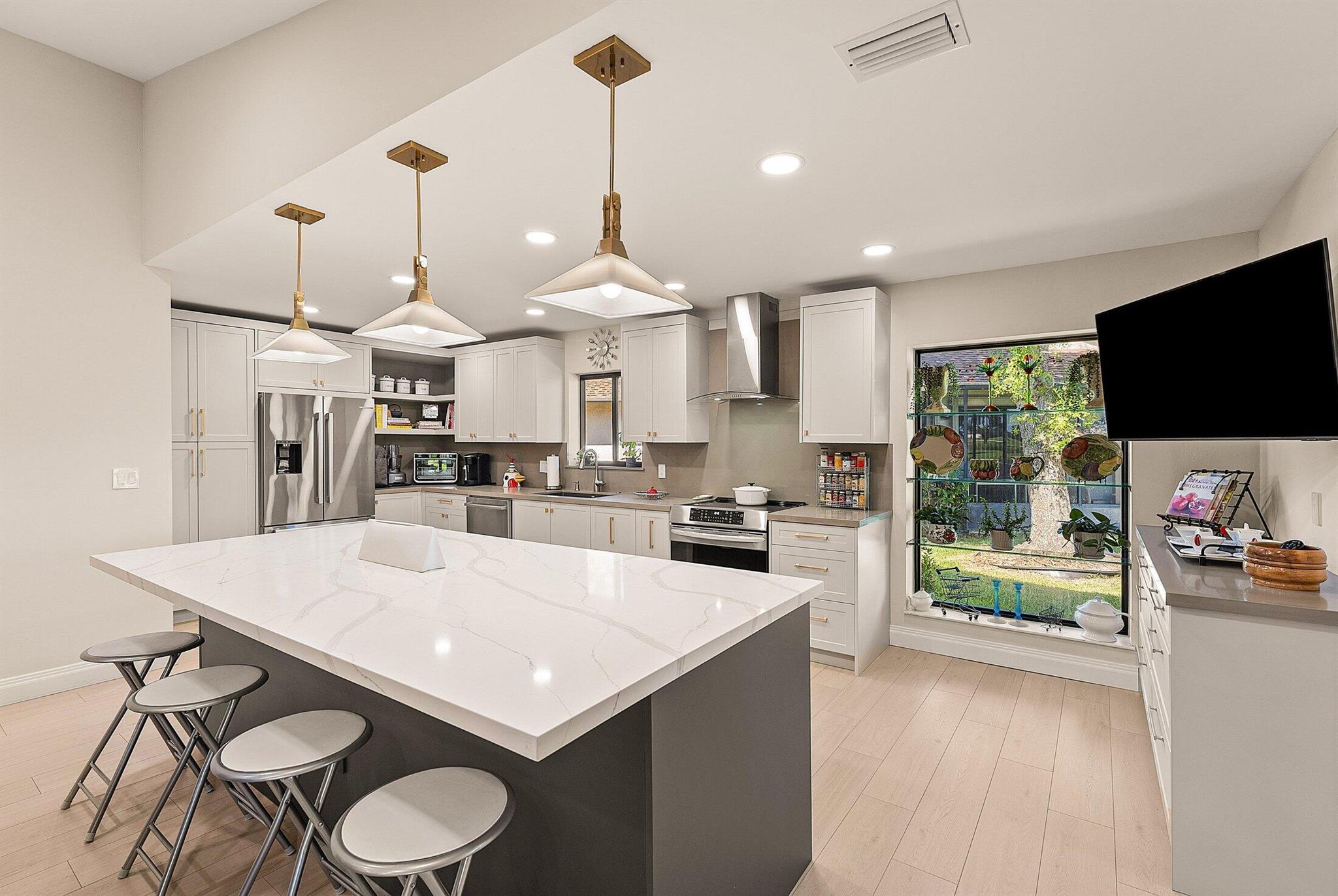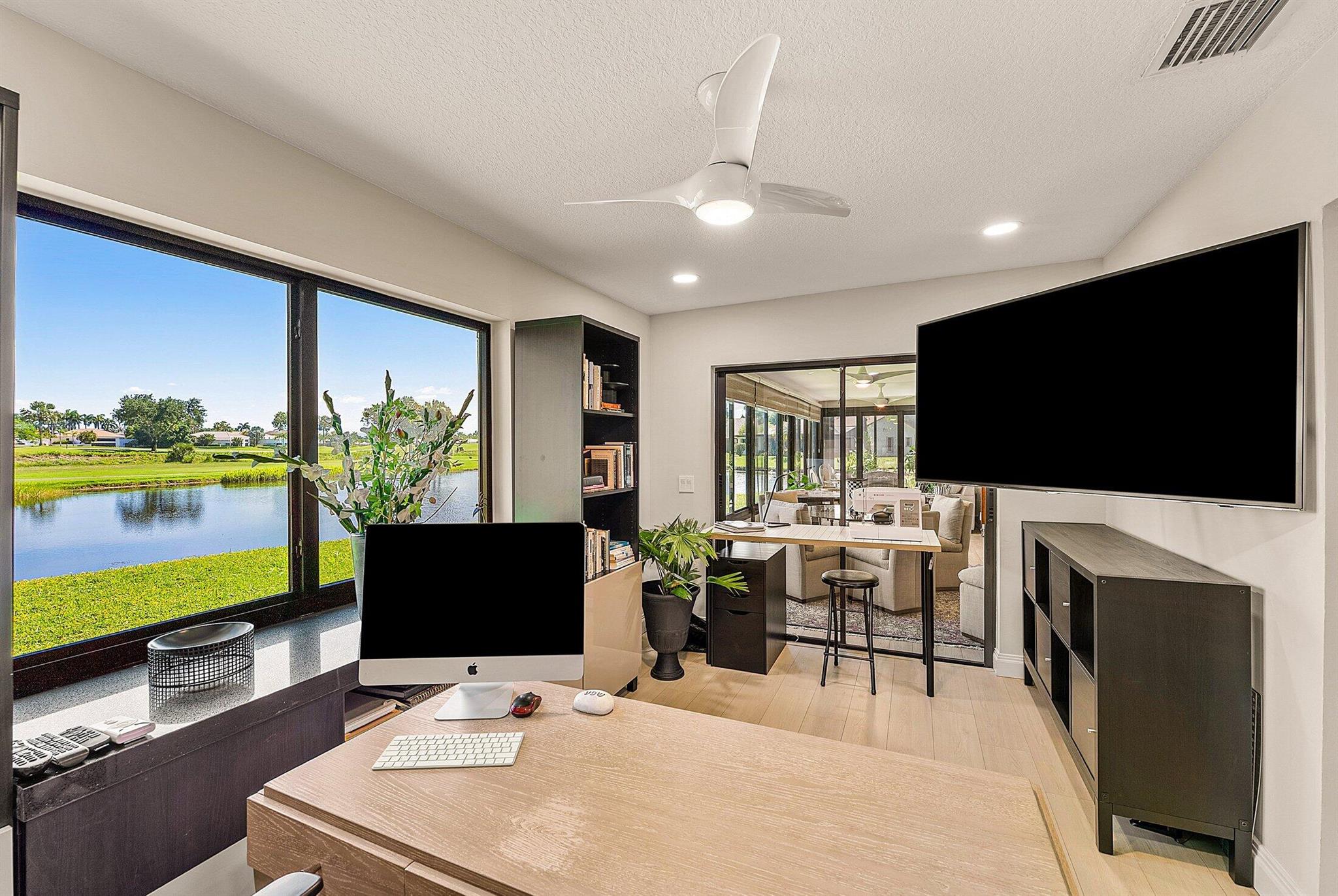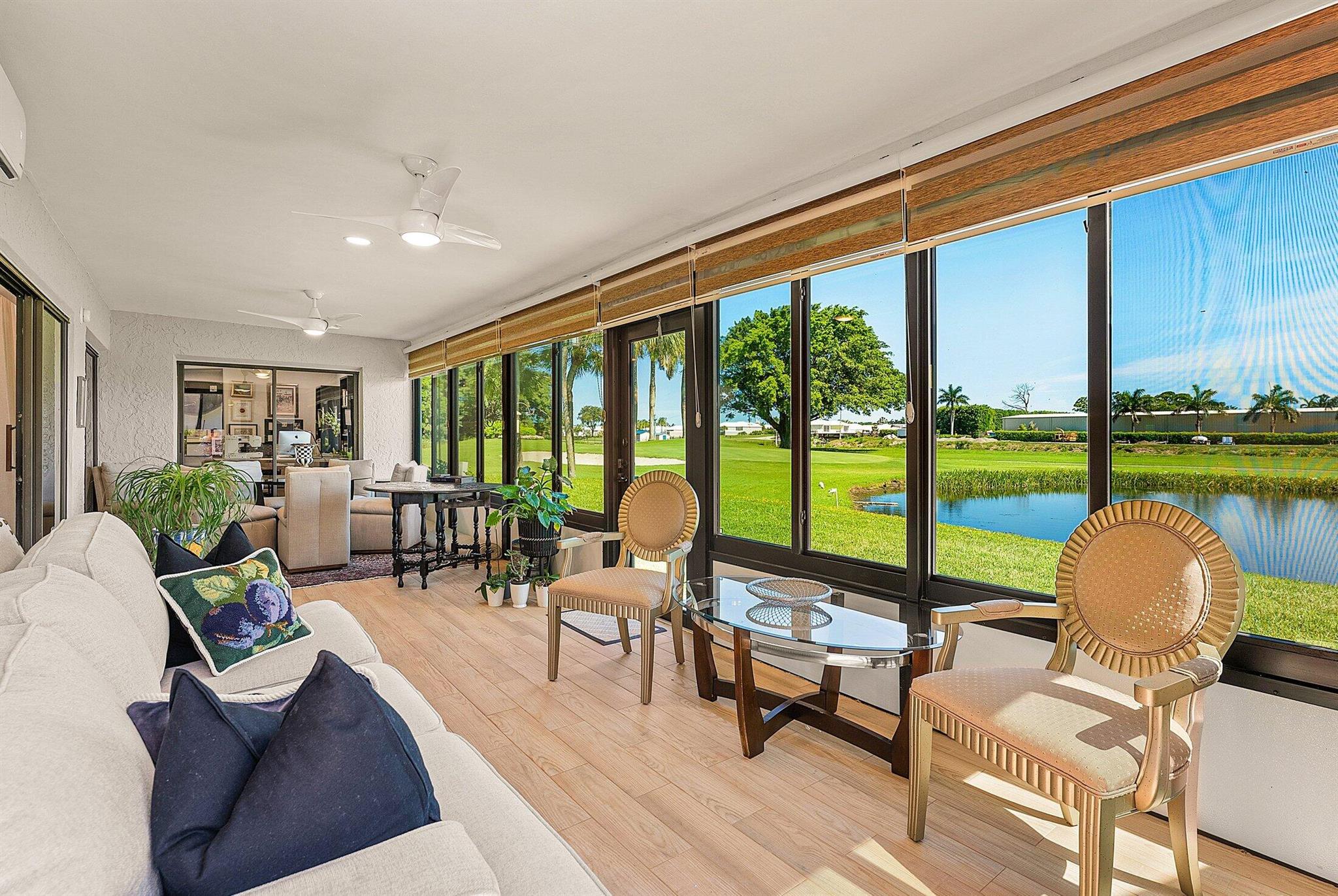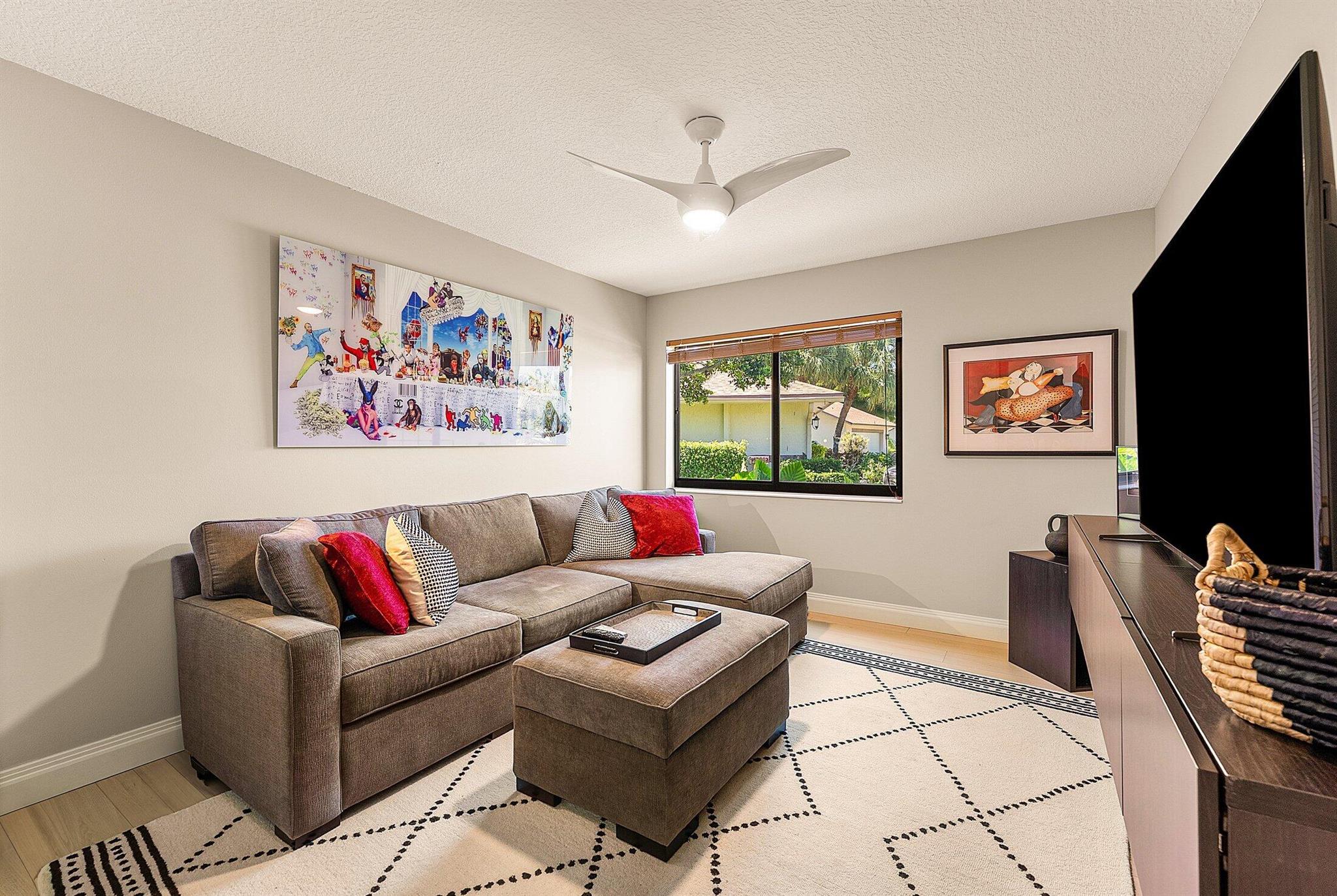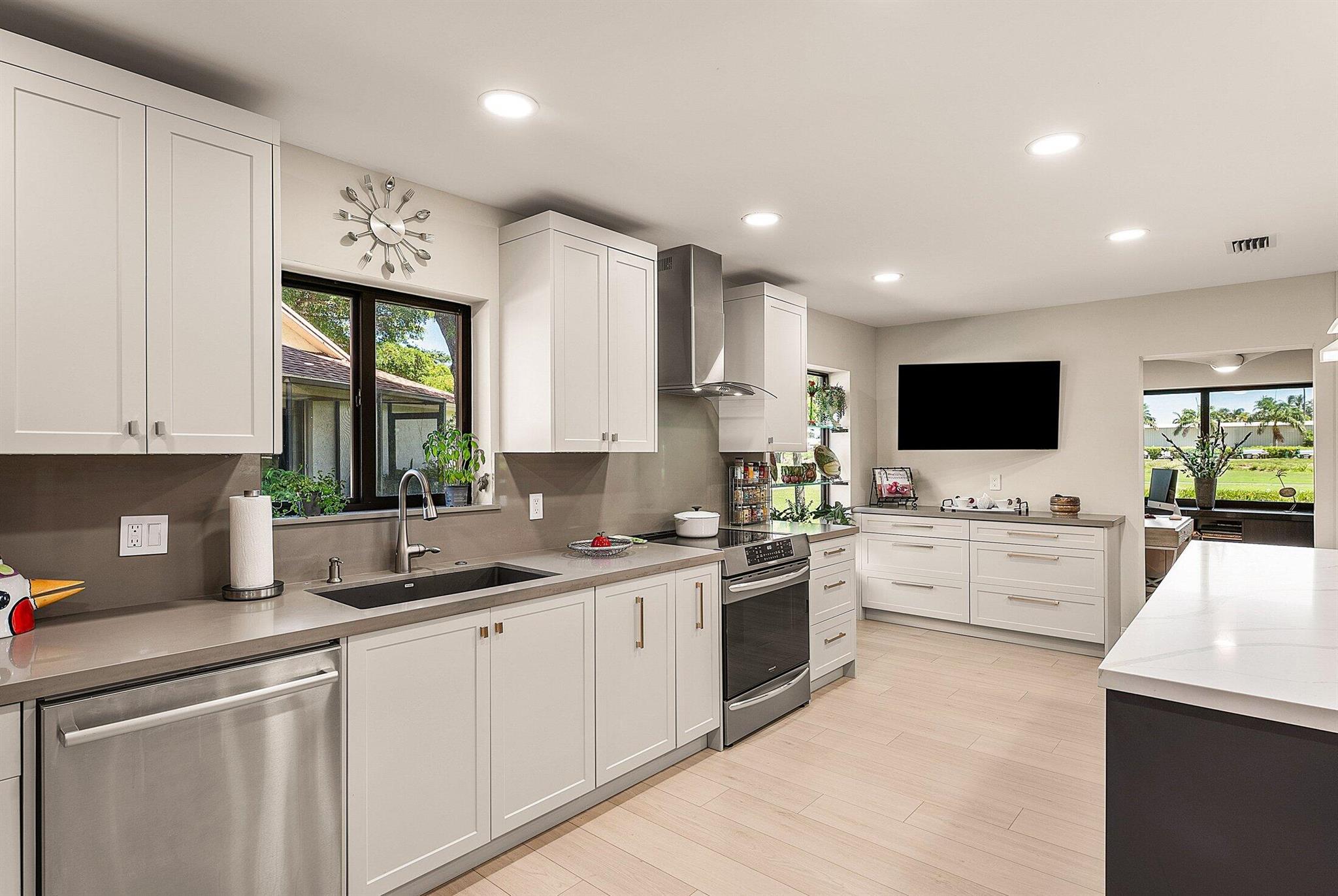 ONE OF A KIND and EXCEPTIONAL HOME in the prestigious Boca Delray Country Club, a 55+ non-equity, gated golf community, stands unparalleled with over 2,300 SF on a RARE CUL-DE-SAC WATERFRONT LOT, showcasing breathtaking LAKE and GOLF COURSE VIEWS. This NEWLY RENOVATED residence, FLOODED WITH NATURAL LIGHT, features an OPEN FLOOR PLAN with VAULTED CEILINGS, 3 SPACIOUS bedrooms, 2 bathrooms, and a versatile den/office. A RENOVATED kitchen, with a large QUARTZ island and HIGH-END APPLIANCES, flows seamlessly into the DINING AREA and GRAND FAMILY ROOM. Open the glass doors into the AIR-CONDITIONED Sunroom and you've created a breathtaking space for ENTERTAINING. THE OVERSIZED MASTER SUITE, BATHROOM and WALK-IN CLOSET CONTINUE THE HOME'S FLUID DESIGN. Features of this stunning home include