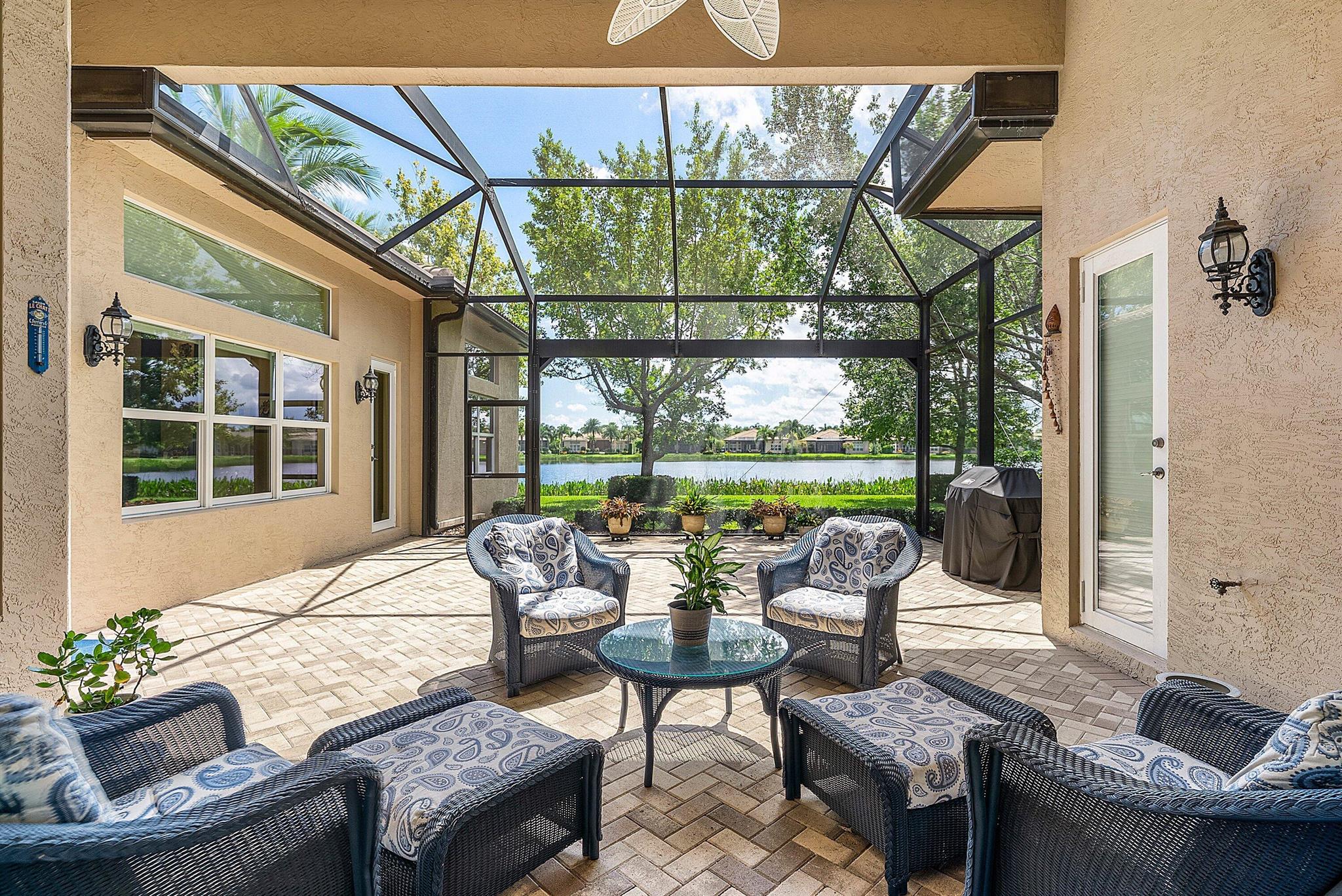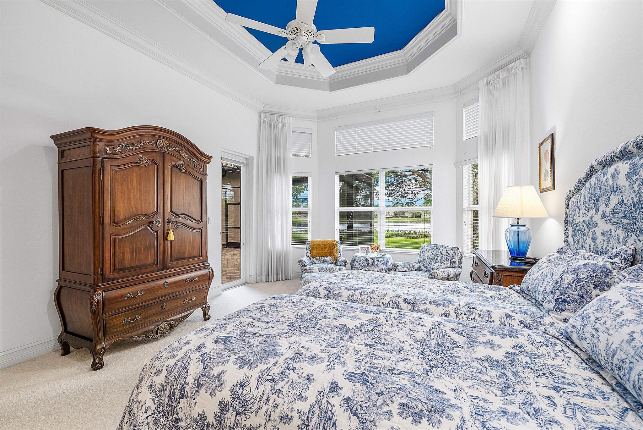 Elegant Charleston Grande on a south-facing lakefront lot with a spacious screened patio. This home offers 2 bedrooms, library, club room (both convertible to bedrooms), 3 baths, and a 3-car garage. Features include porcelain tile, crown moldings, custom closets, upgraded baths, and a gourmet kitchen with white glazed cabinets, quartz counters, stainless appliances, island, snack bar, and so much more. Valencia Cove's 55+ lifestyle includes a 39,000 sq. ft. clubhouse, resort pools, tennis, pickleball, fitness, dining, clubs, and more. HOA includes lawn care, alarm monitoring, cable and internet. Call for a full list of upgrades.